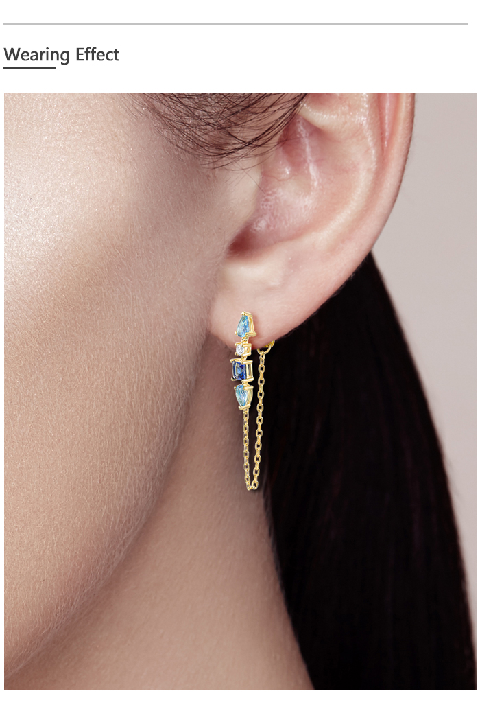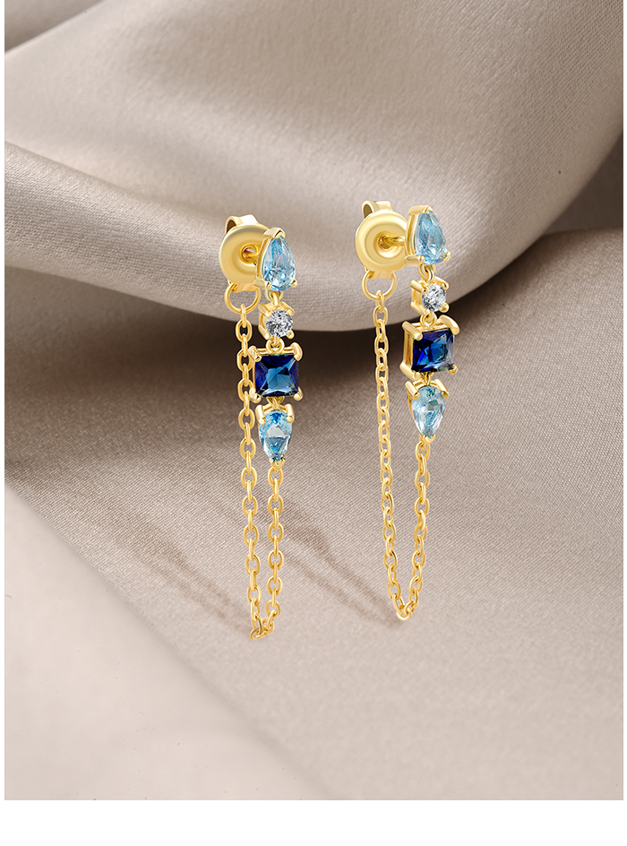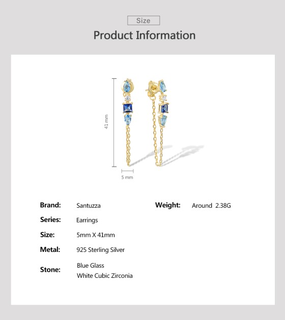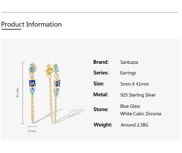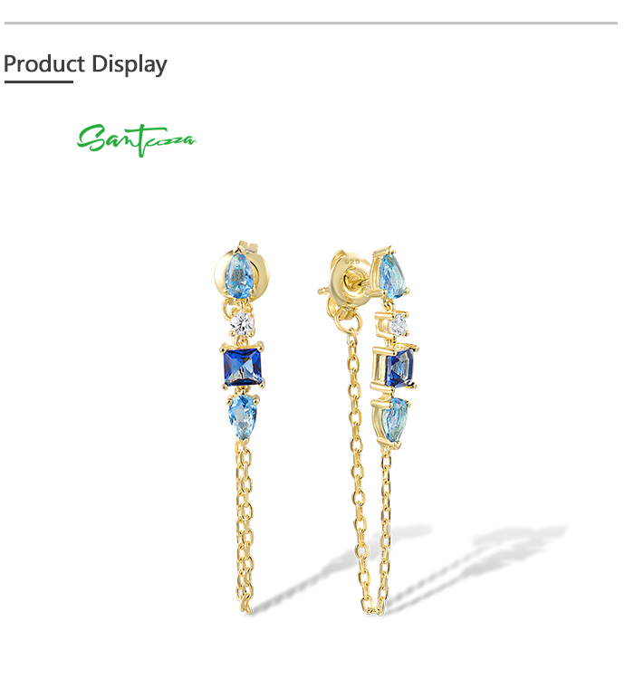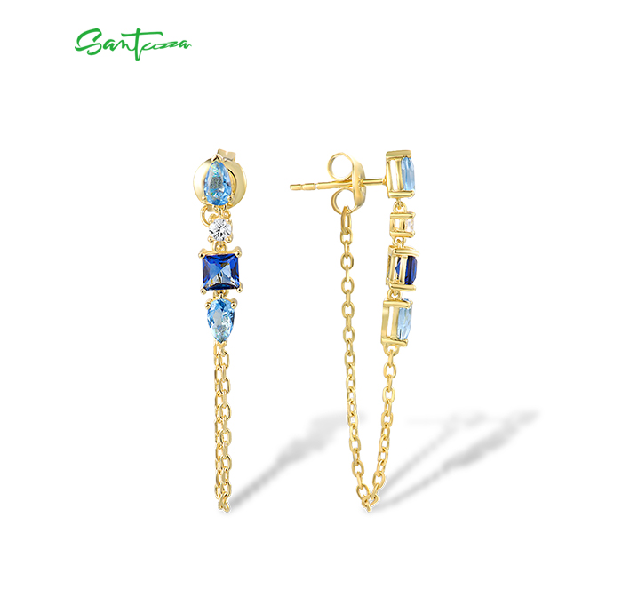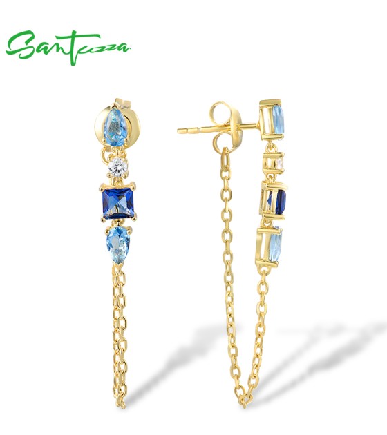 SANTUZZA 925 Sterling Silver Earrings White CZ Blue Stone Gold Color Long Thread Earrings Fine Jewelry