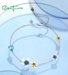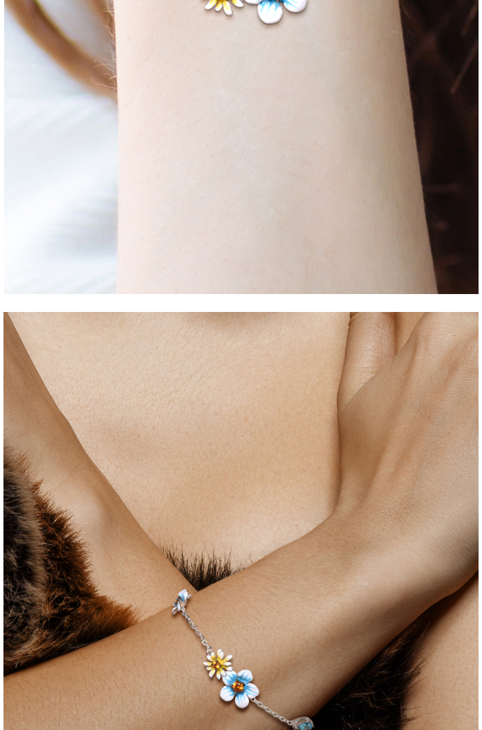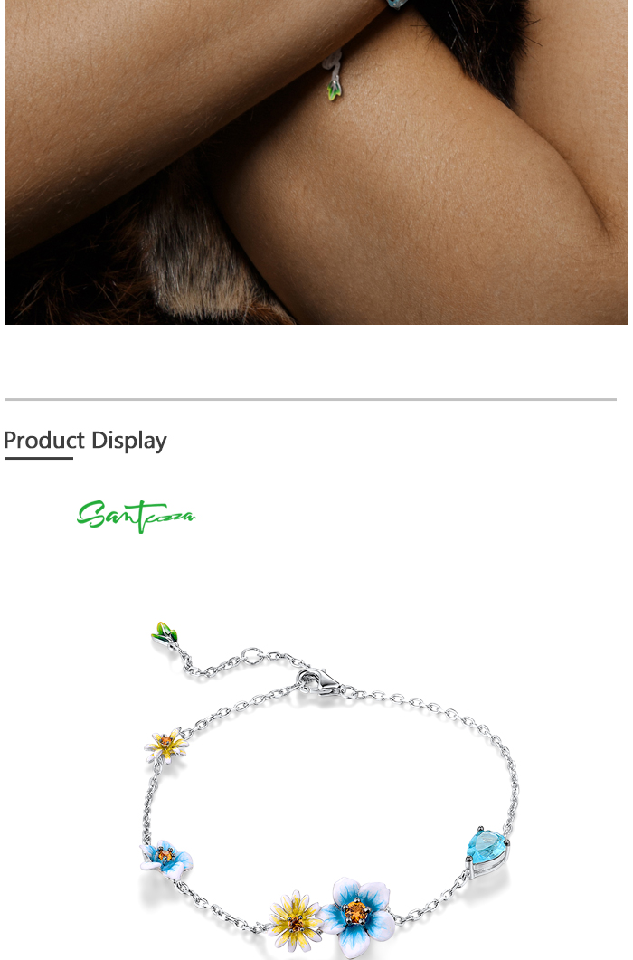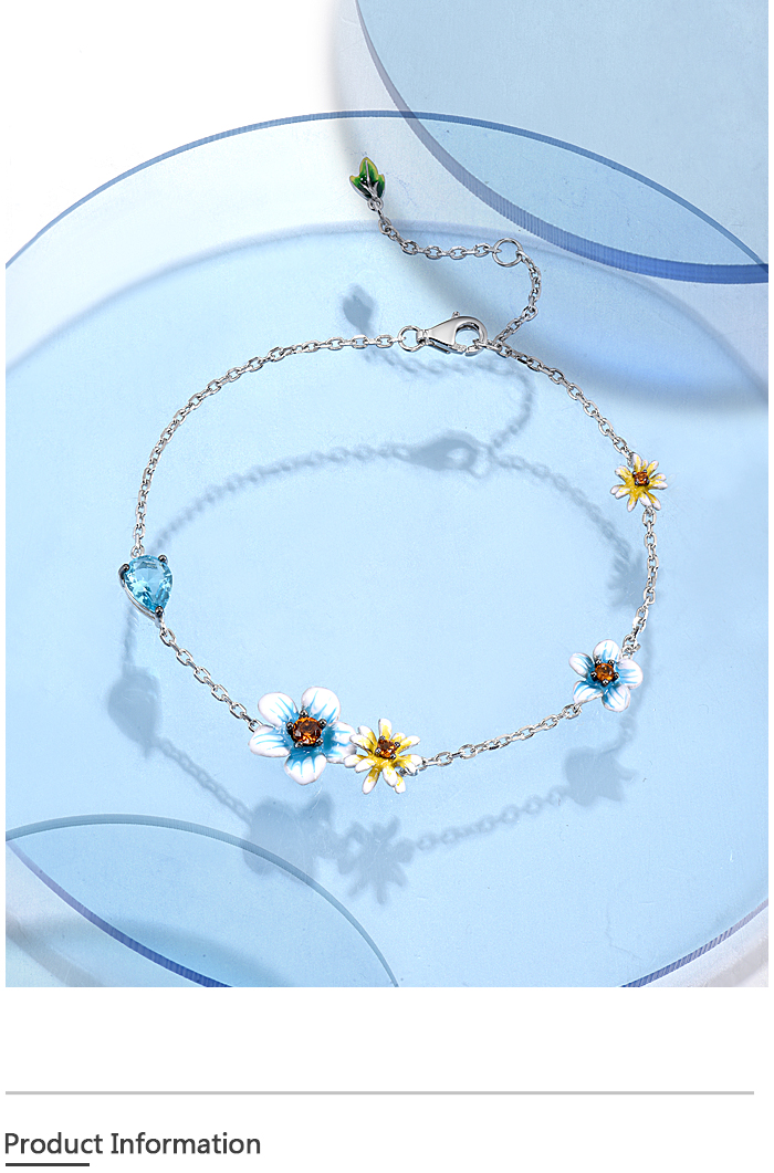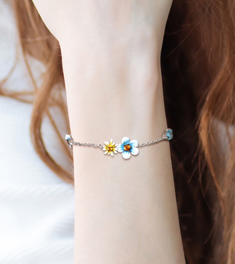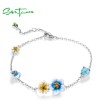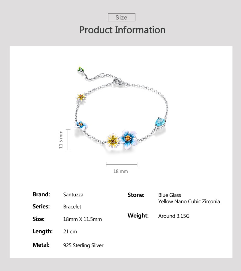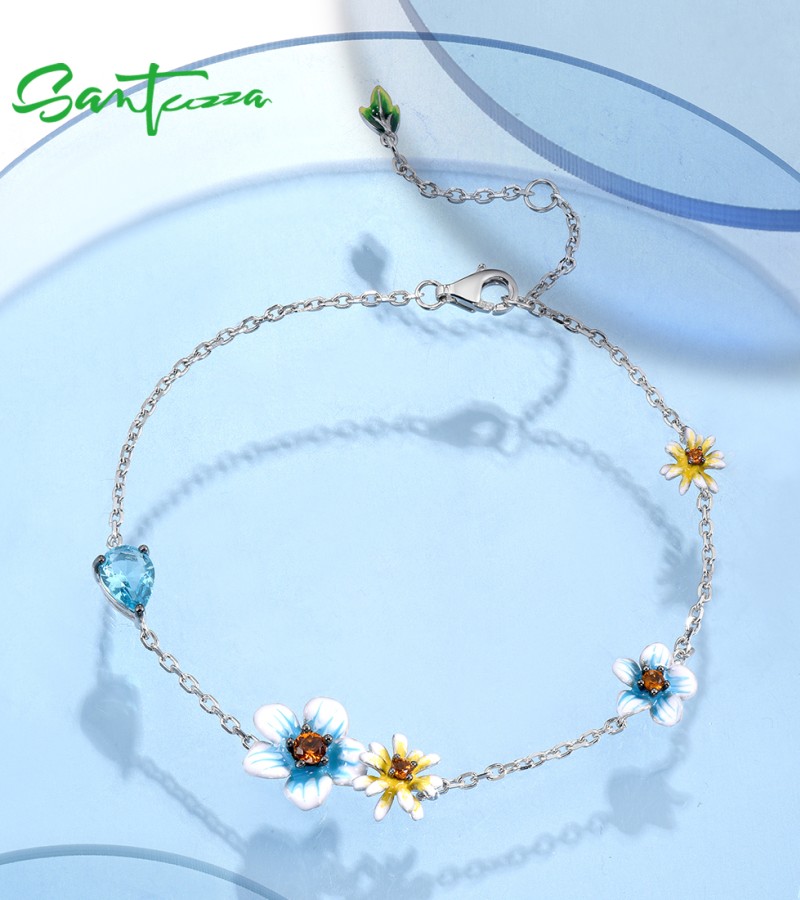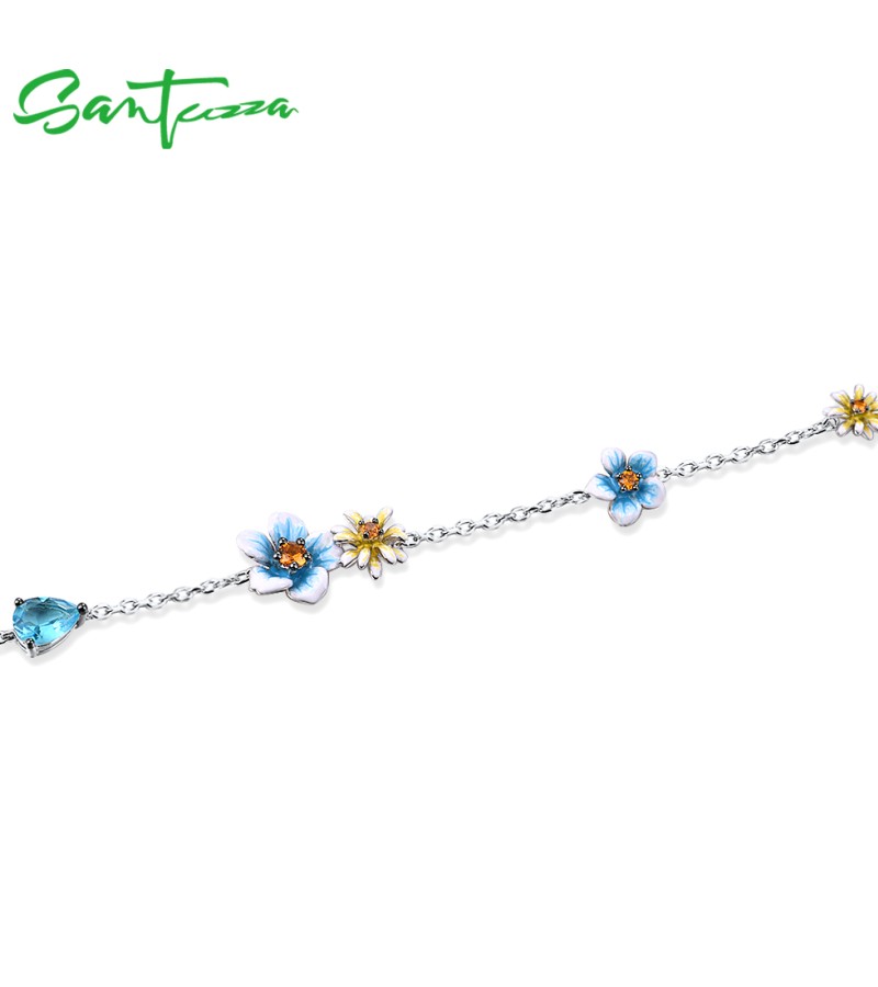 SANTUZZA 925 Sterling Silver Bracelet Blue Yellow Blooming Flowers Adjustable Jewelry Enamel