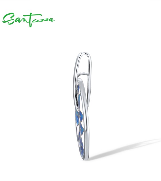 SANTUZZA Silver Earrings 925 Sterling Silver Blue Enamel Flower Leaf Earrings Jewelry