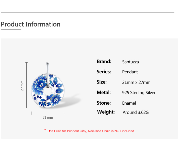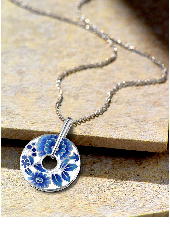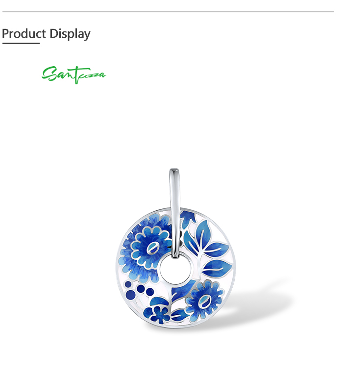 SANTUZZA Silver Pendant 925 Sterling Silver Blue Enamel Flower Pendant Round Jewelry