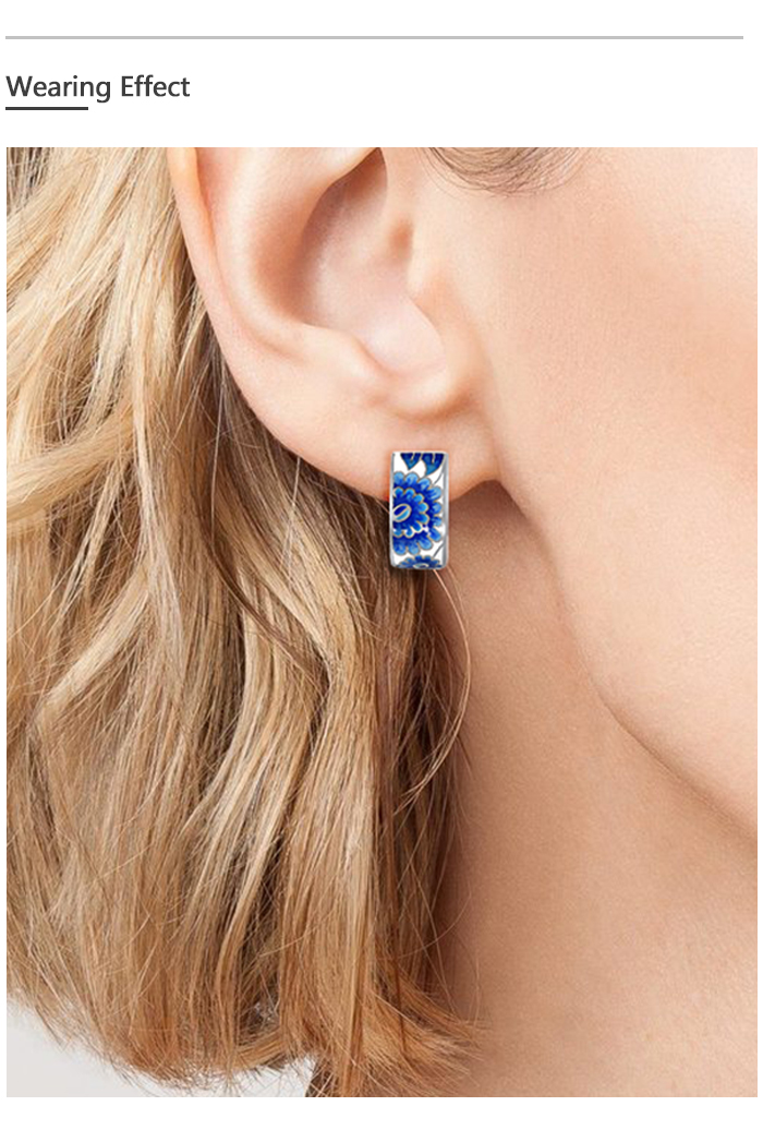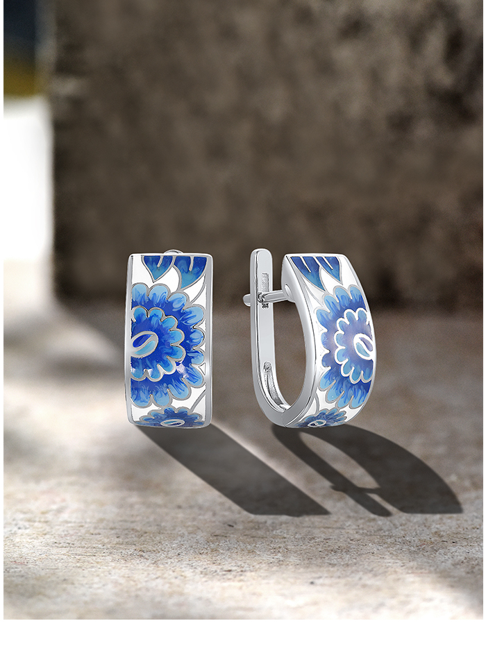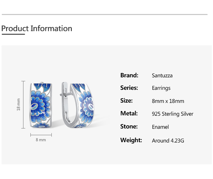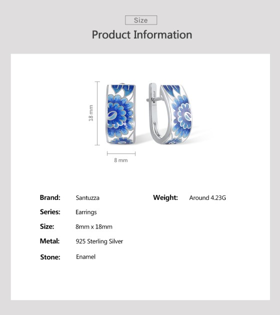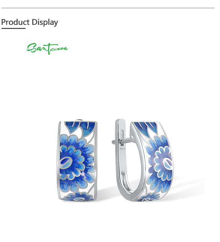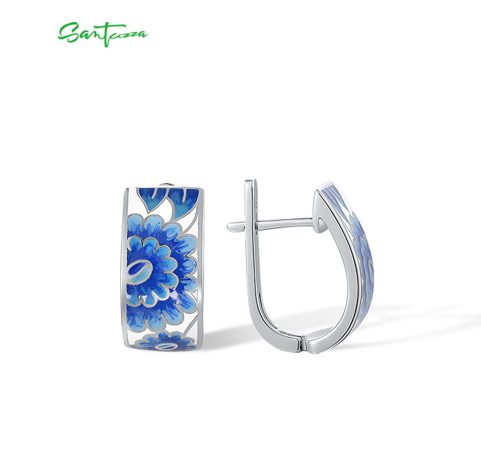 SANTUZZA Silver Earrings 925 Sterling Silver Blue Enamel Flower Leaf Earrings Jewelry