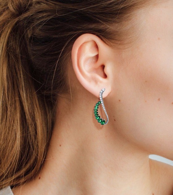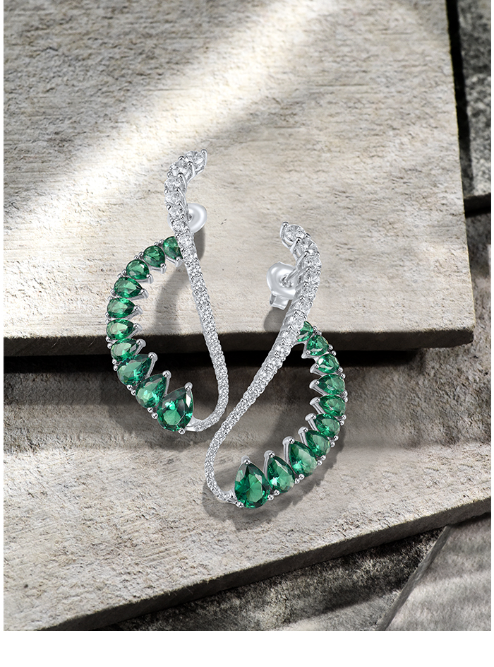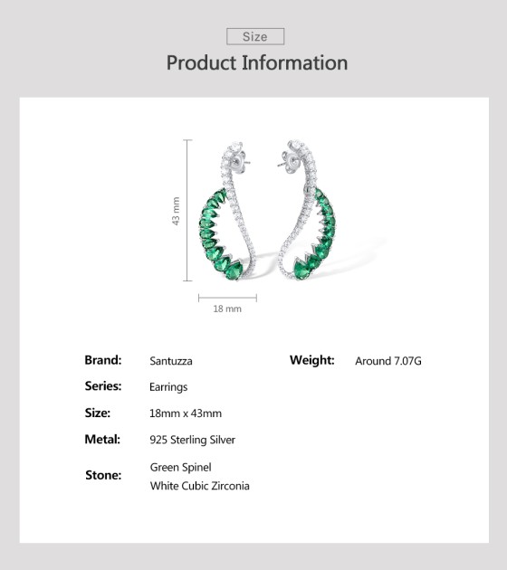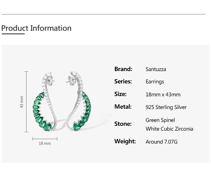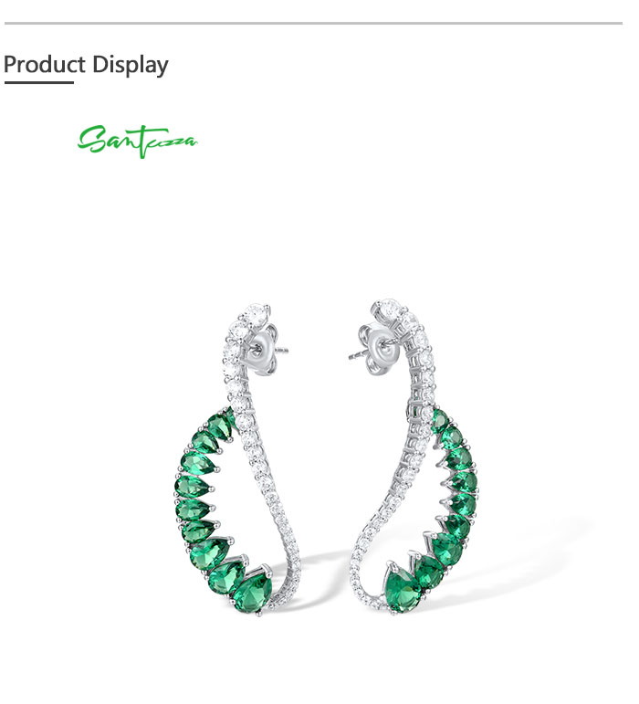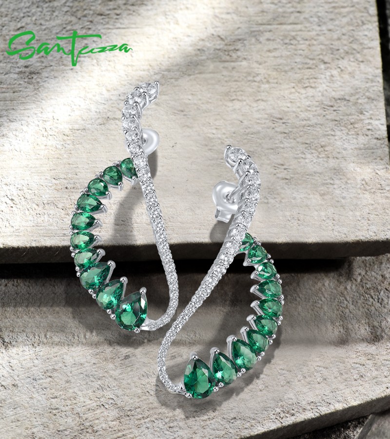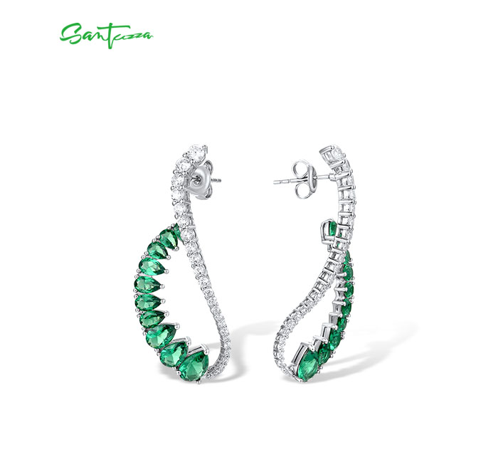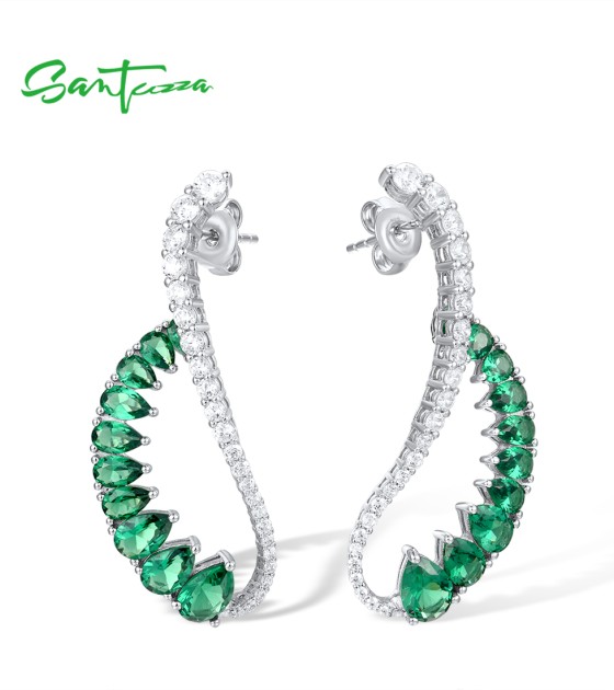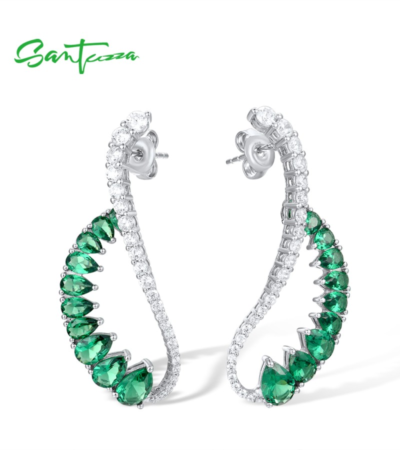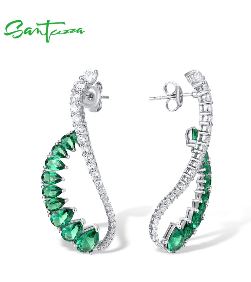 SANTUZZA 925 Sterling Silver Earrings Green Spinel White CZ Dangling Earrings Jewelry