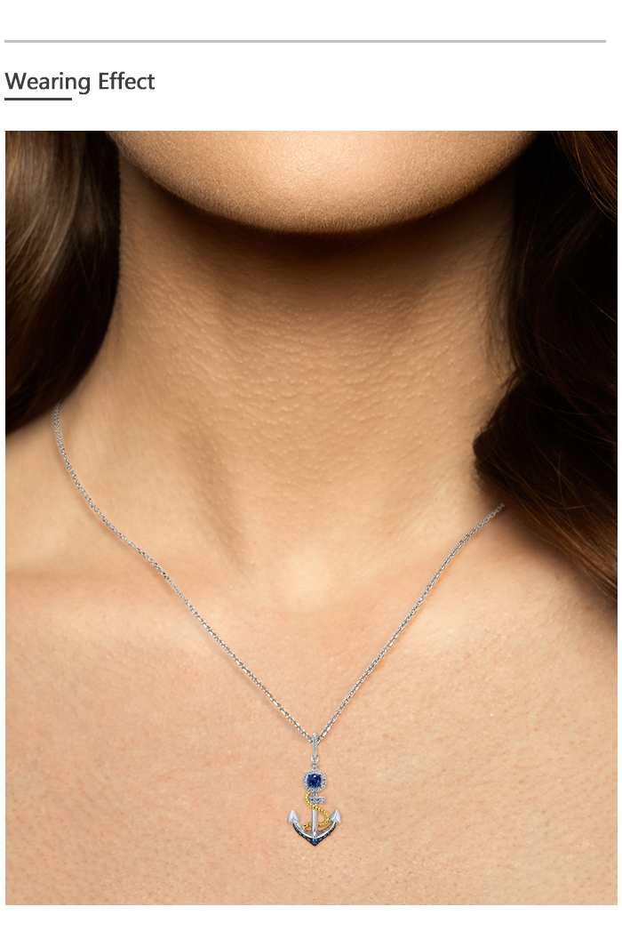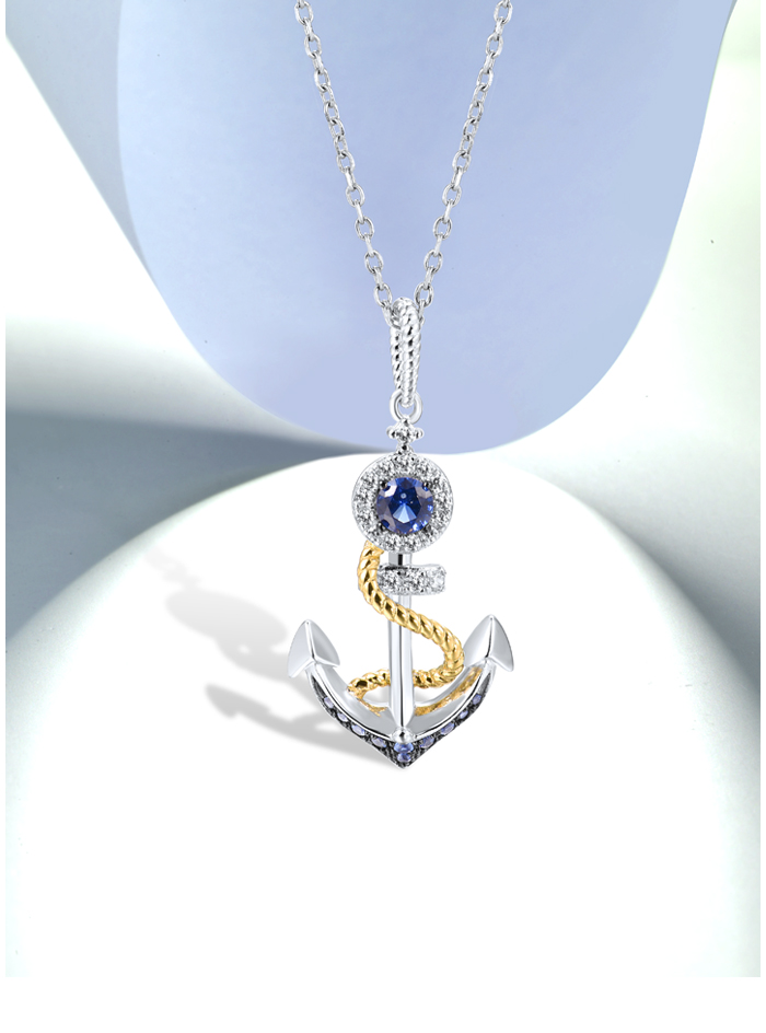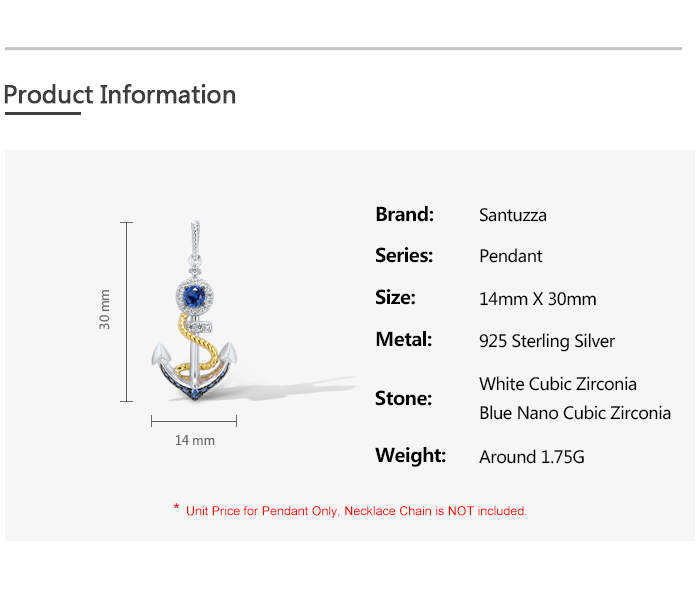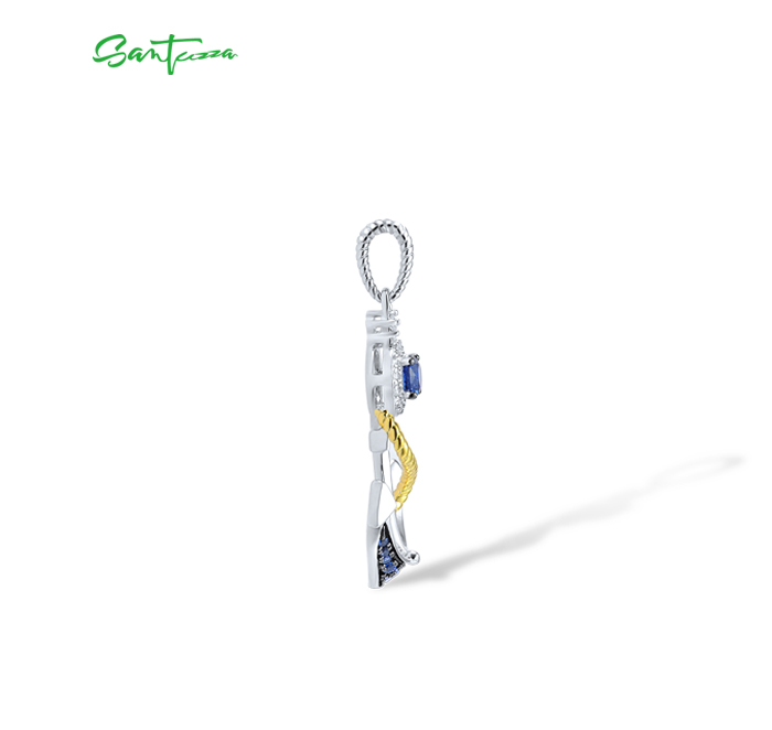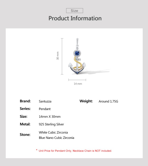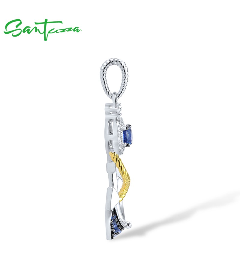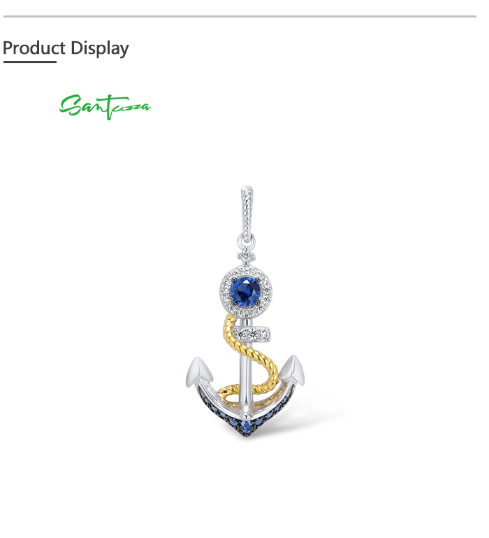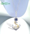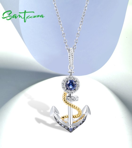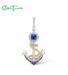 SANTUZZA 925 Sterling Silver Pendant White Blue Nano CZ Gold Color Anchor Pendant Sea Fine Jewelry