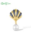 SANTUZZA 925 Sterling Silver Pendant White Shell Beads Blue Nano White CZ Fine Jewelry