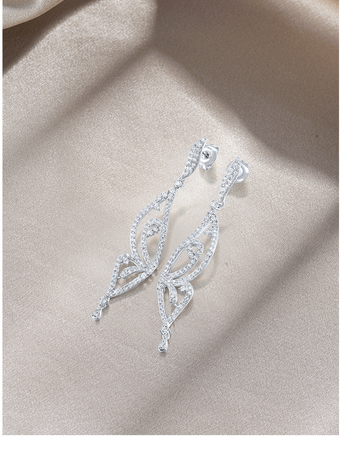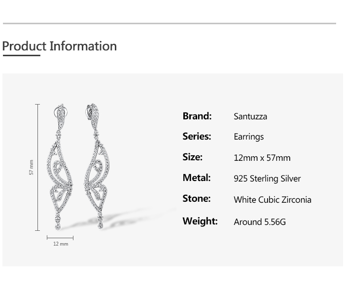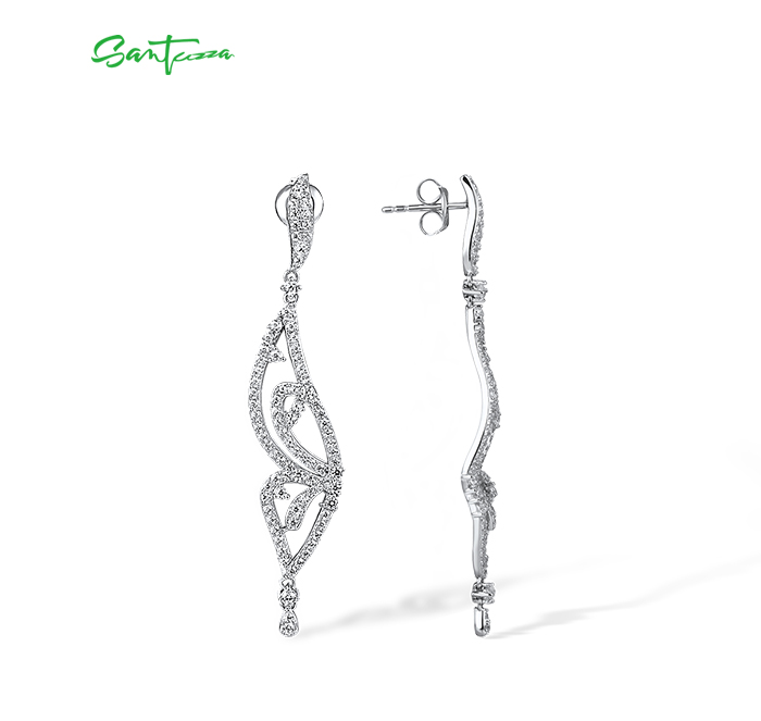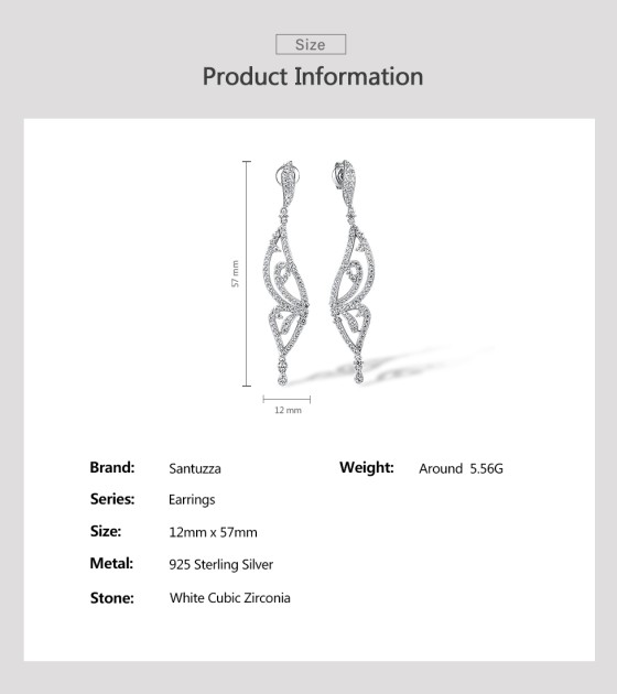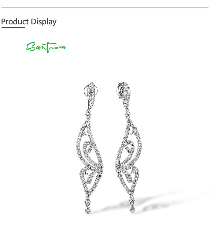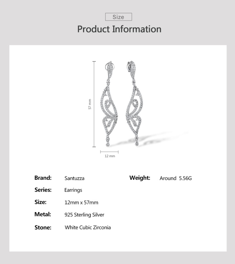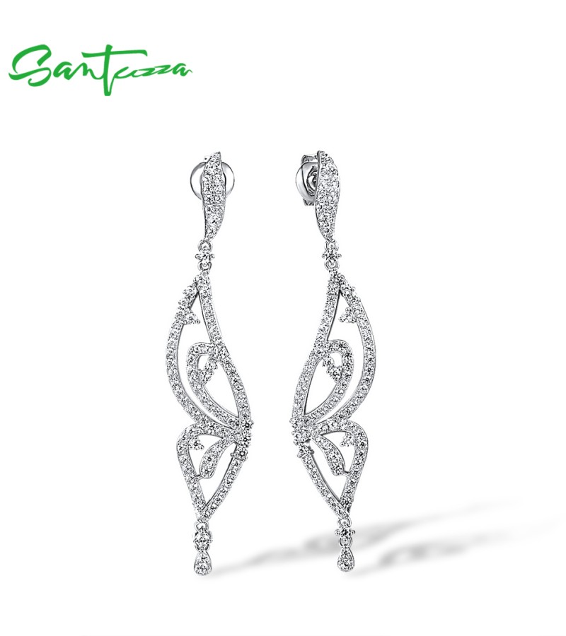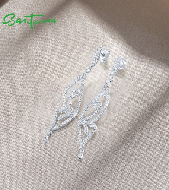 SANTUZZA 925 Sterling Silver Earrings White CZ Butterfly Drop Eariings Fine Jewelry