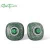SANTUZZA 925 Sterling Silver Earrings Green Stone White CZ Enamel Fine Jewelry