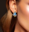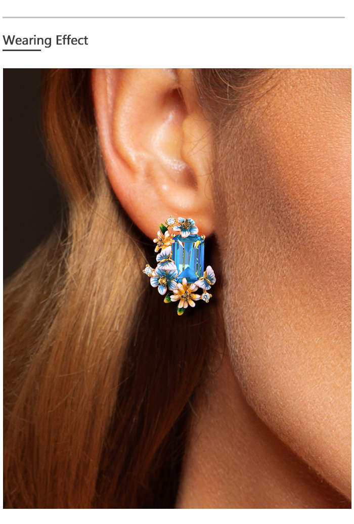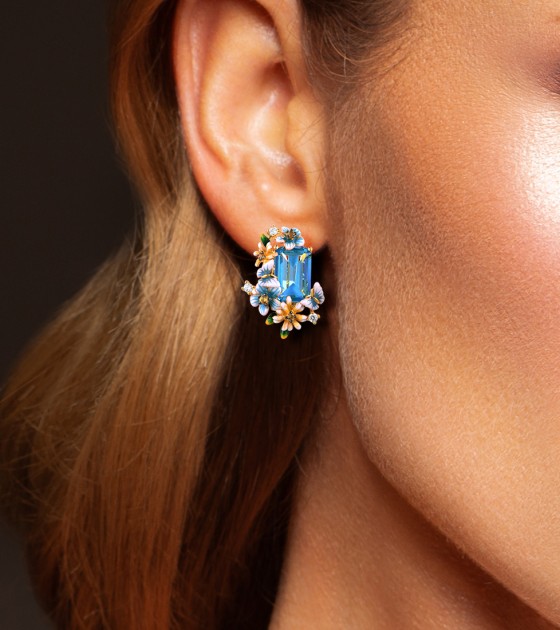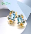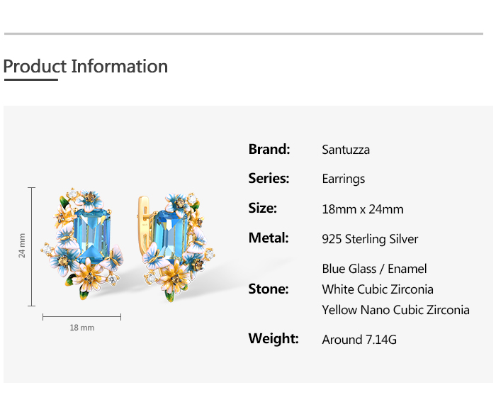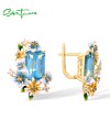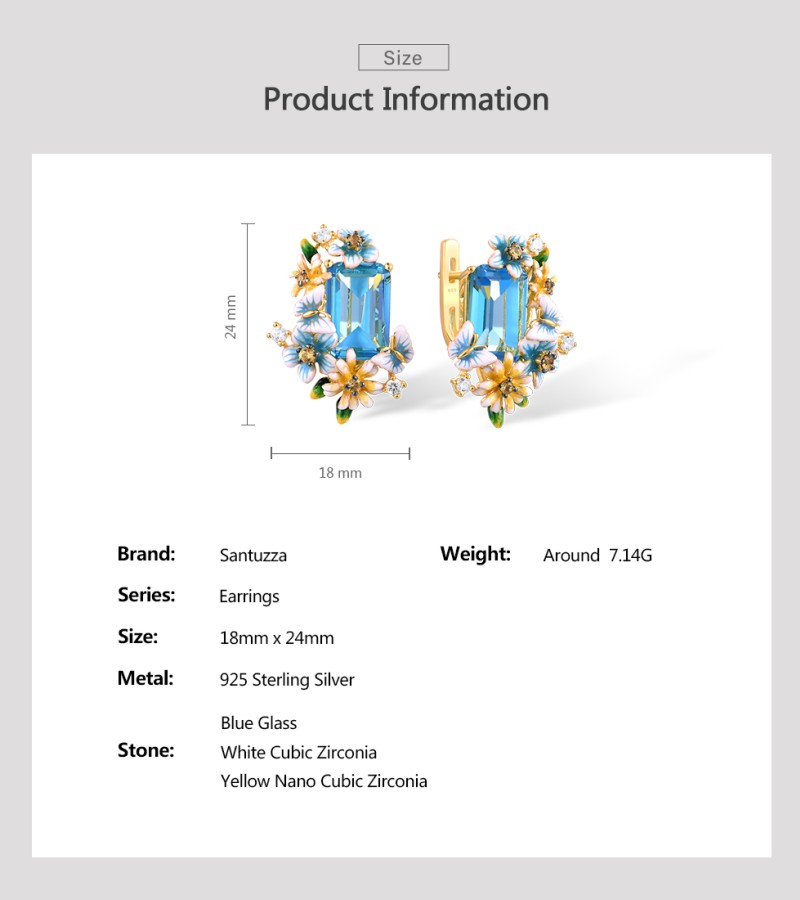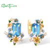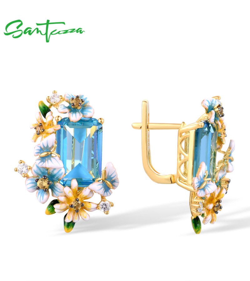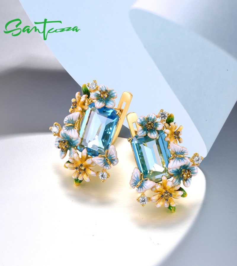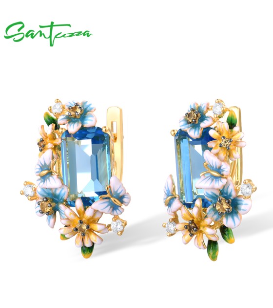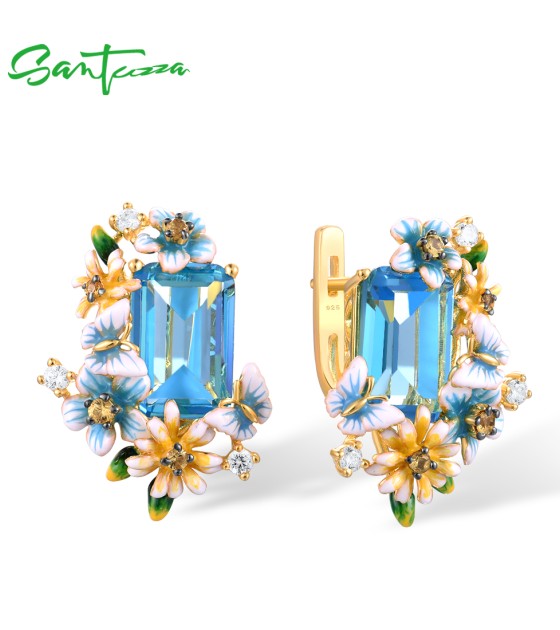 SANTUZZA 925 Sterling Silver Earrings Octagon Blue Stone Flower Butterfly Enamel Gold Color Fine Jewelry