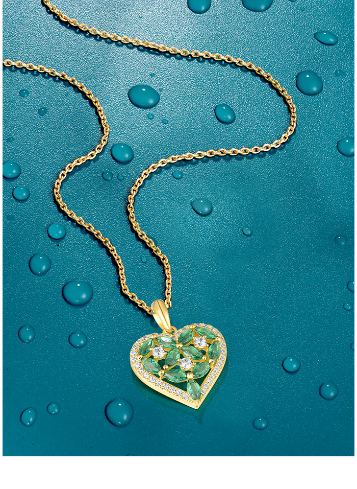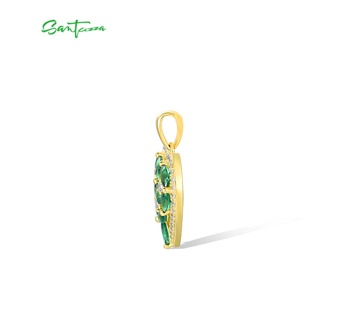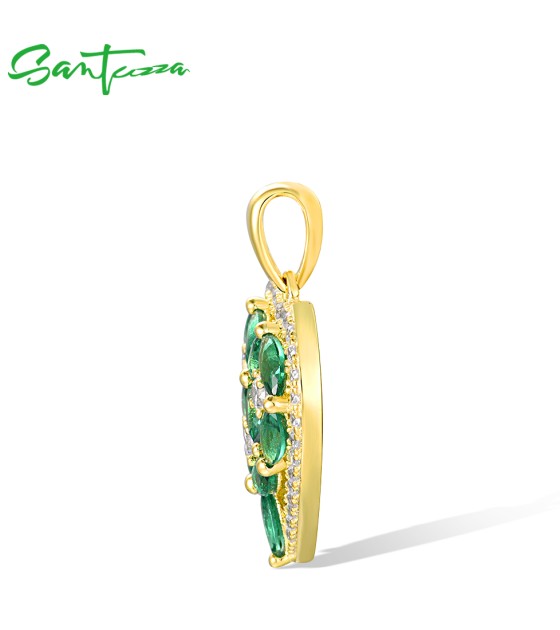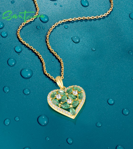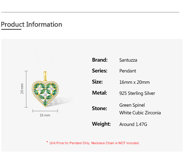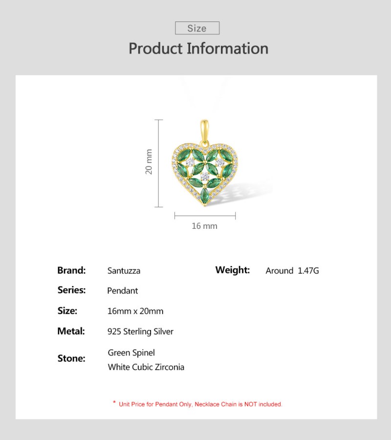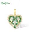 SANTUZZA 925 Sterling Silver Pendant Sparkling White CZ Green Spinel Heart Jewelry