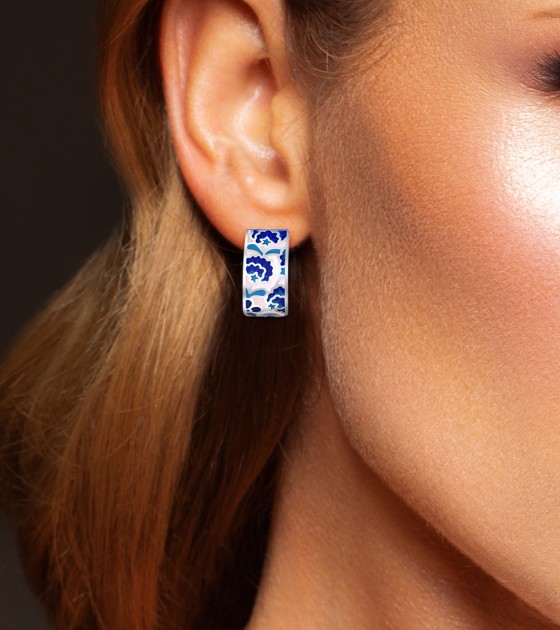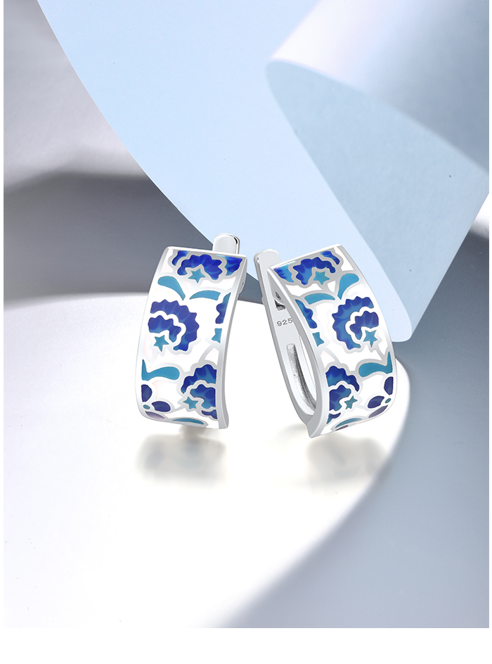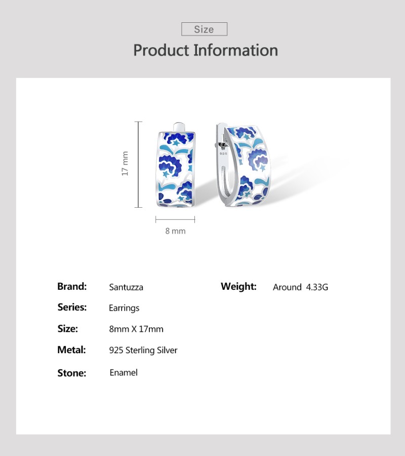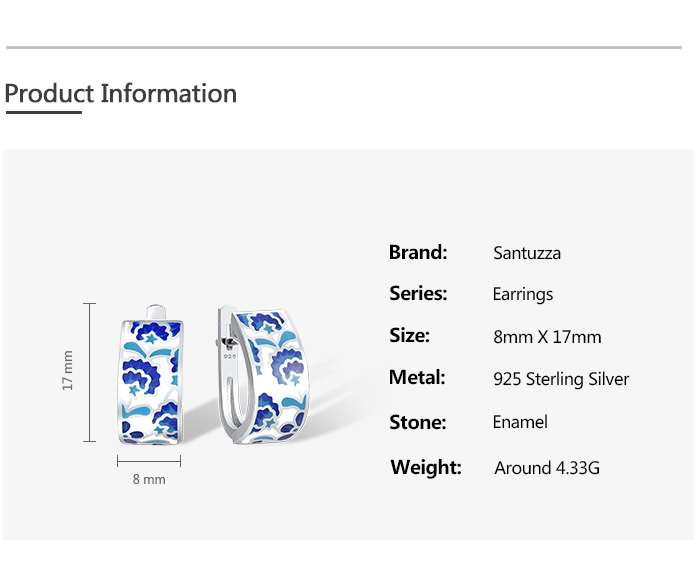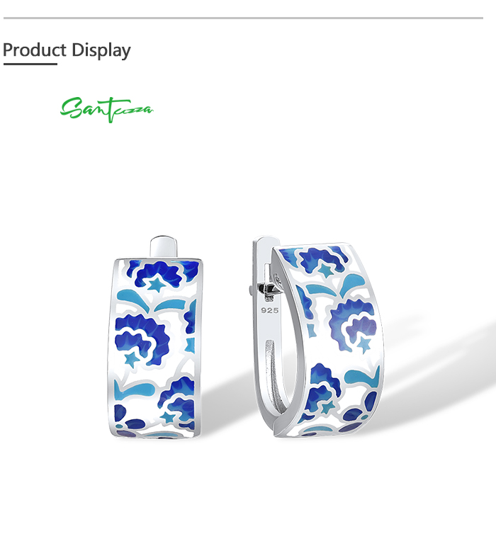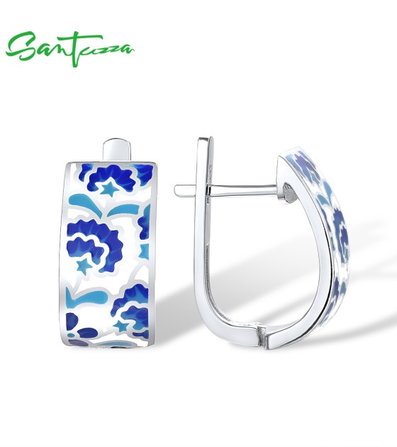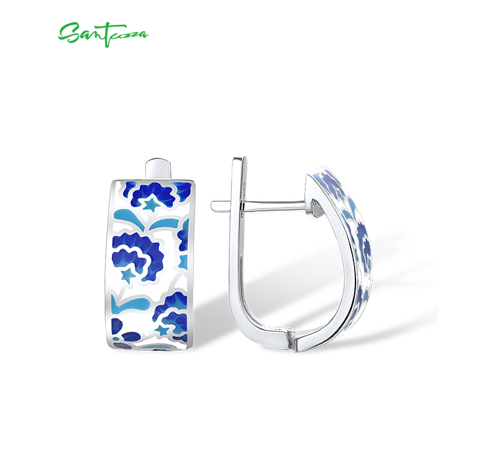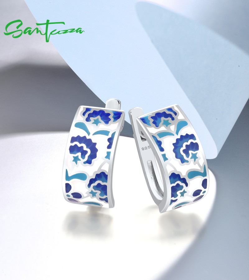 SANTUZZA 925 Sterling Silver Earrings Blue Flower Handmade Enamel Earrings Fine Jewelry