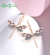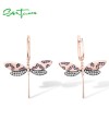 SANTUZZA 925 Sterling Silver Earrings Lab Created Pink Sapphire White CZ Dragonfly Fine Jewelry
