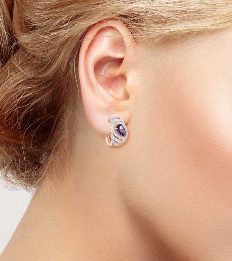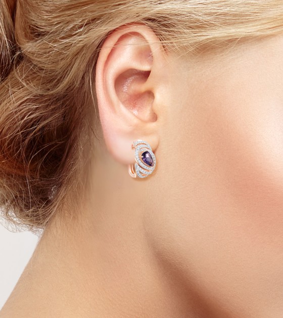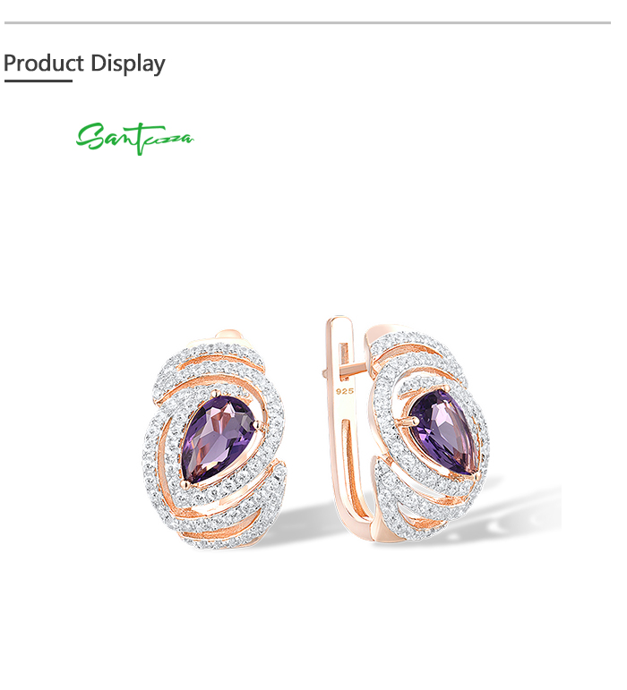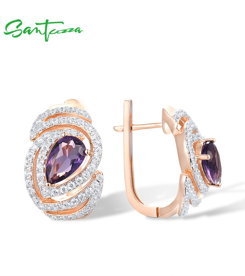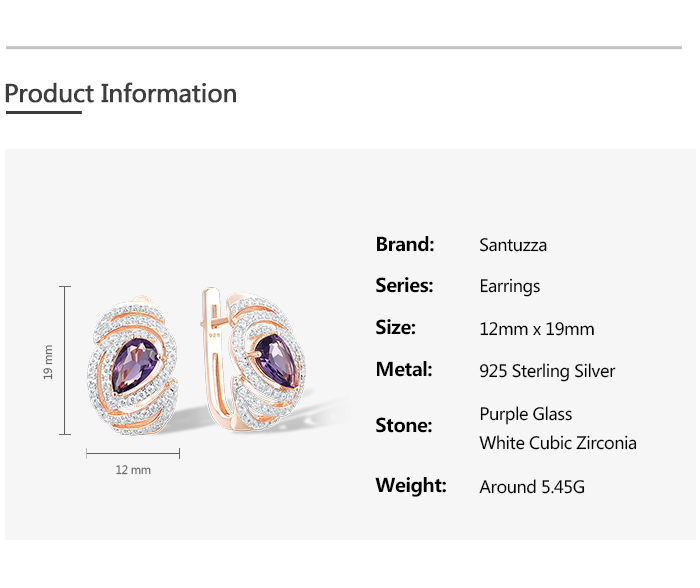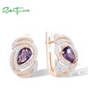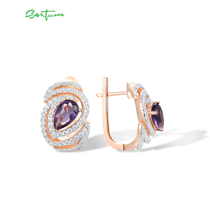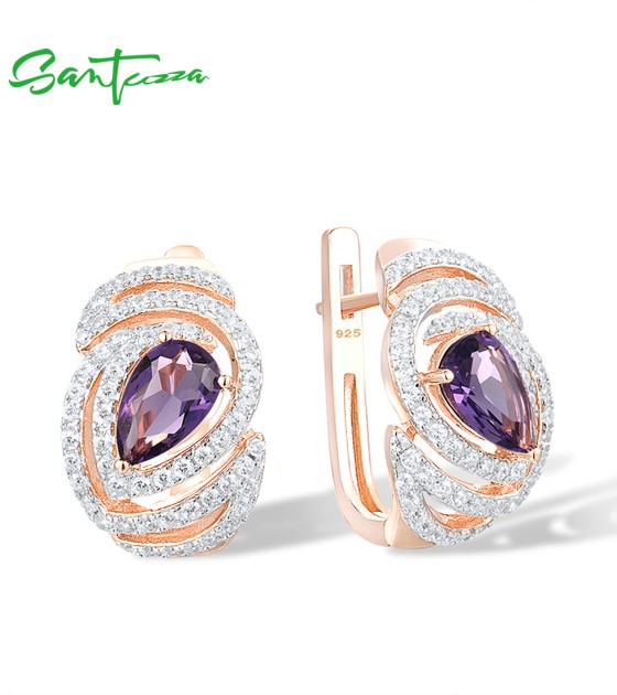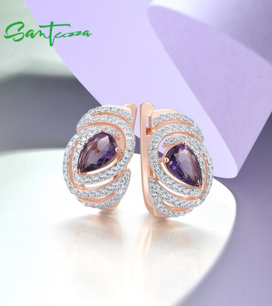 SANTUZZA 925 Sterling Silver Earrings Purple Stone White Cubic Zirconia Fine Jewelry