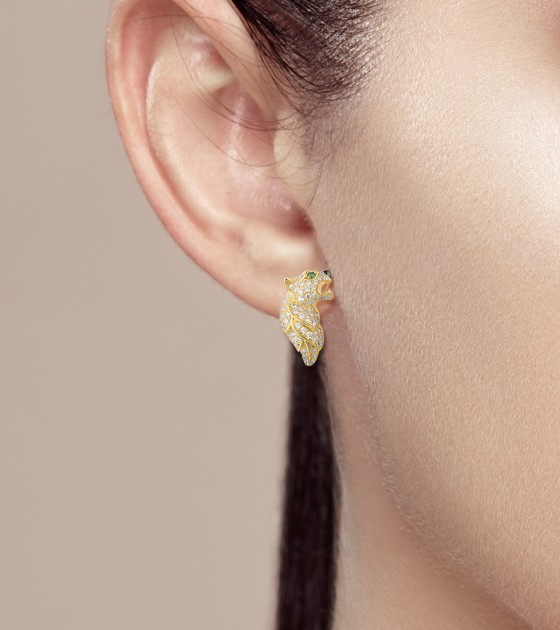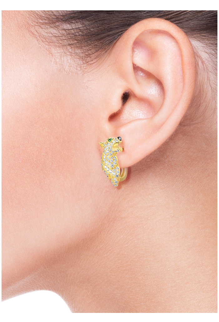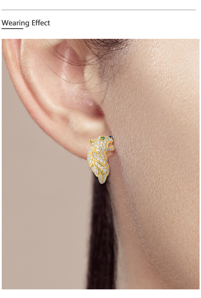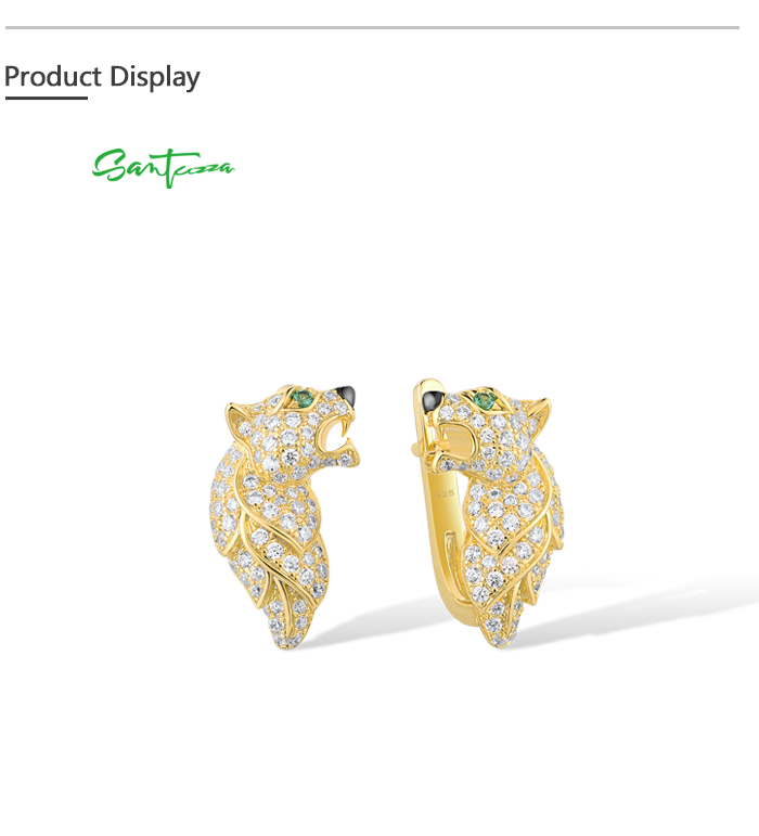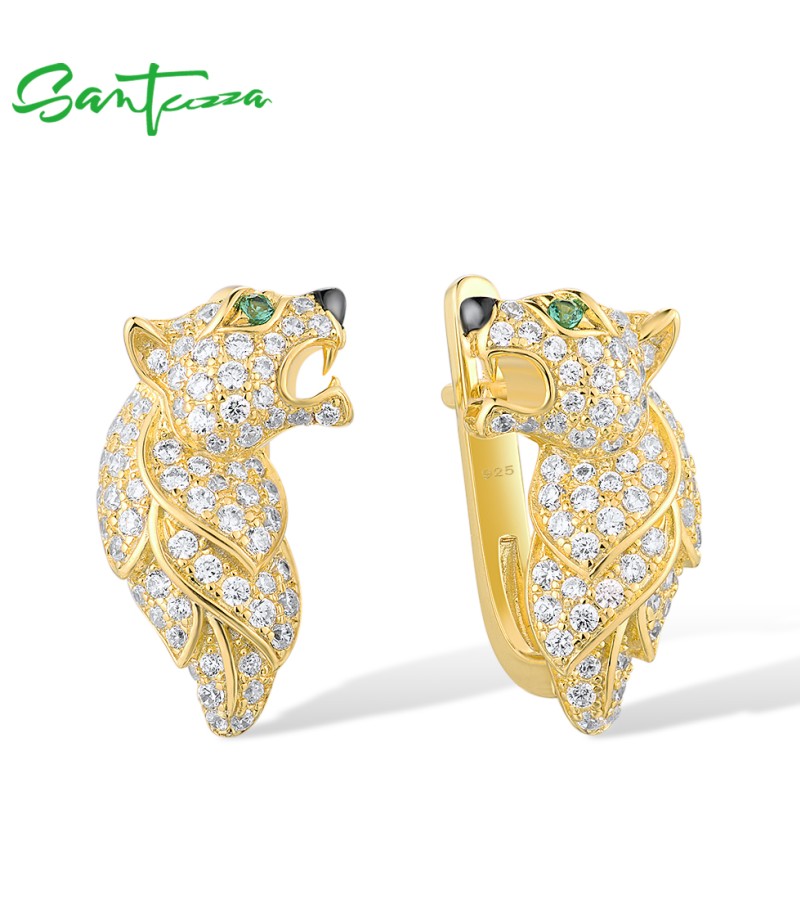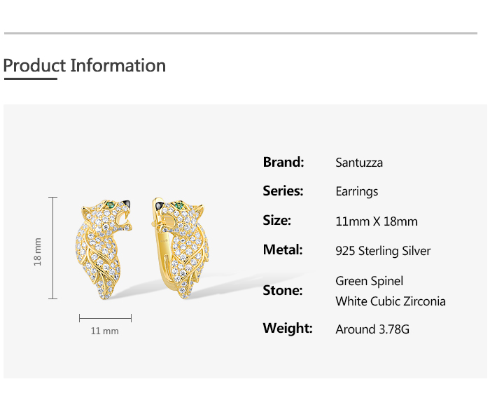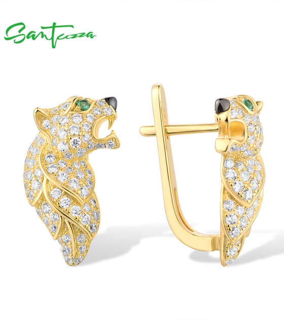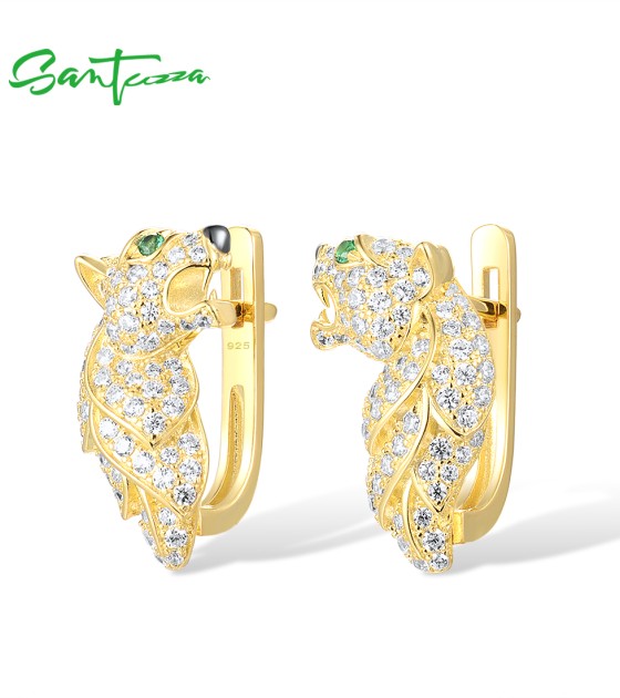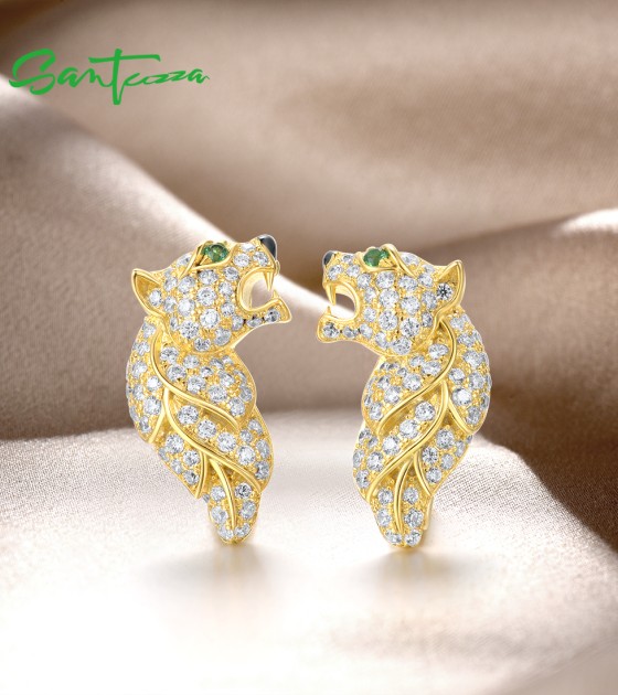 SANTUZZA 925 Sterling Silver Earrings Green Spinel Gold Color Leopard Fine Jewelry