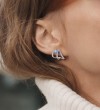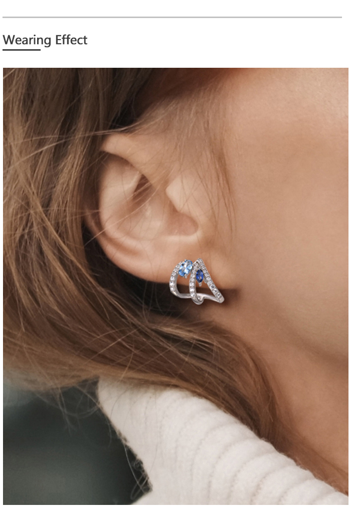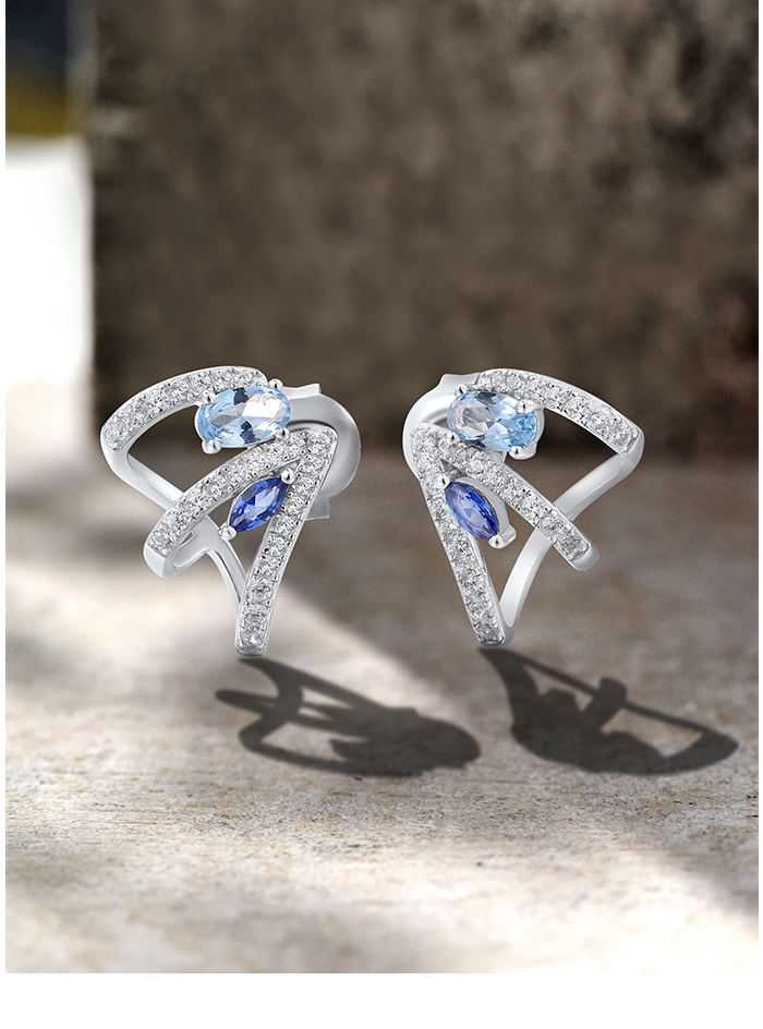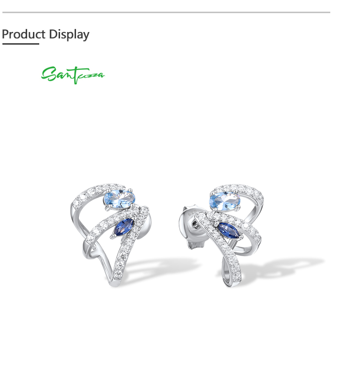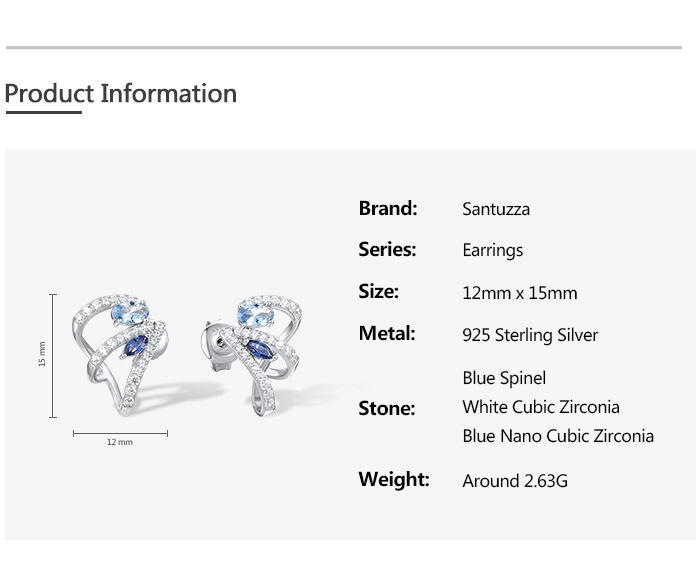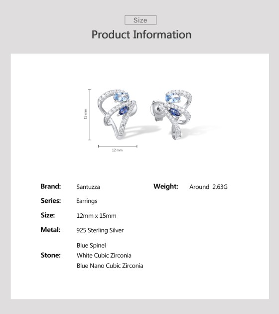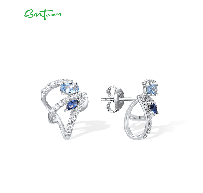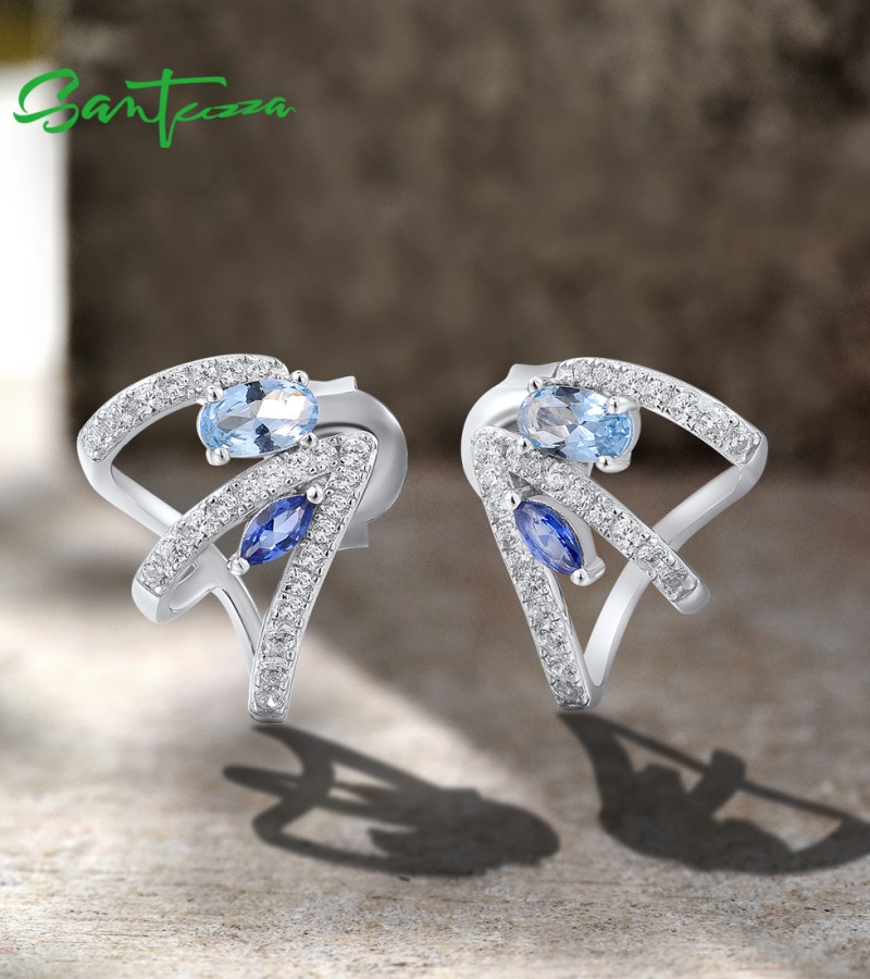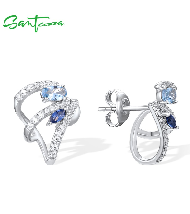 SANTUZZA 925 Sterling Silver Stud Earrings Blue Spinel White Cubic Zirconia Jewelry