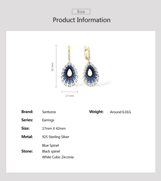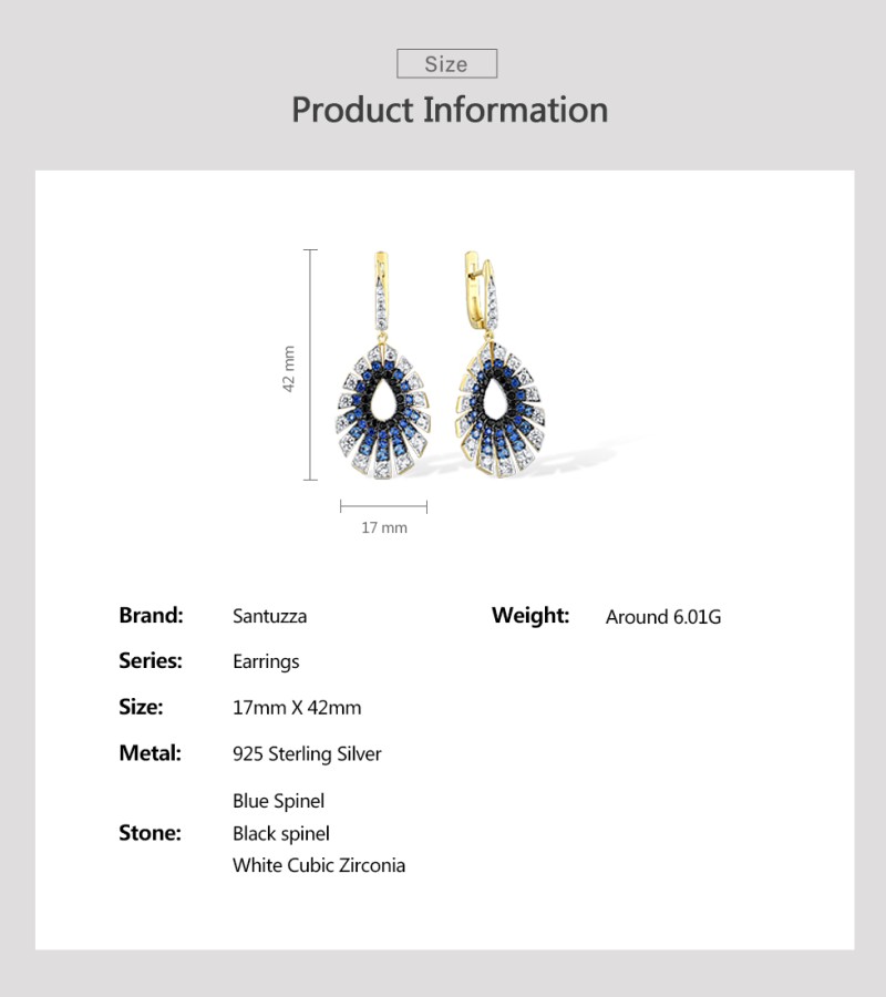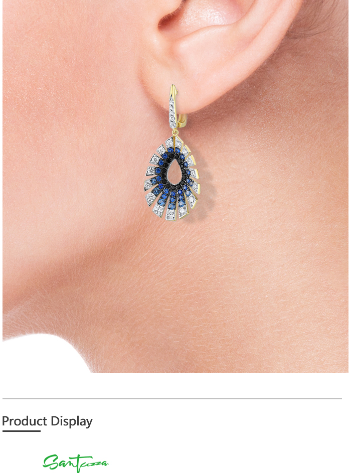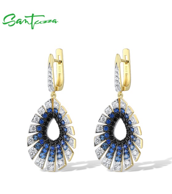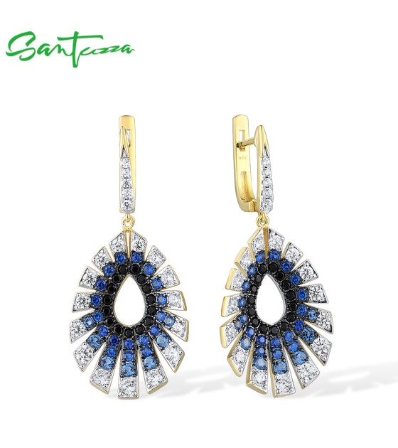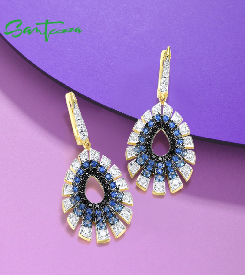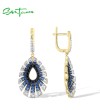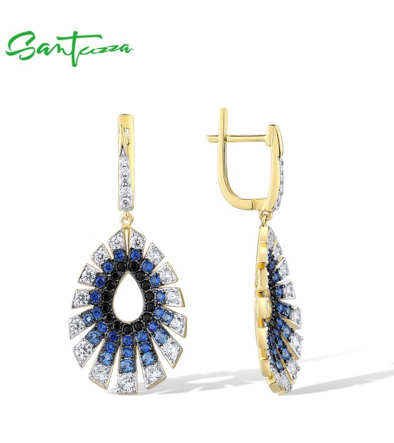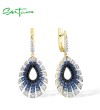 SANTUZZA 925 Sterling Silver Water Drop Earrings Gradient Black/Blue Spinel White CZ Fine Jewelry