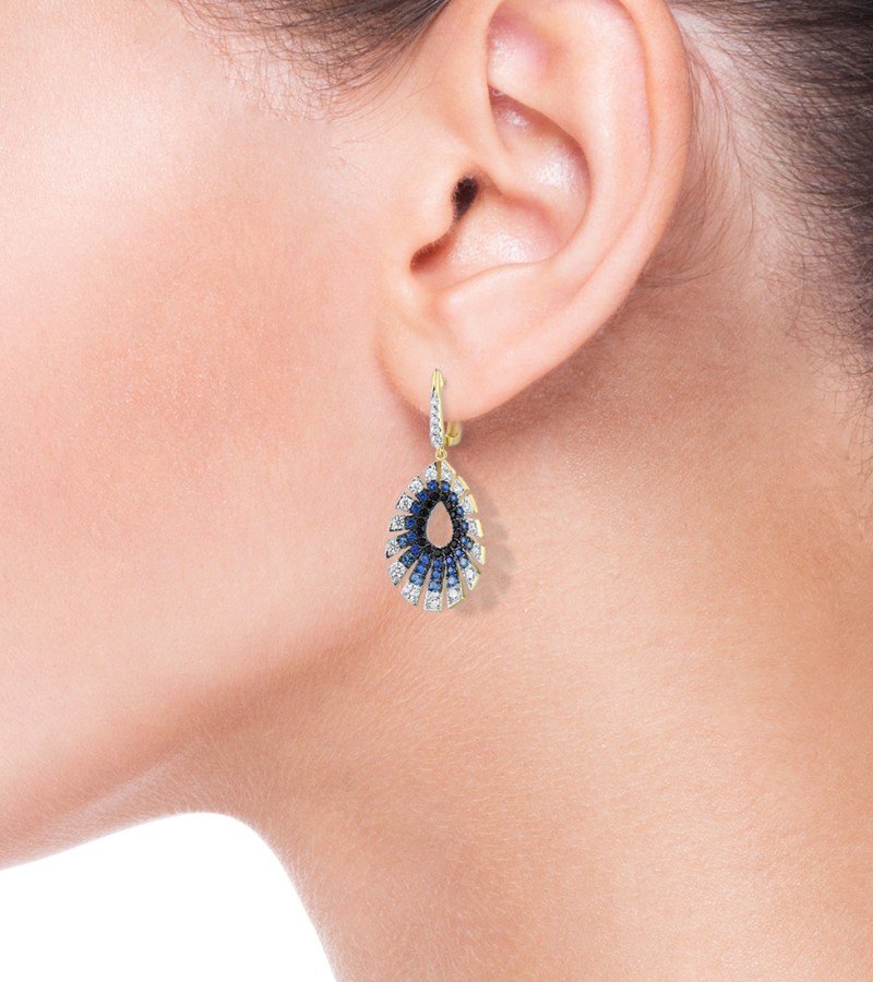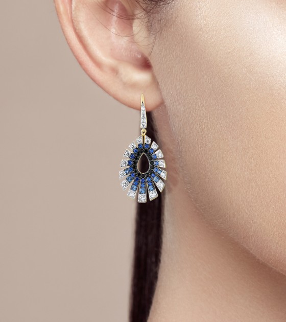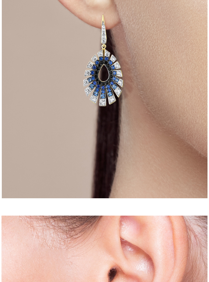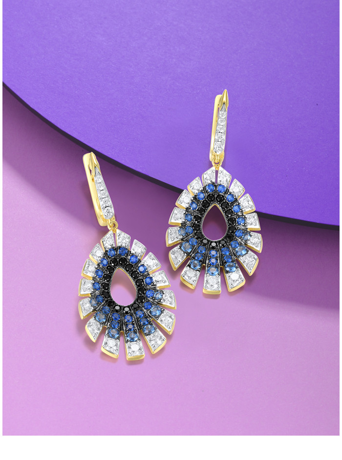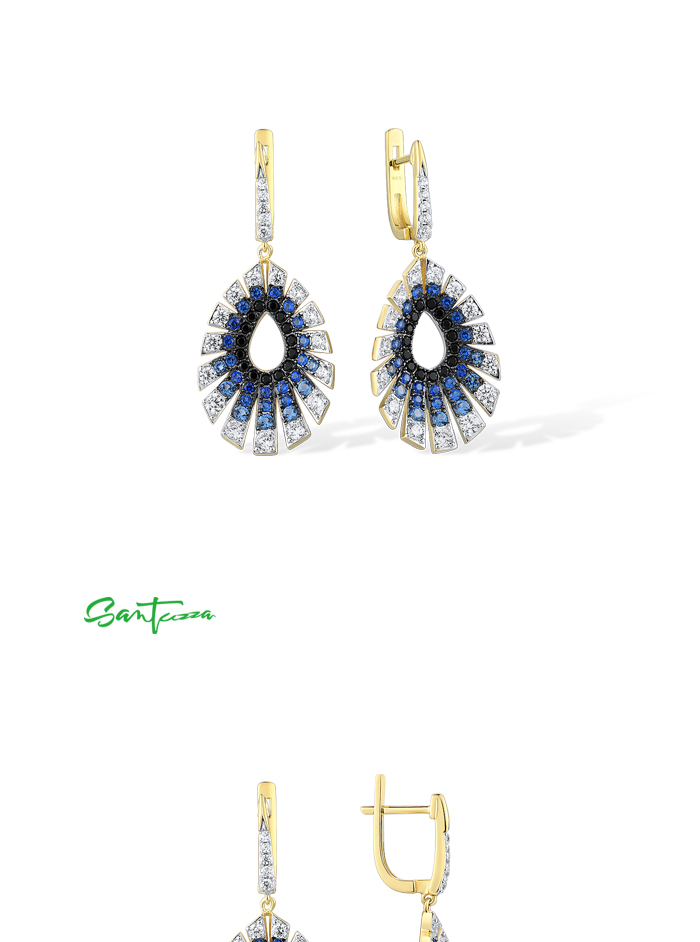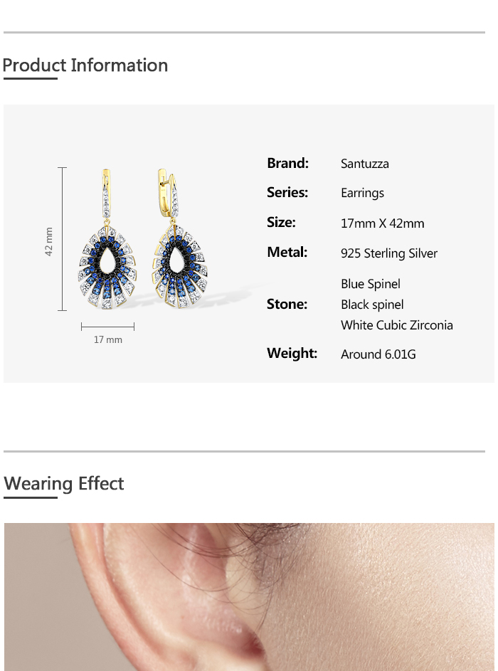SANTUZZA 925 Sterling Silver Water Drop Earrings Gradient Black/Blue Spinel White CZ Fine Jewelry