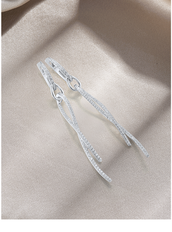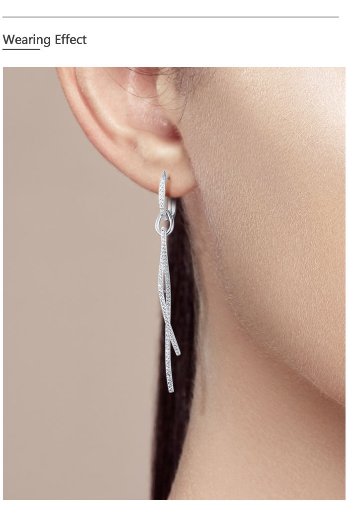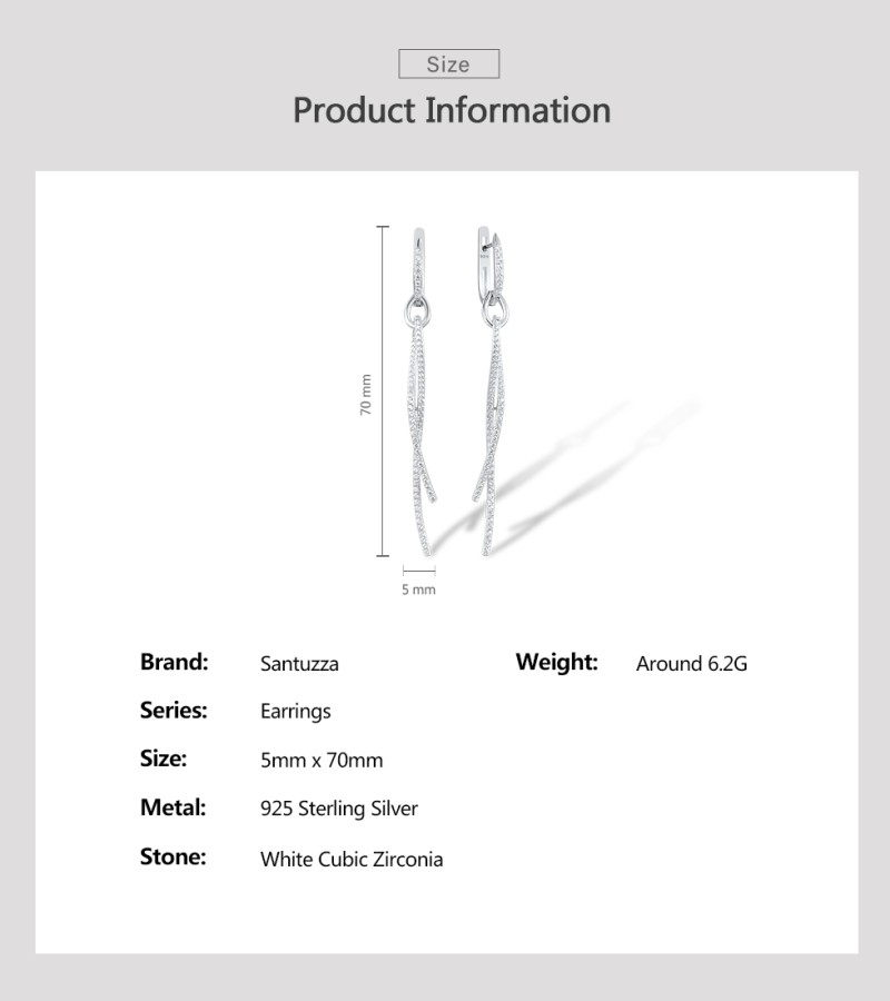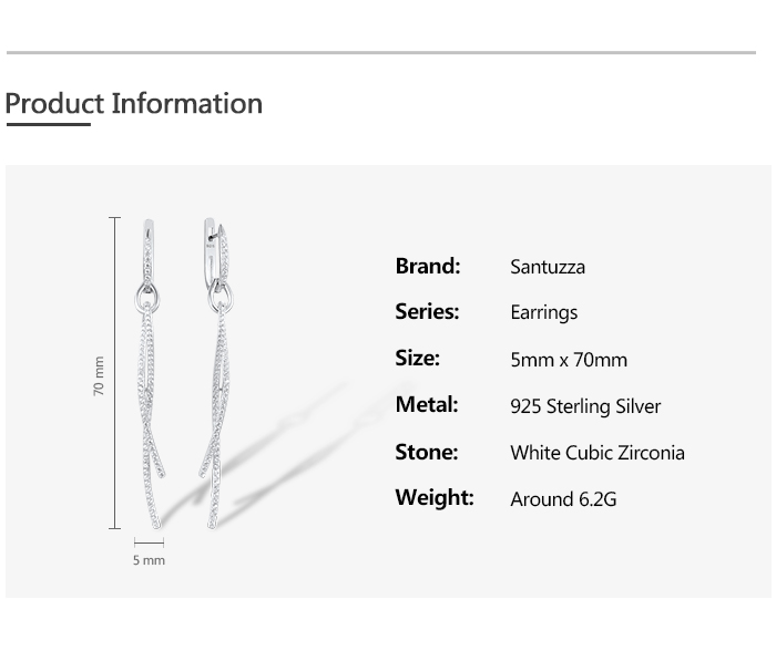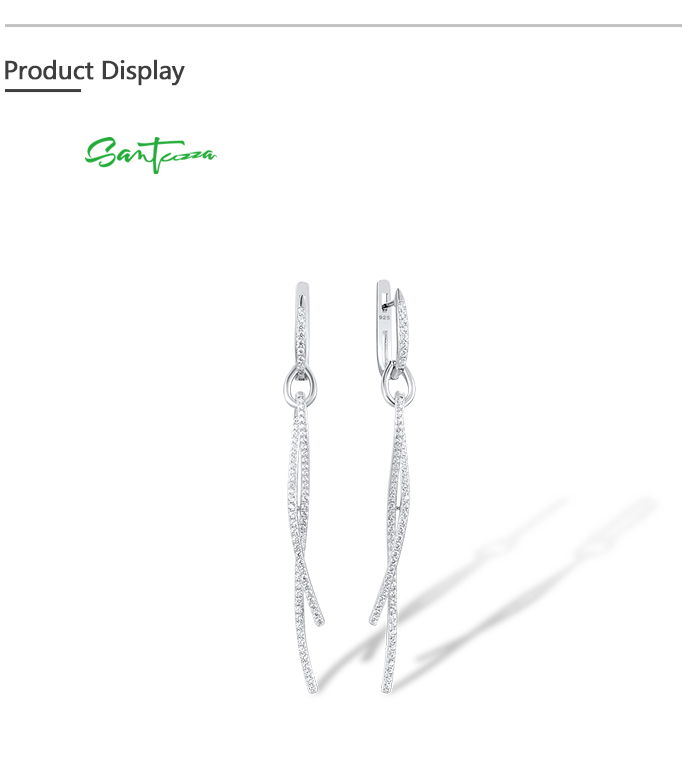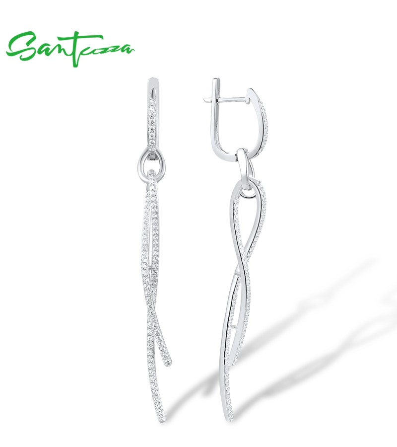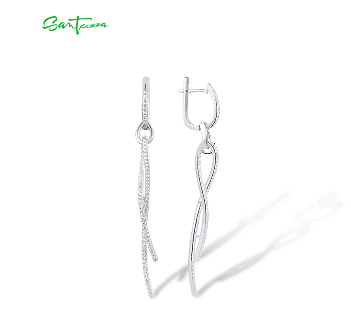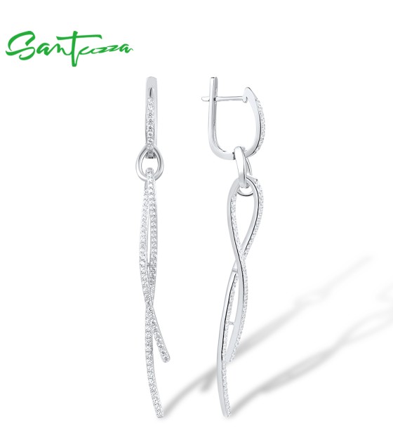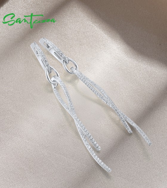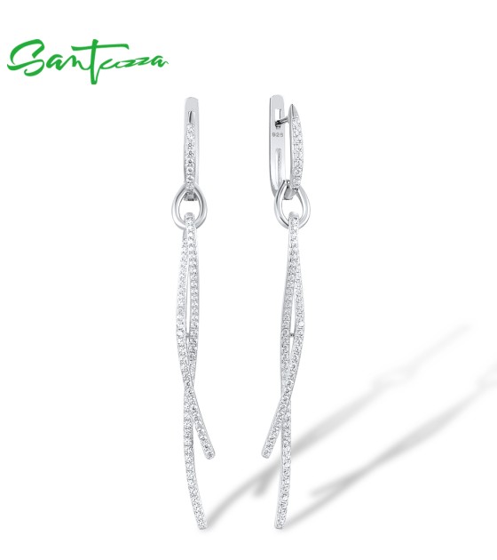 SANTUZZA Silver Earrings 925 Sterling Silver White Cubic Zirconia Long Dangling Earrings Delicate Jewelry