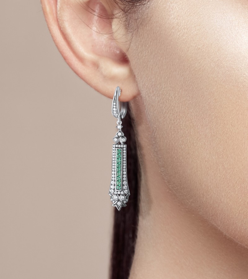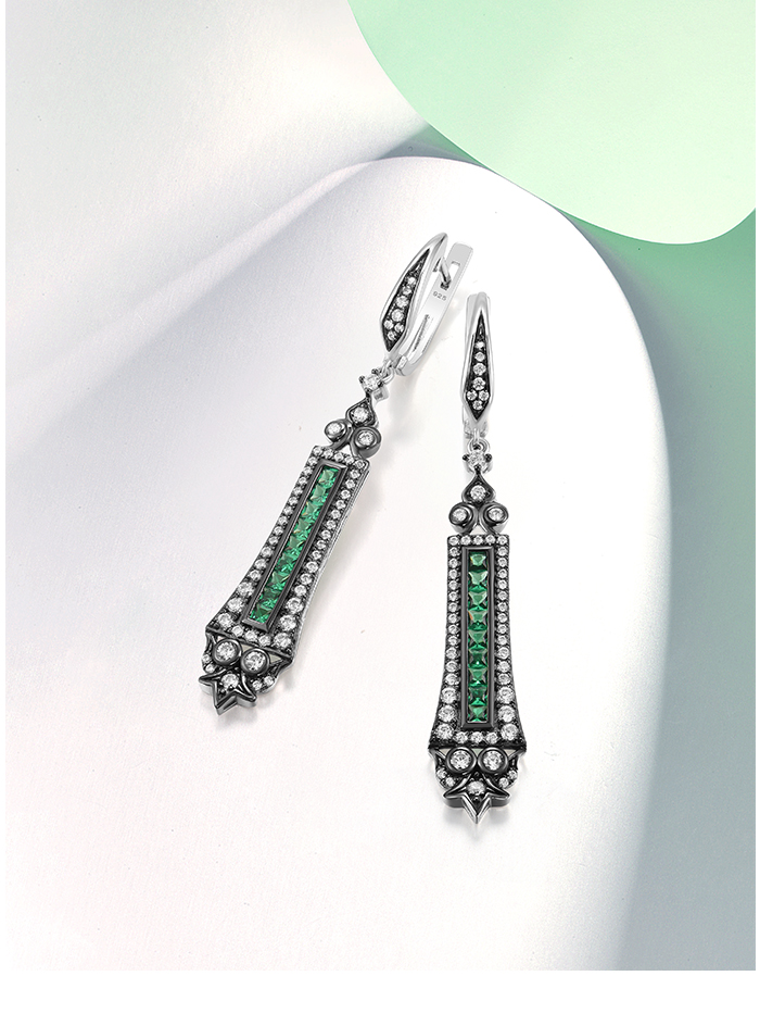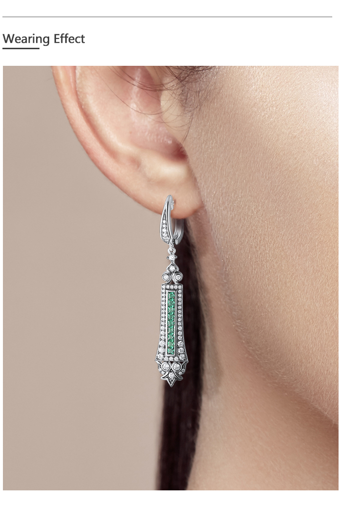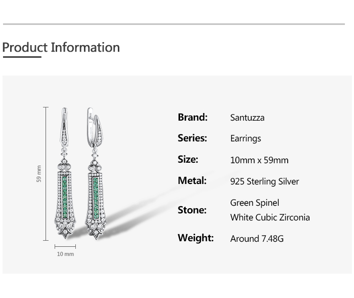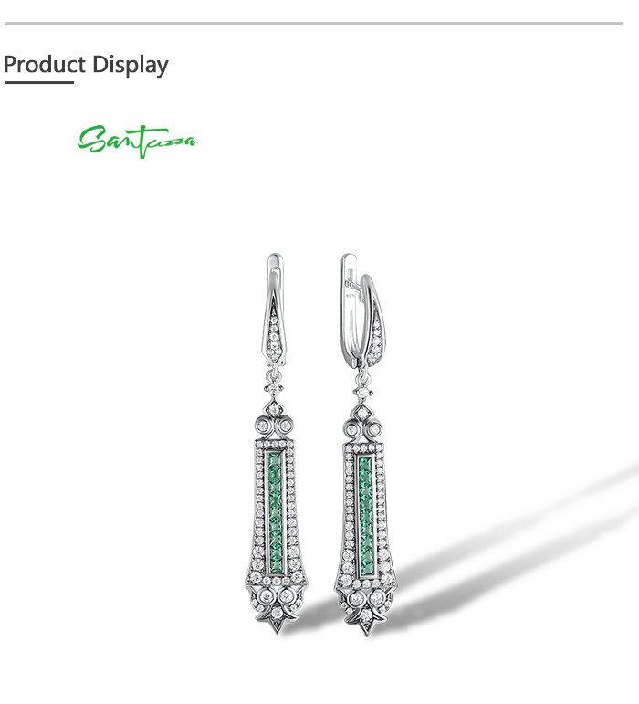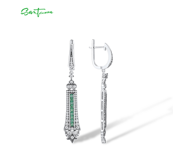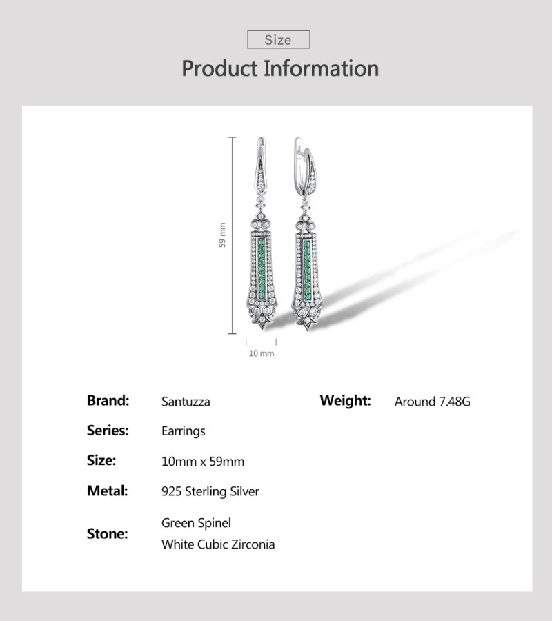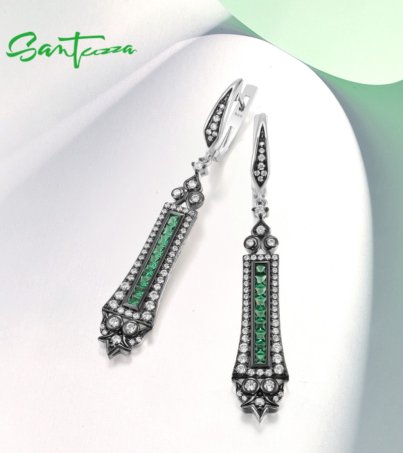 SANTUZZA 925 Sterling Silver Earrings Green Spinel White Cubic Zirconia Dangling Earrings Jewelry