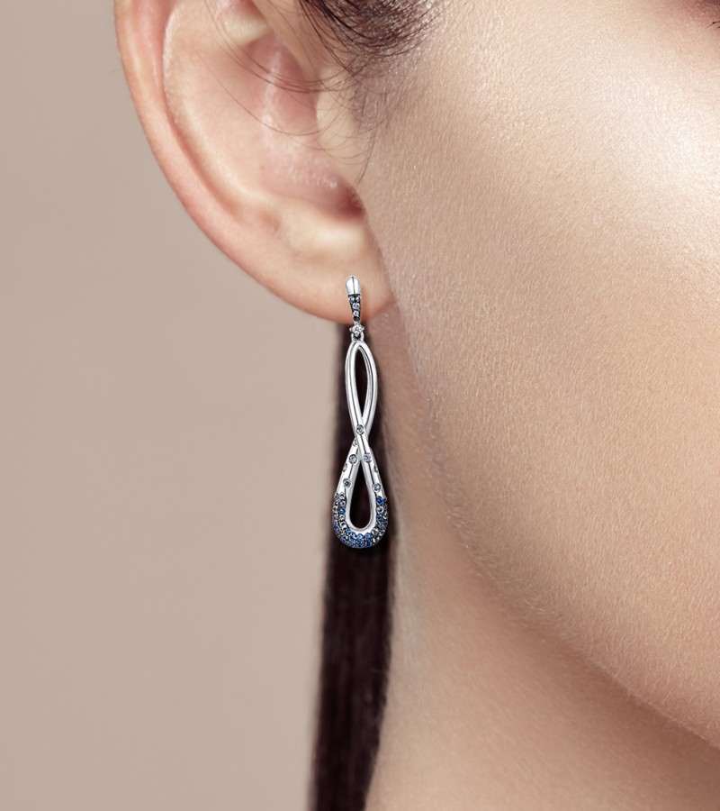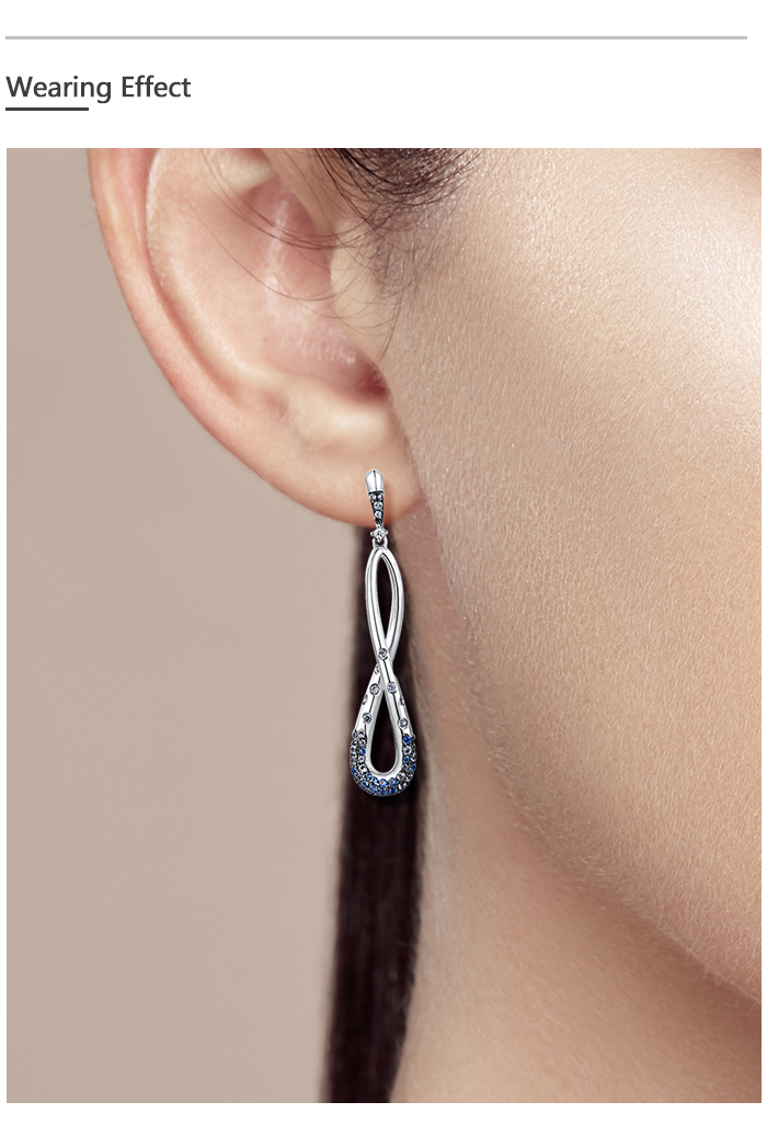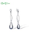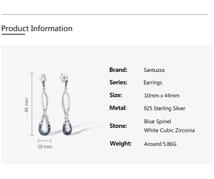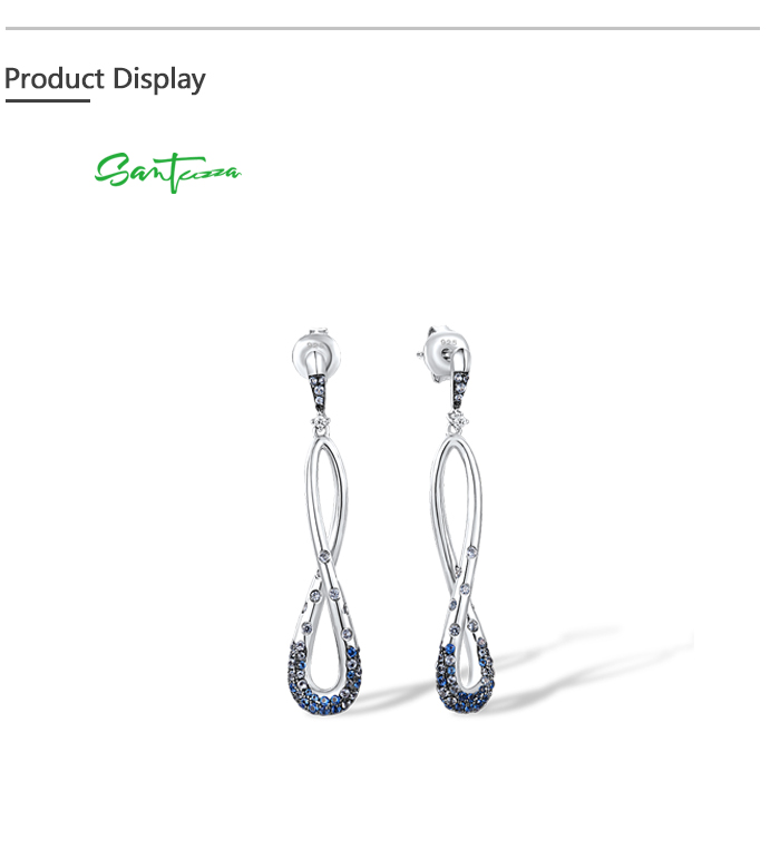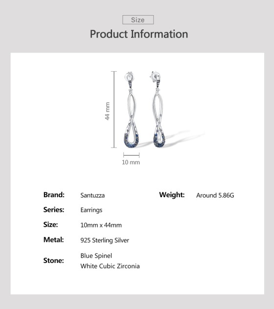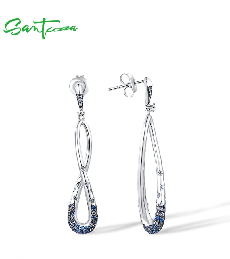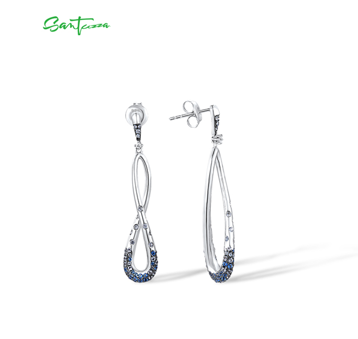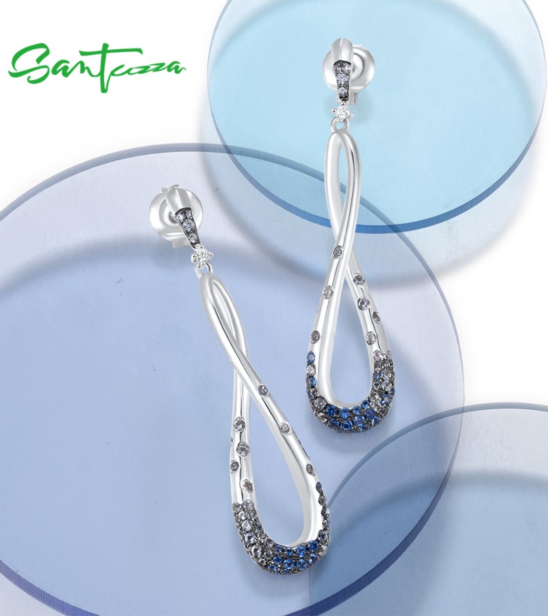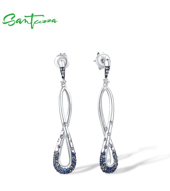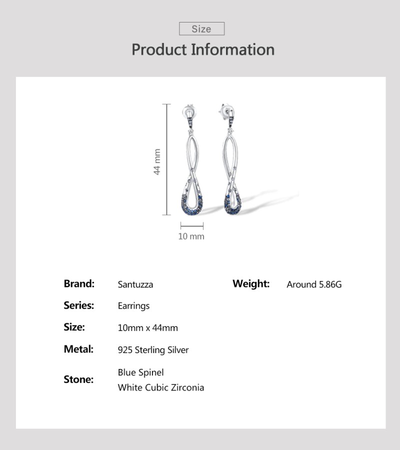 SANTUZZA Silver Earrings 925 Sterling Silver Blue Spinel White CZ Geometric Dangling Earrings Jewelry