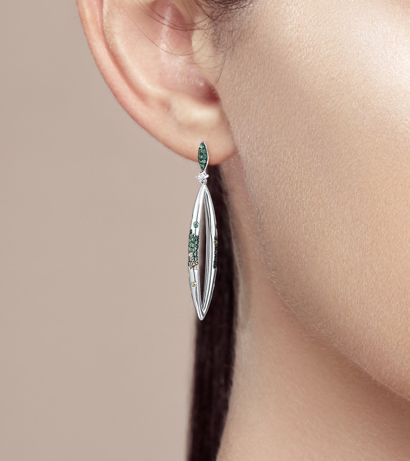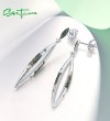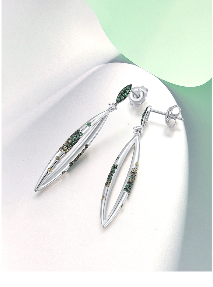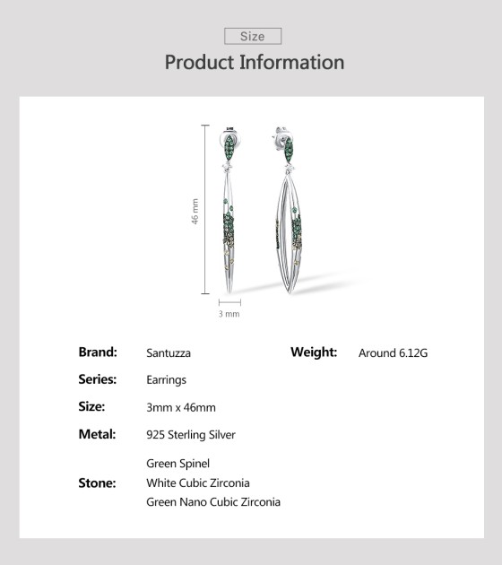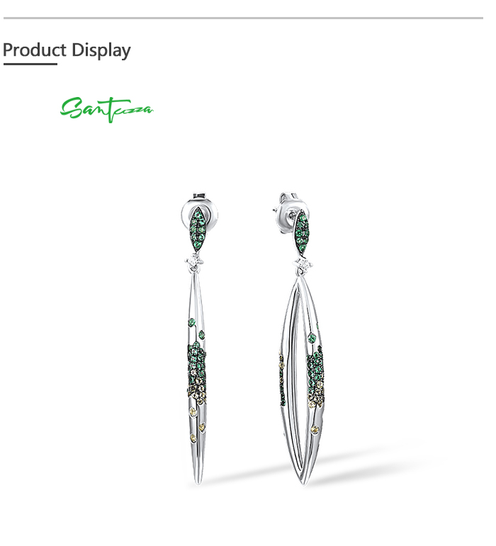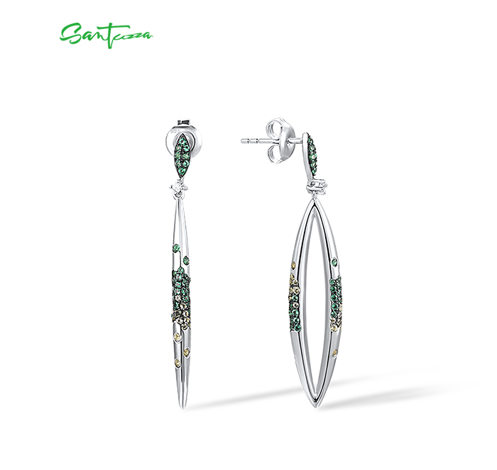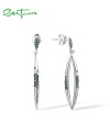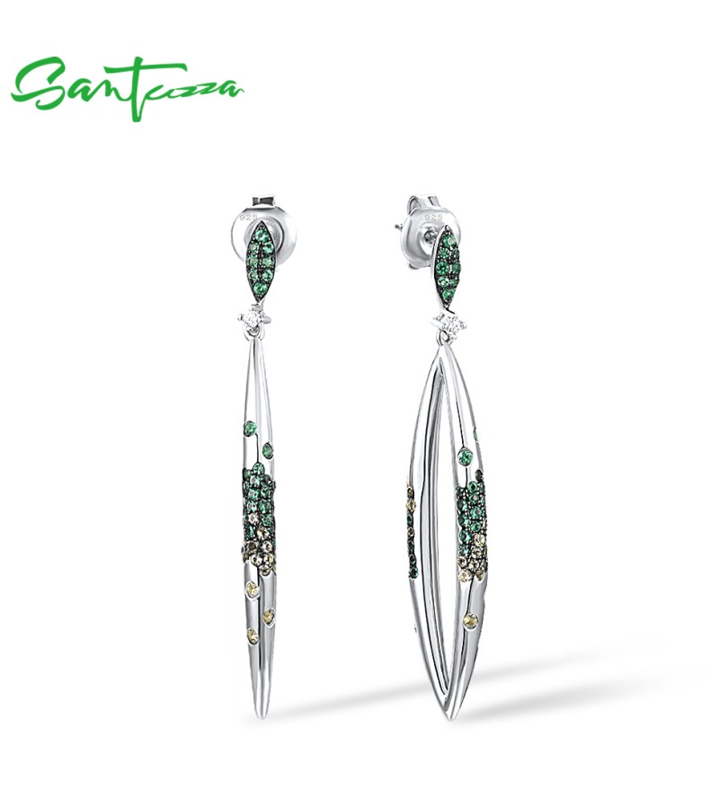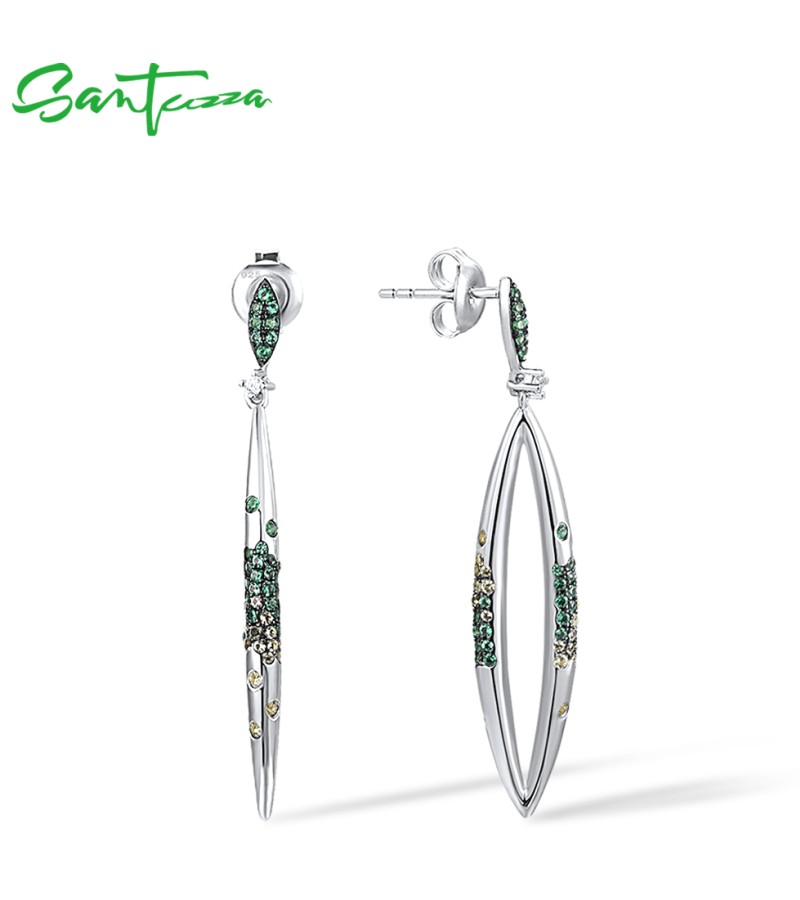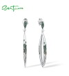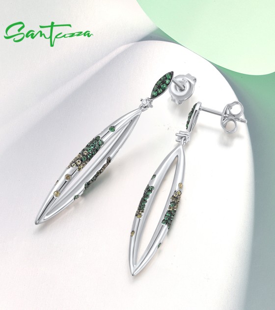 SANTUZZA Silver Earrings 925 Sterling Silver Green Spinel White CZ Geometric Dangling Earrings Jewelry