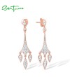 SANTUZZA 925 Sterling Silver Earrings White CZ Chandelier Drop Earrings Jewelry