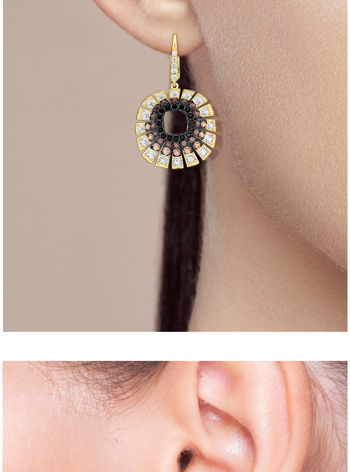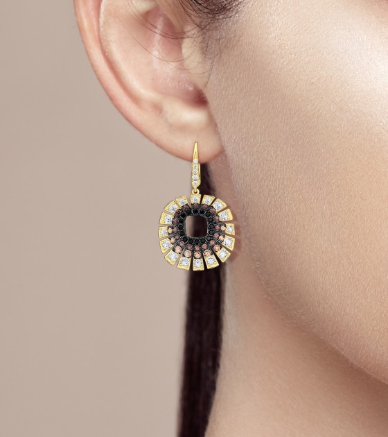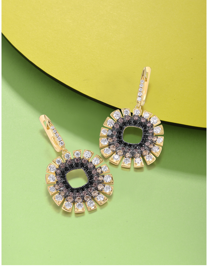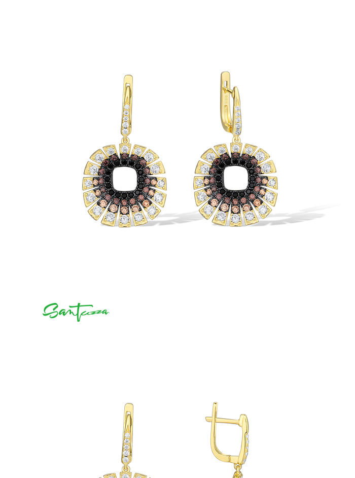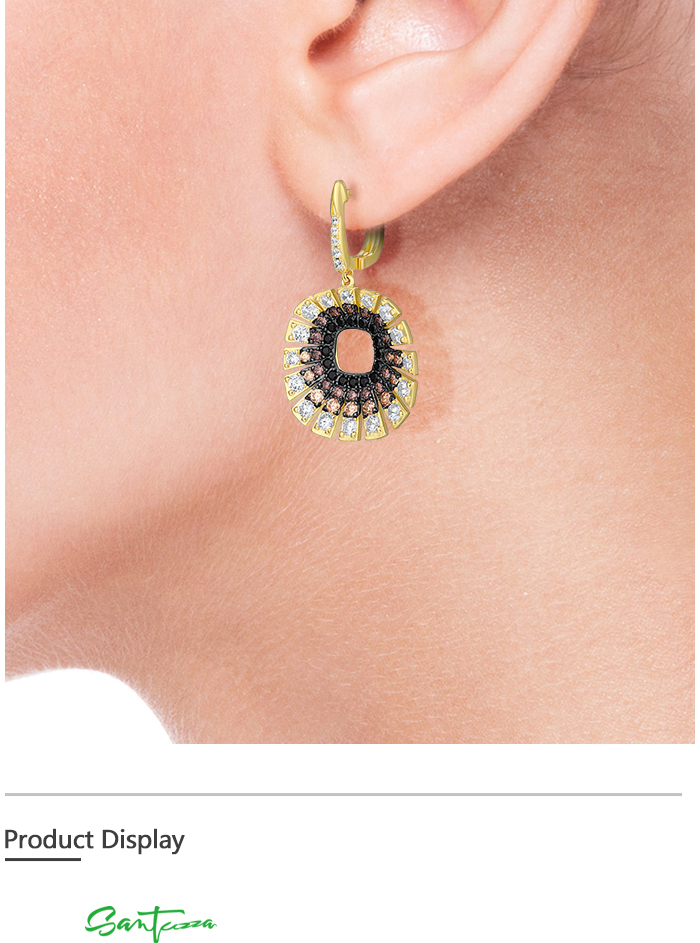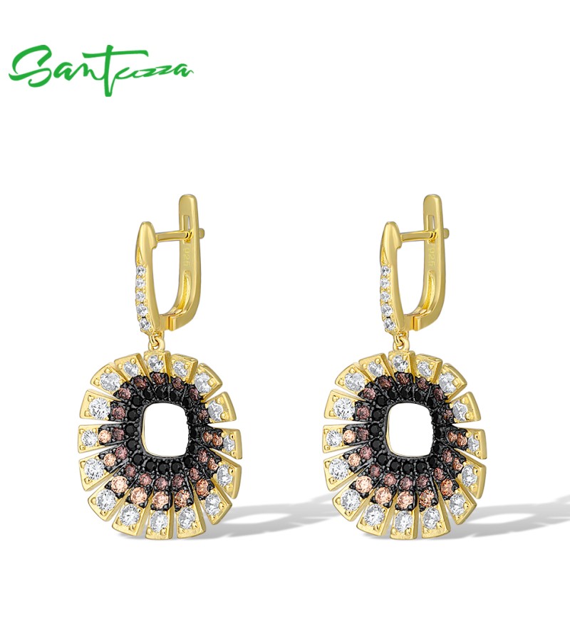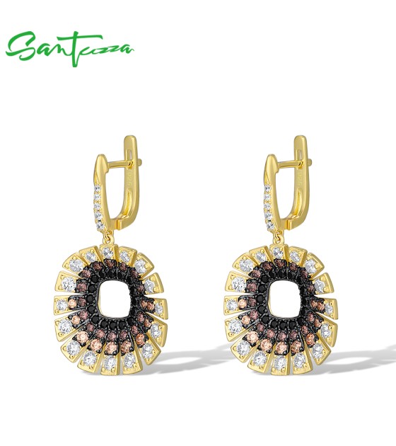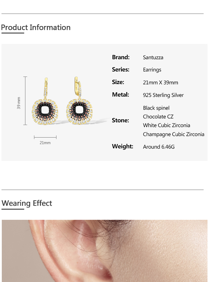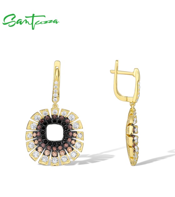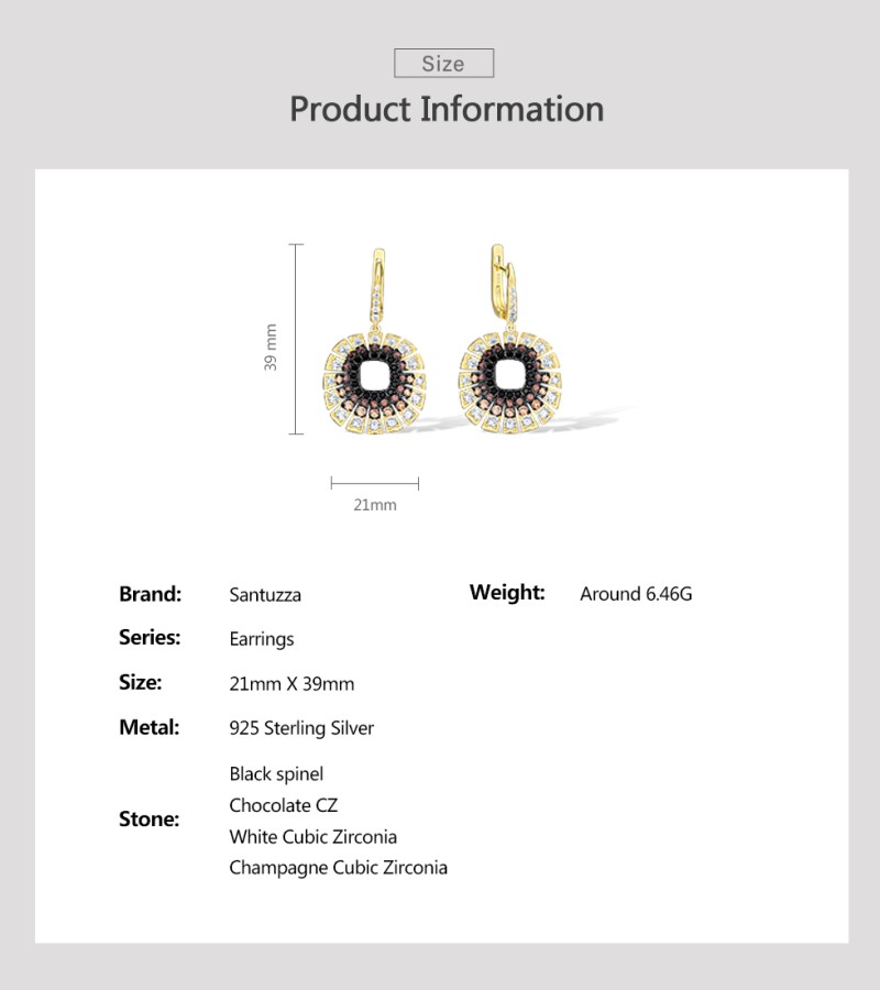 SANTUZZA 925 Sterling Silver Drop Earrings Gradient White/Champagne CZ Gold Color Square Jewelry