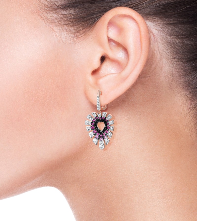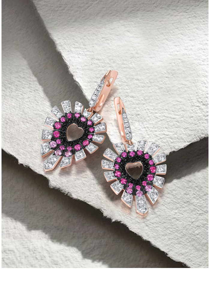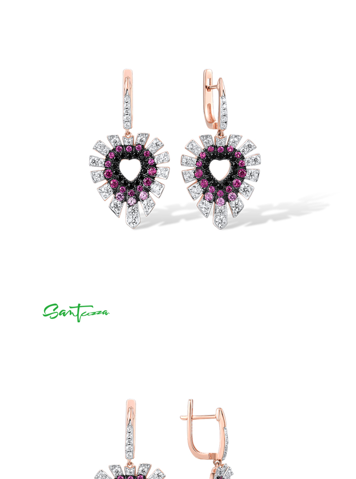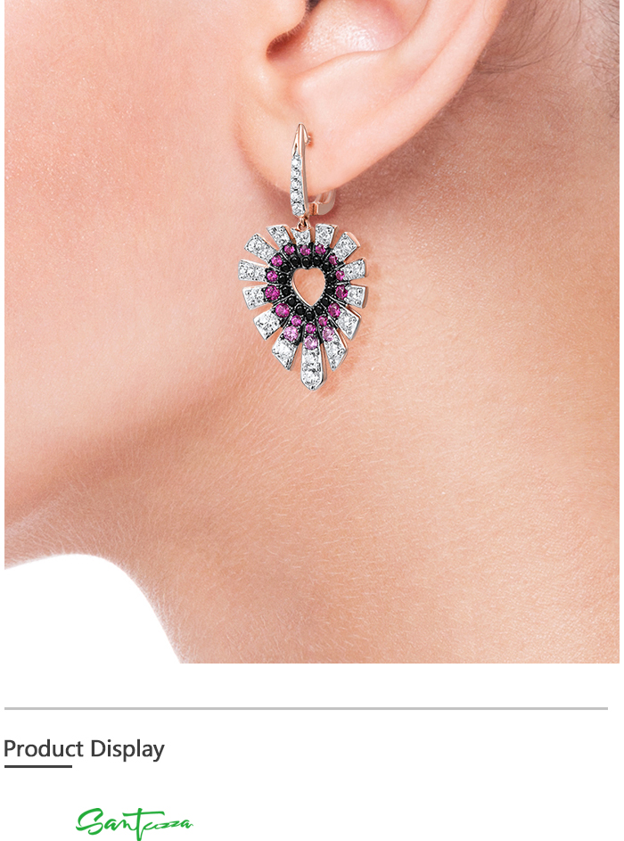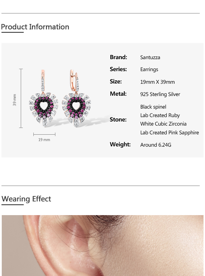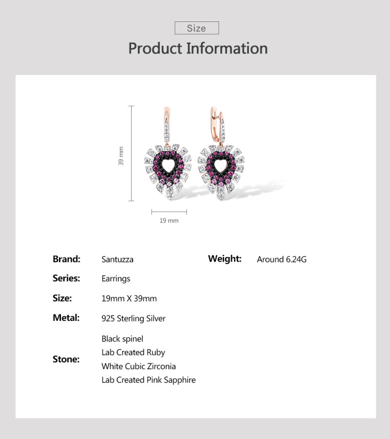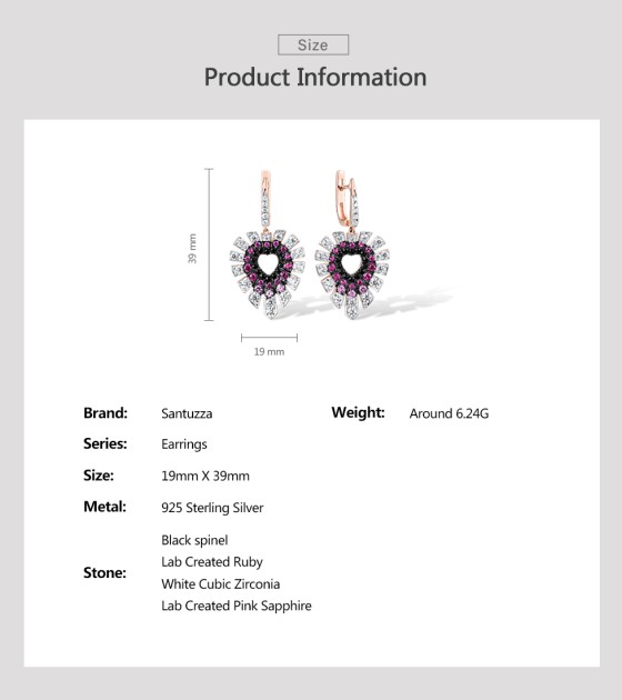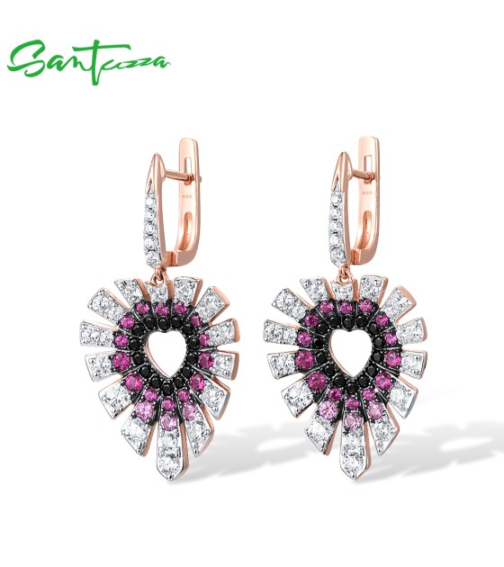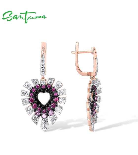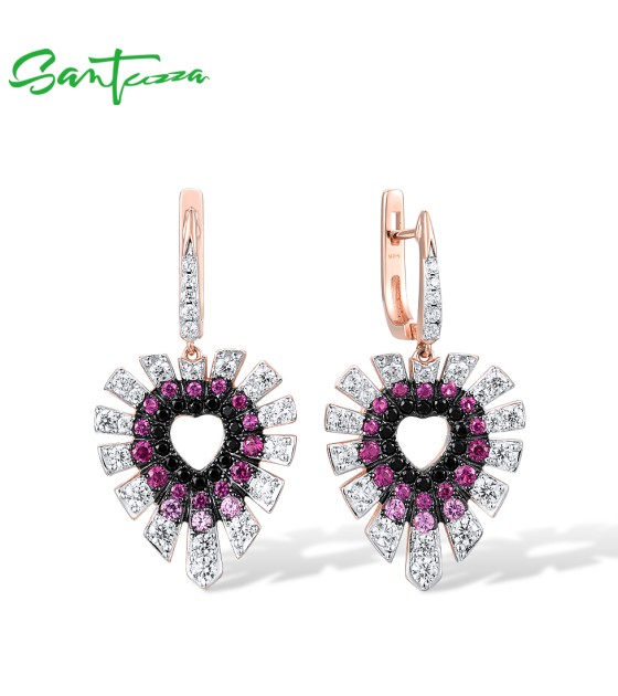 SANTUZZA 925 Sterling Silver Drop Earrings Gradient White CZ Ruby Heart Jewelry