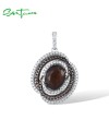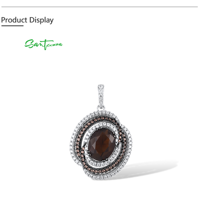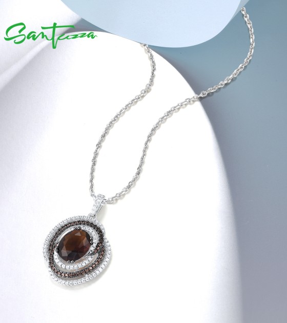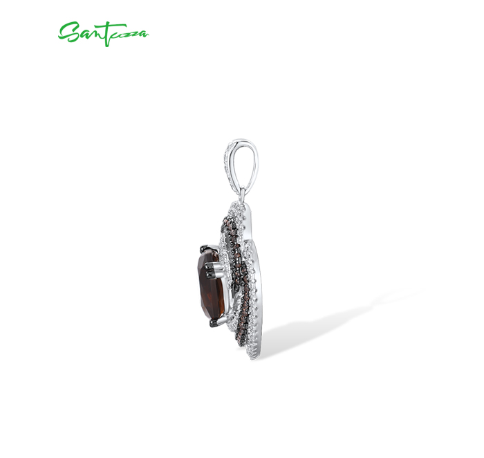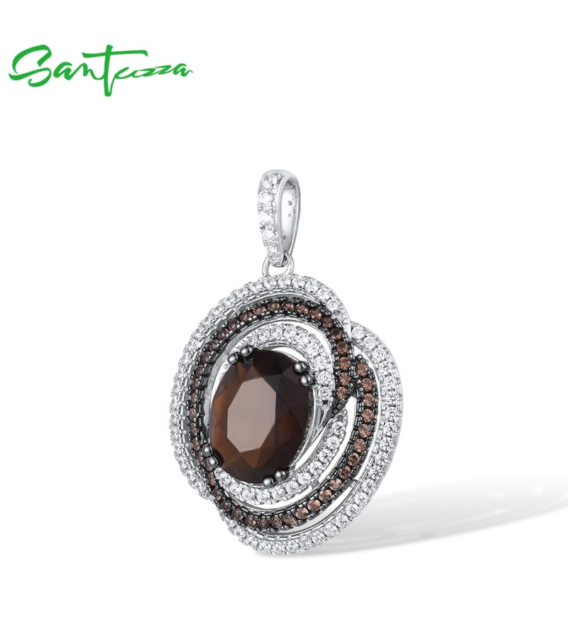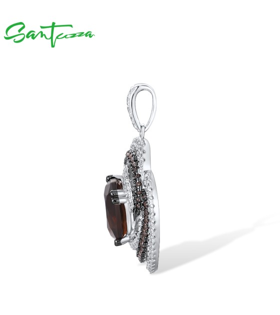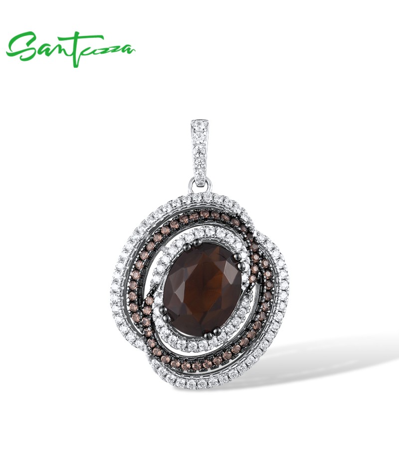SANTUZZA 925 Sterling Silver Pendants Brown Spinel Smoky Glass Round Pendants Jewelry