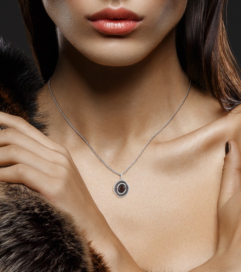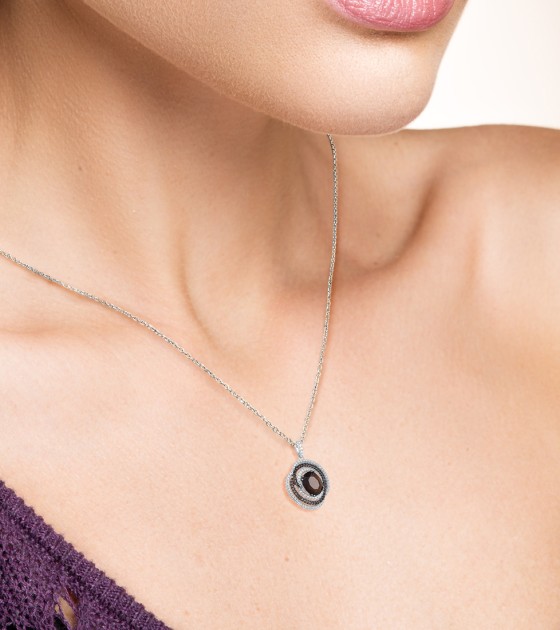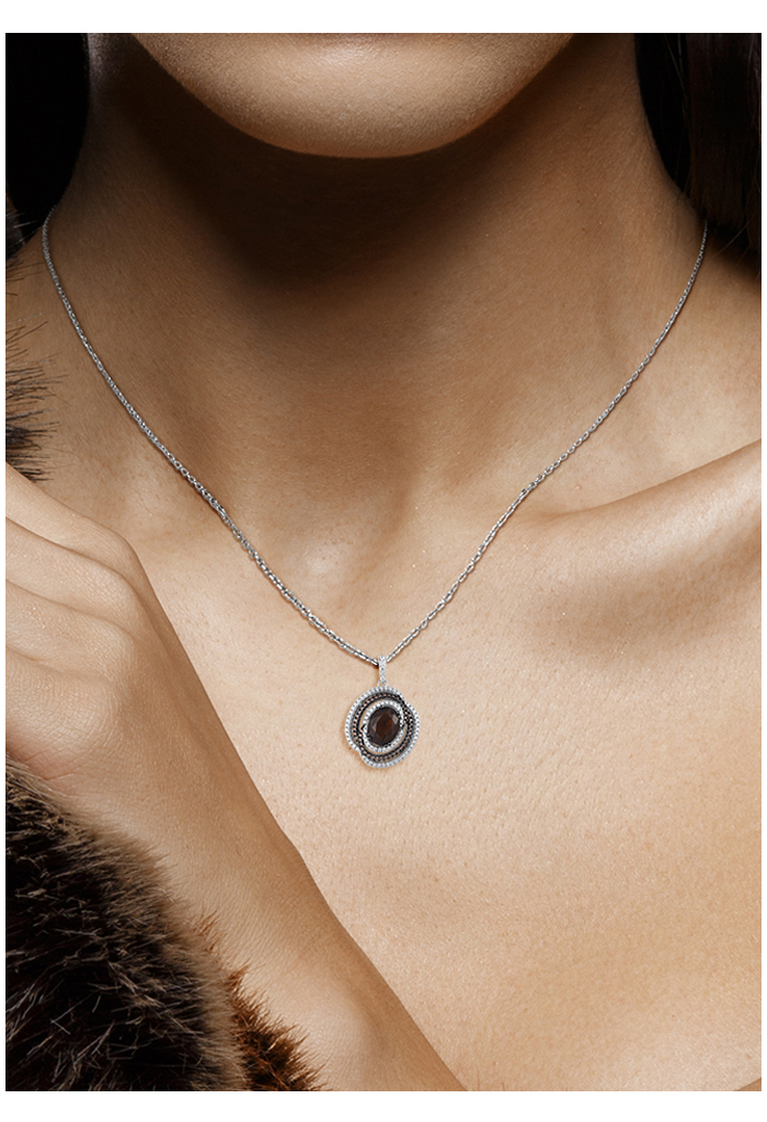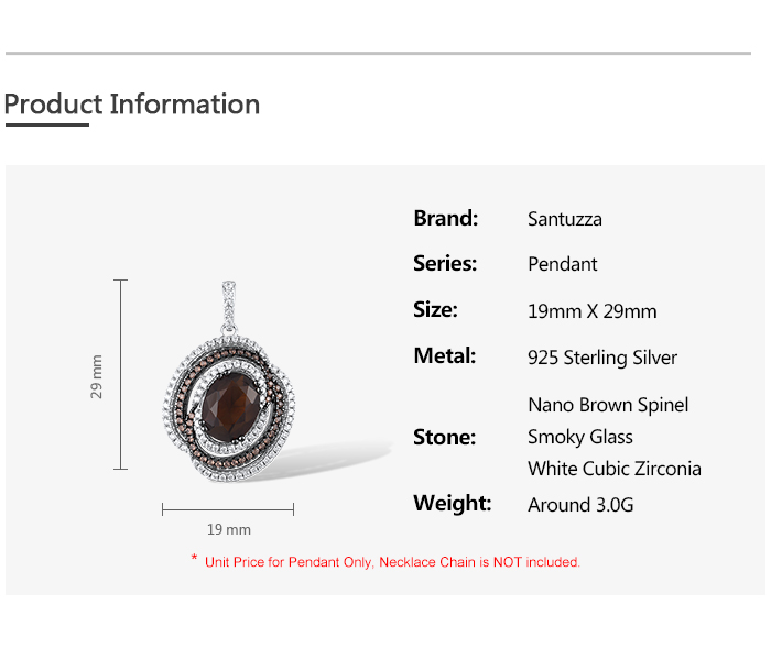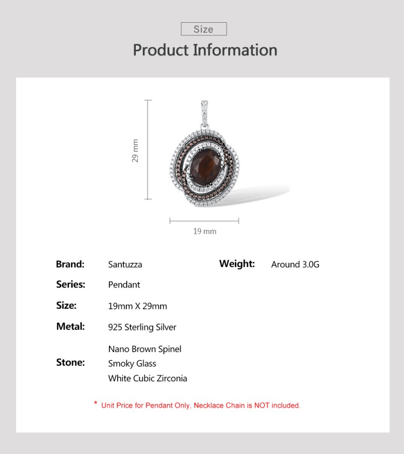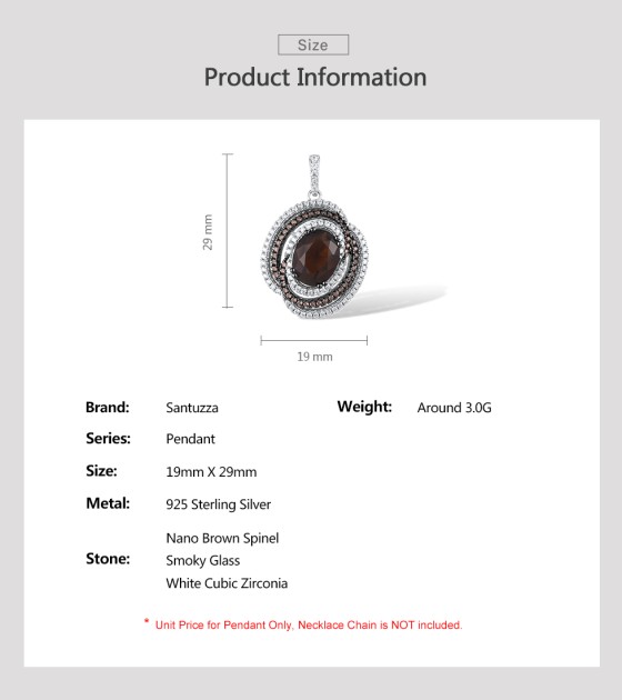 SANTUZZA 925 Sterling Silver Pendants Brown Spinel Smoky Glass Round Pendants Jewelry