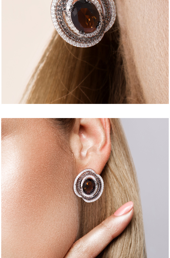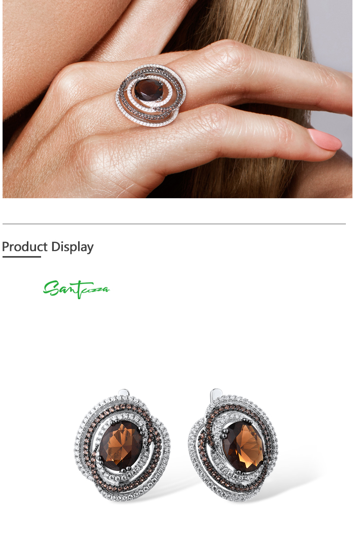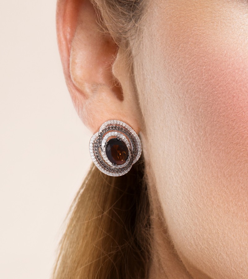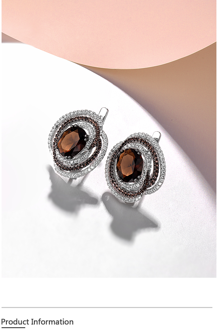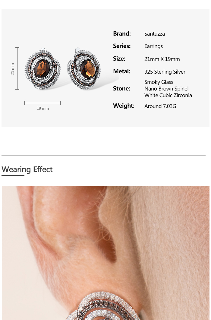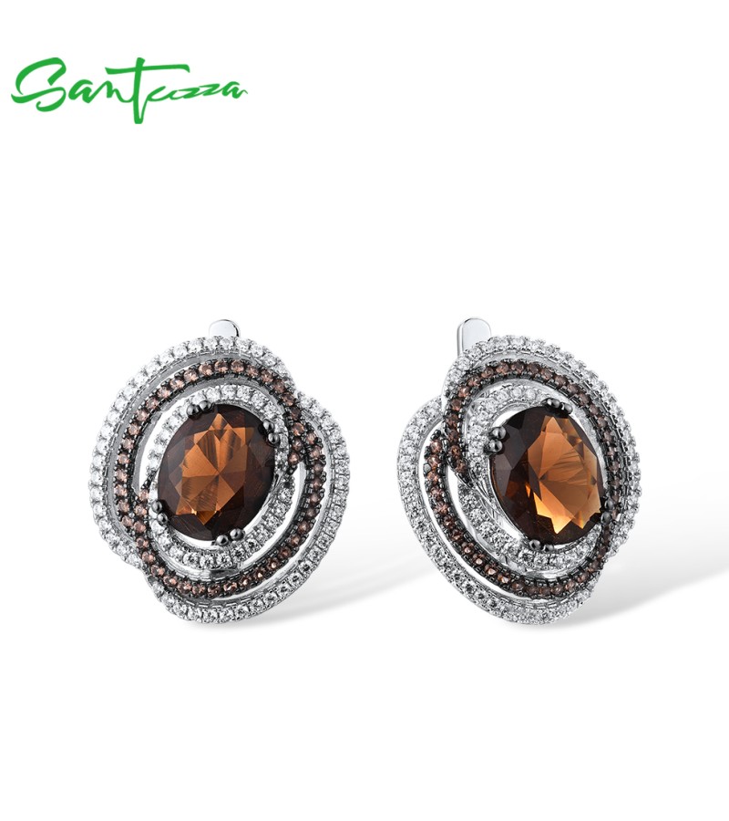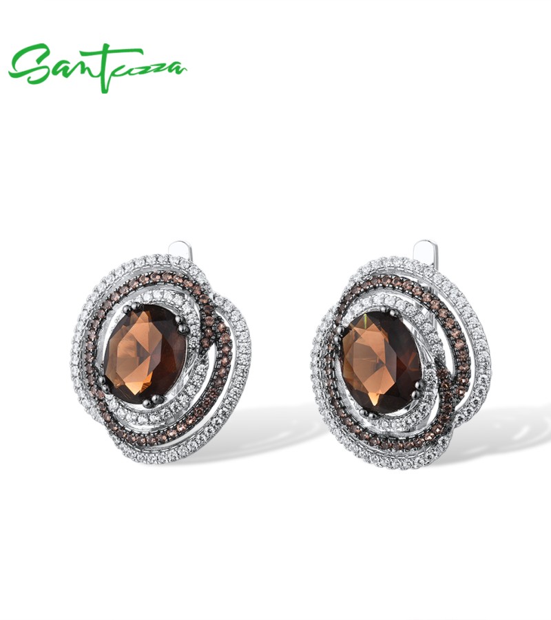 SANTUZZA Silver Earrings 925 Sterling Silver Round Shimmering Brown Smoky Glass серьги Jewelry