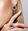 SANTUZZA Silver Ring 925 Sterling Silver Brown Smoky Glass Round Jewelry - US 6