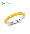 SANTUZZA 925 Sterling Silver White Cubic Zirconia Stackable Ring Jewelry Yellow Enamel