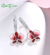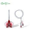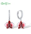 SANTUZZA 925 Sterling Silver Drop Earrings White CZ Created Ruby Enamel Flower Jewelry