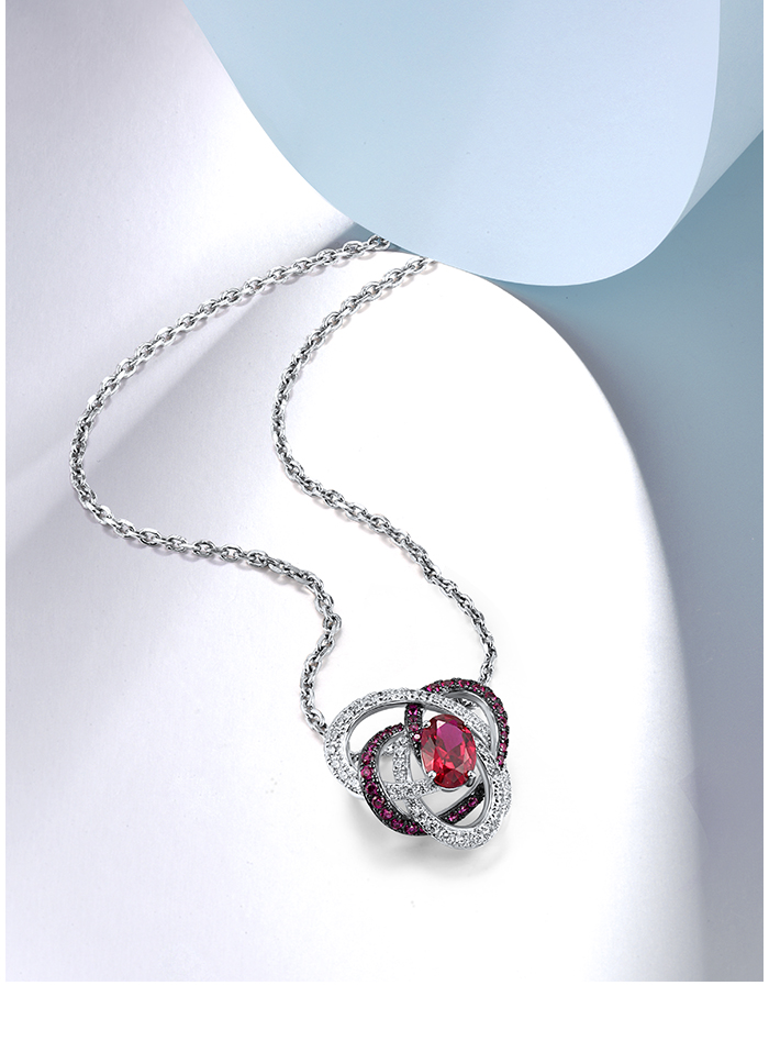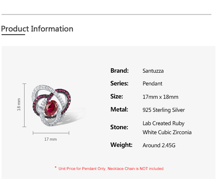 SANTUZZA 925 Sterling Silver Pendant Created Ruby White CZ Delicated Flower Jewelry