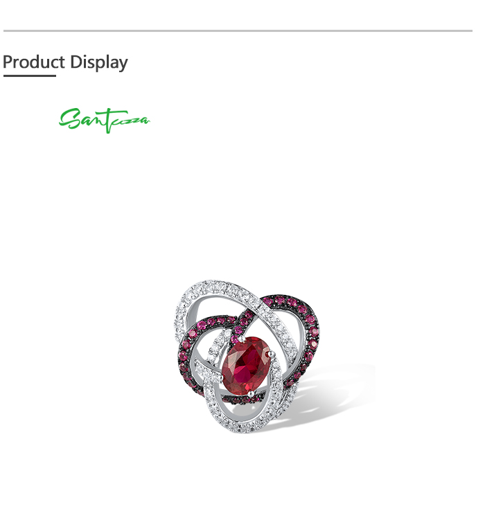 SANTUZZA 925 Sterling Silver Ring White CZ Created Ruby Cozy Red Flower Jewelry - US 7