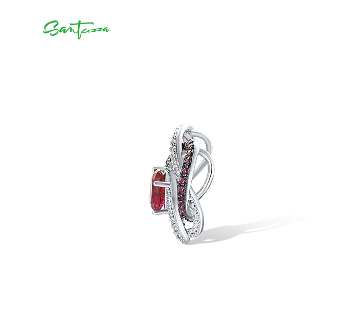 SANTUZZA 925 Sterling Silver Earrings Created Ruby White CZ Delicate Red Jewelry