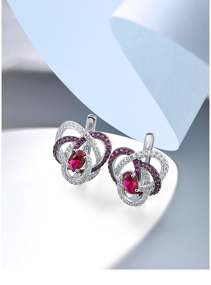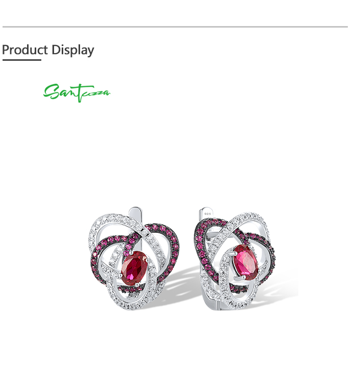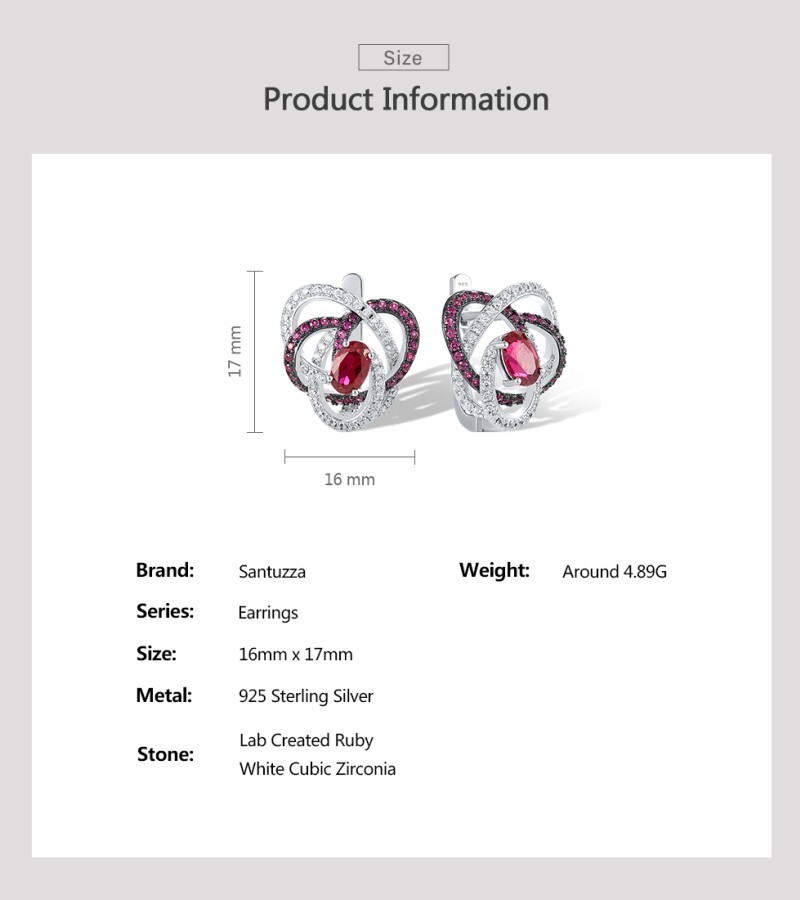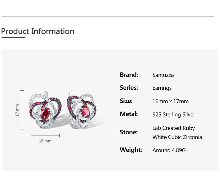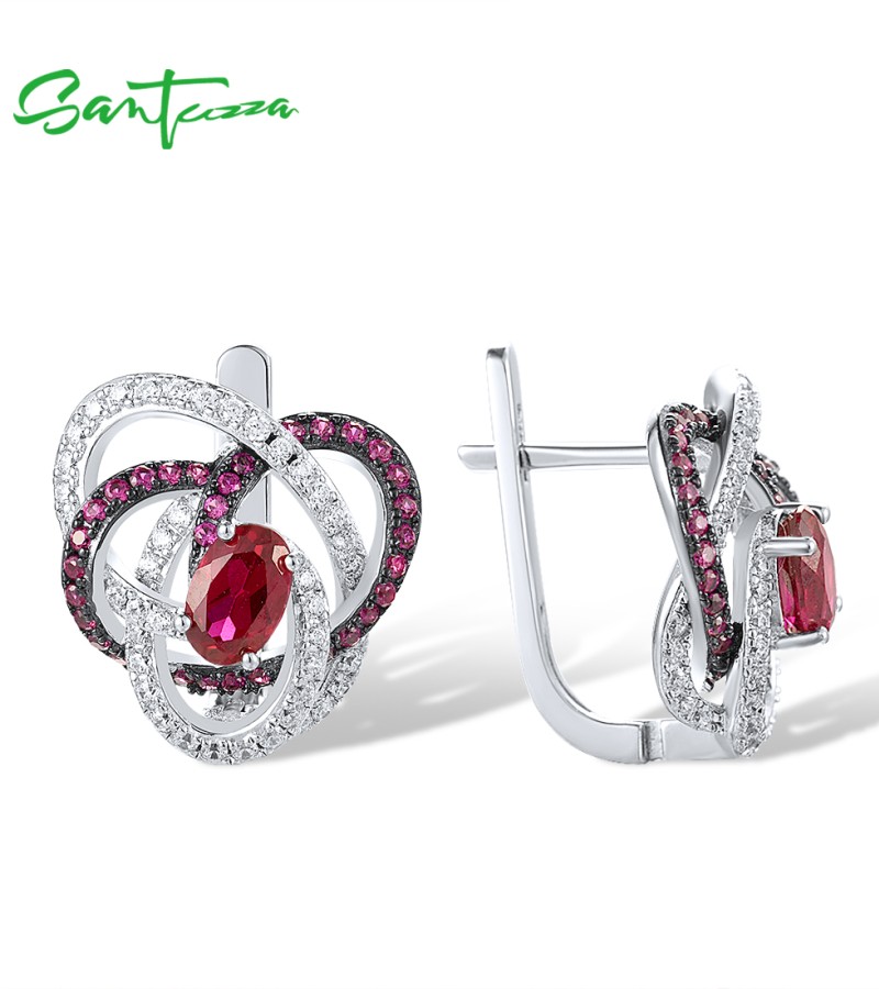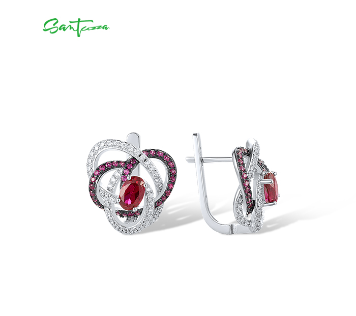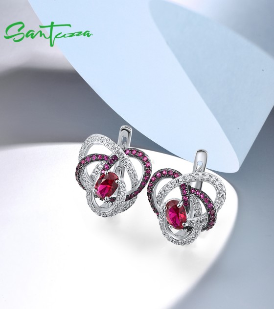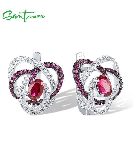 SANTUZZA 925 Sterling Silver Earrings Created Ruby White CZ Delicate Red Jewelry