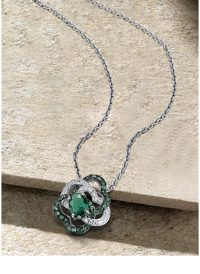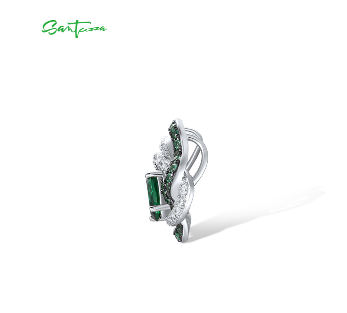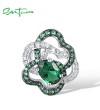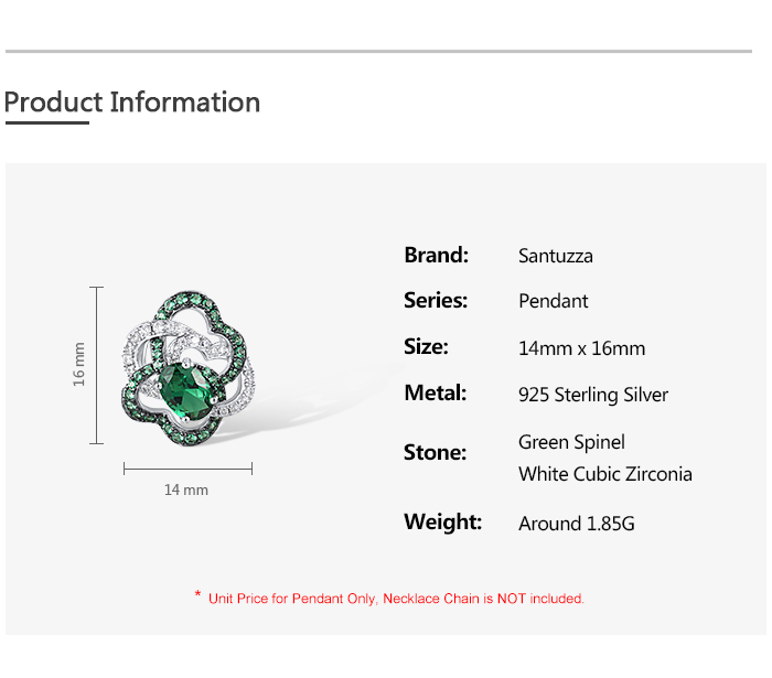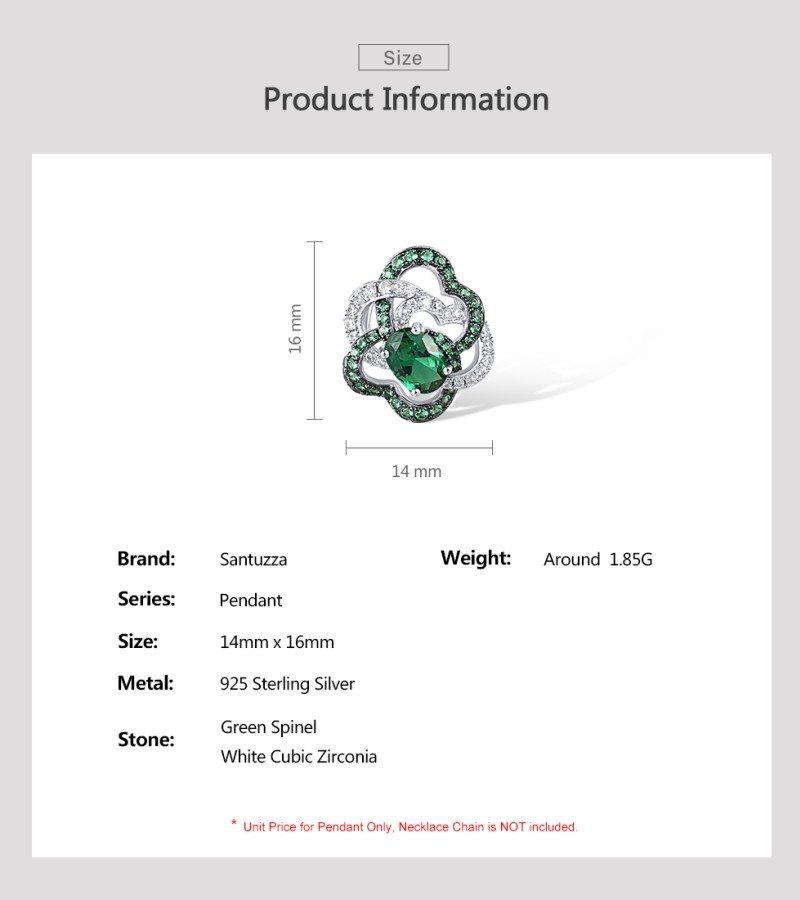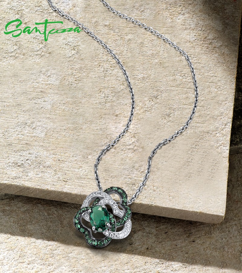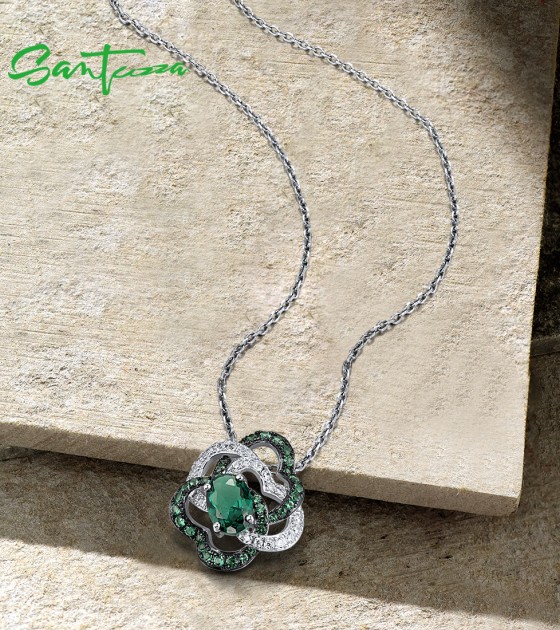 SANTUZZA 925 Sterling Silver Pendant Green Spinel White CZ Flower Jewelry