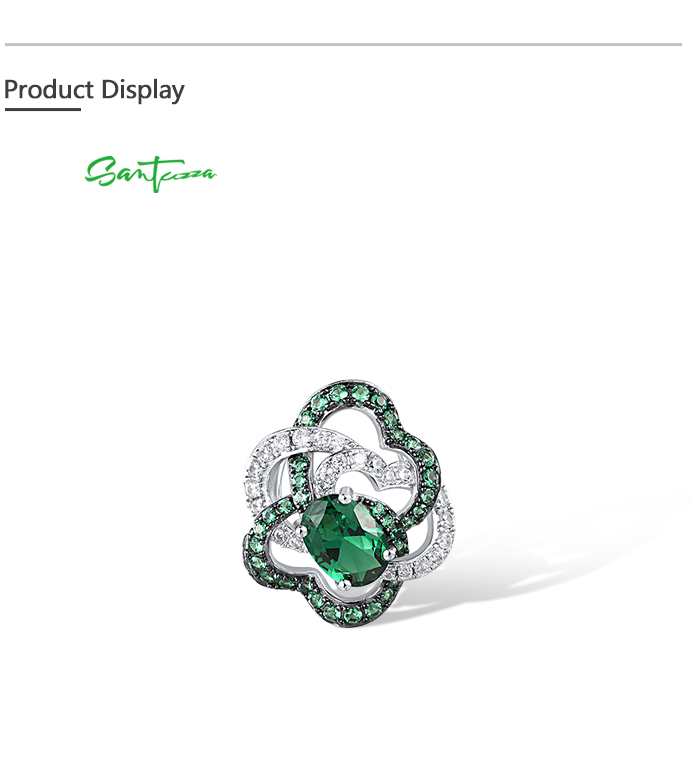 SANTUZZA 925 Sterling Silver Ring Green Spinel White CZ Flower Jewelry - US 7