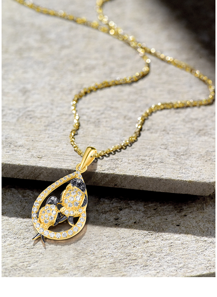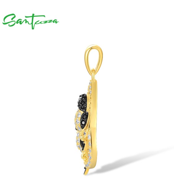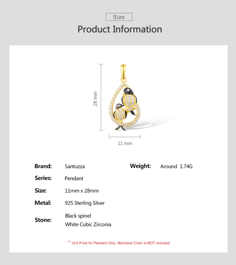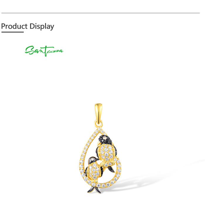 SANTUZZA 925 Sterling Silver Pendant White Black Stones Twin Swallow Birds Jewelry