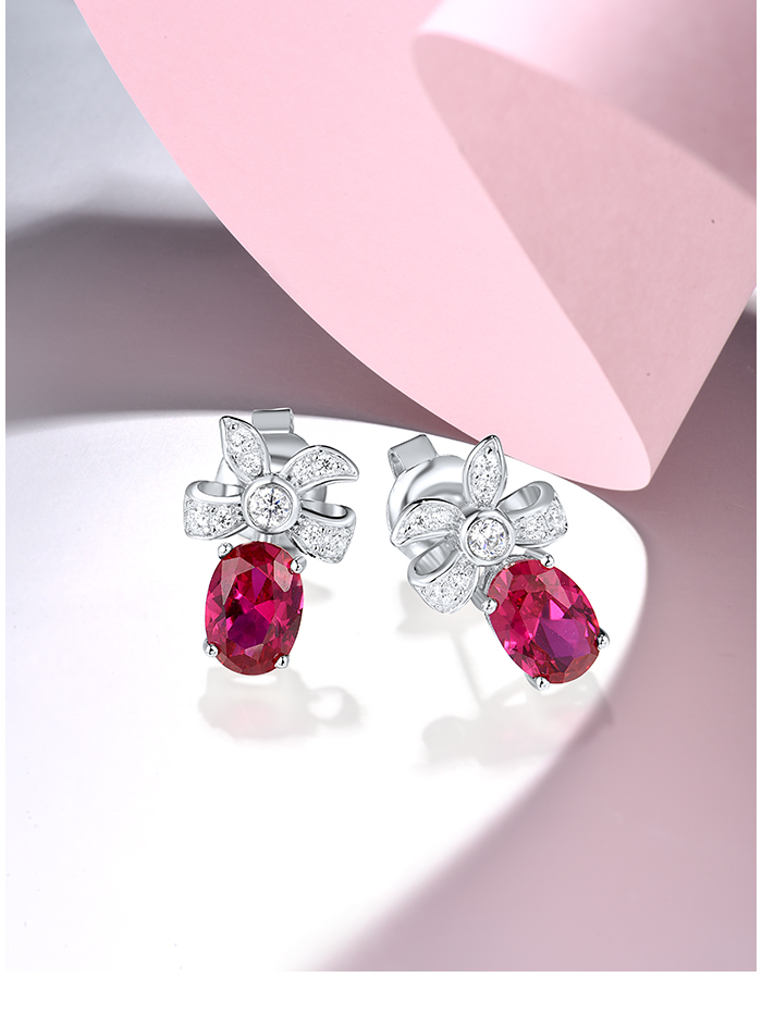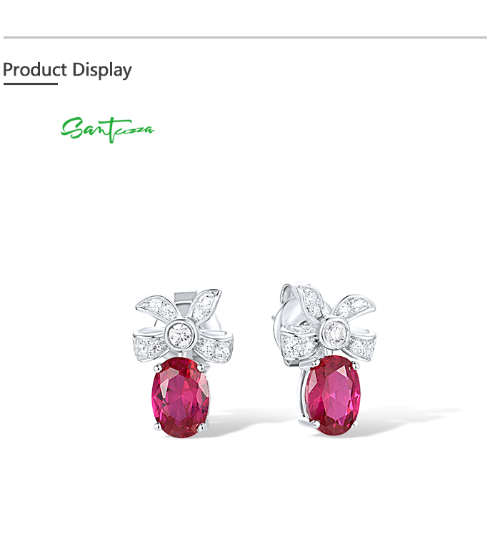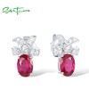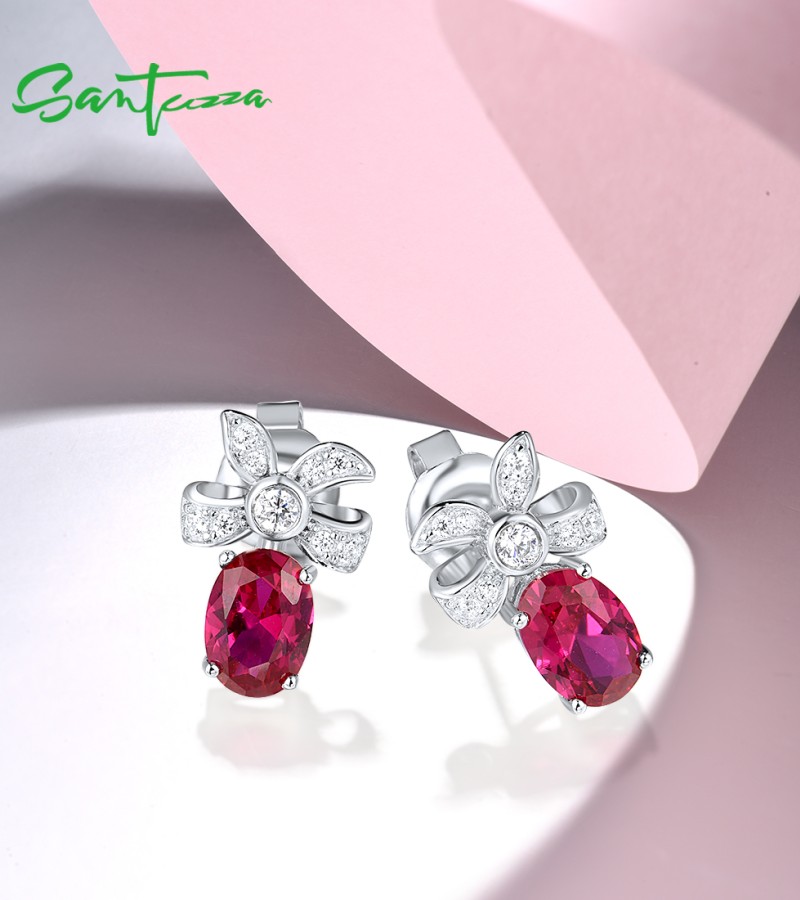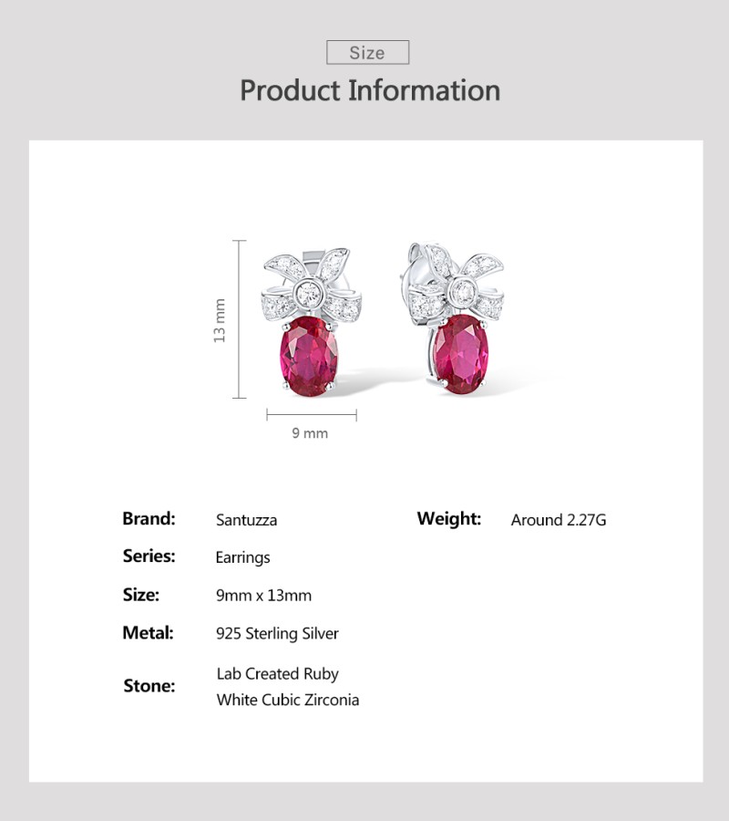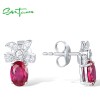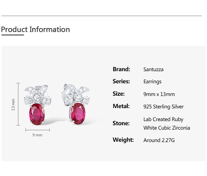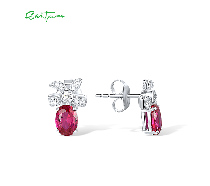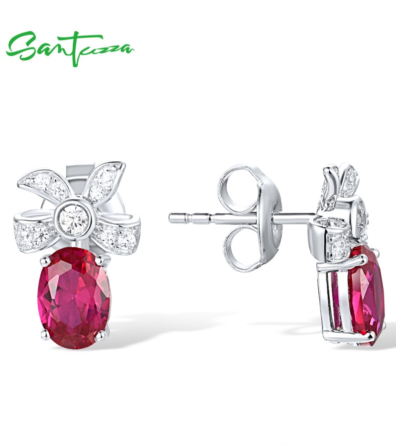 SANTUZZA 925 Sterling Silver Stud Earrings White CZ Created Ruby Jewelry