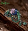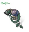 SANTUZZA 925 Sterling Silver Brooch Colorful Gemstone Lovely Chameleon Jewelry