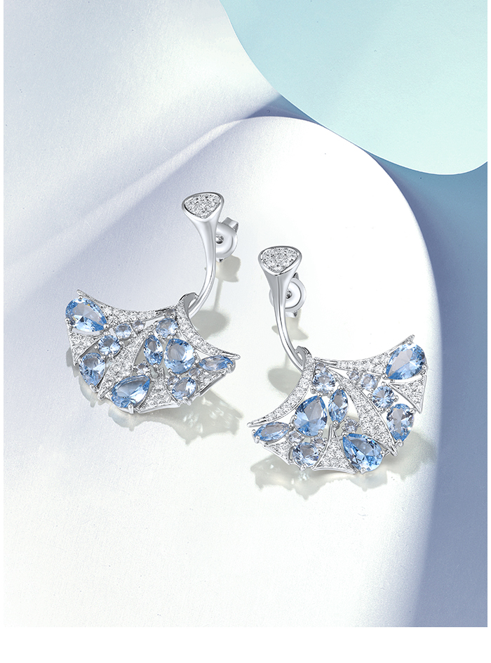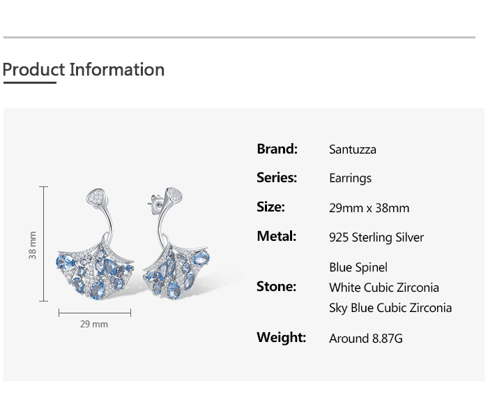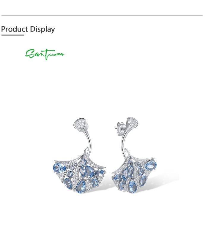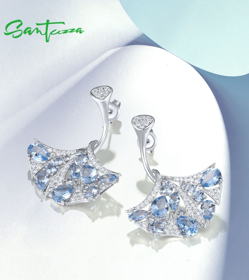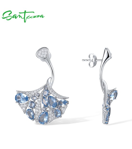 SANTUZZA 925 Sterling Silver Earrings Sky Blue Spinel White CZ Vivid Leaf Jewelry