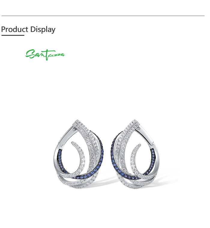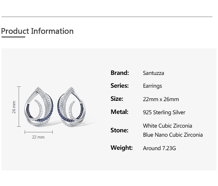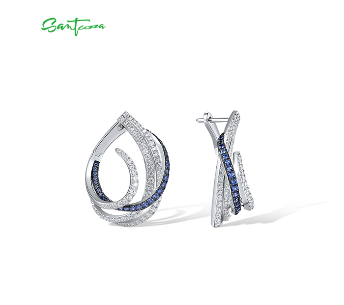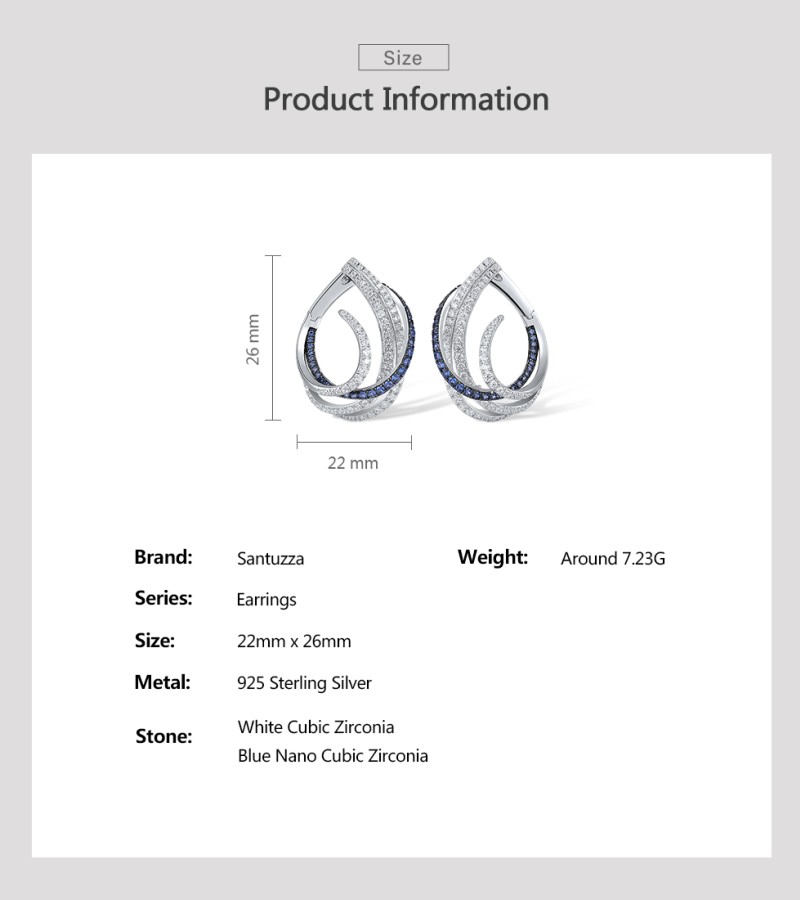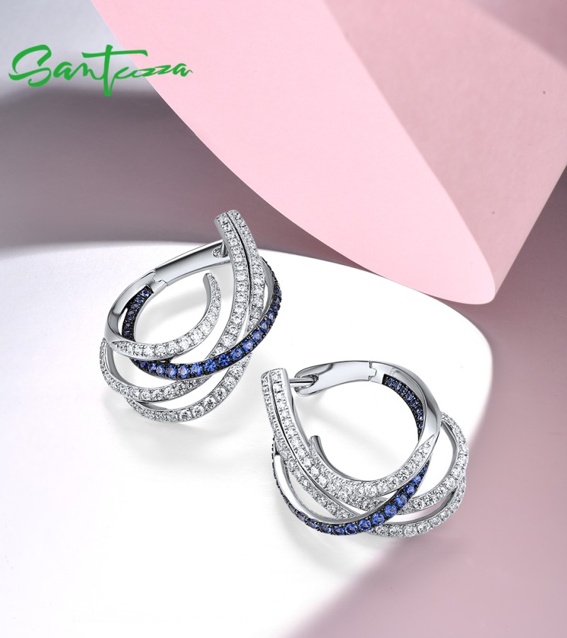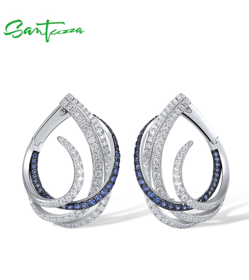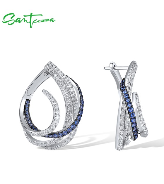 SANTUZZA 925 Sterling Silver Earrings Blue White Cubic Zirconia Linear Jewelry