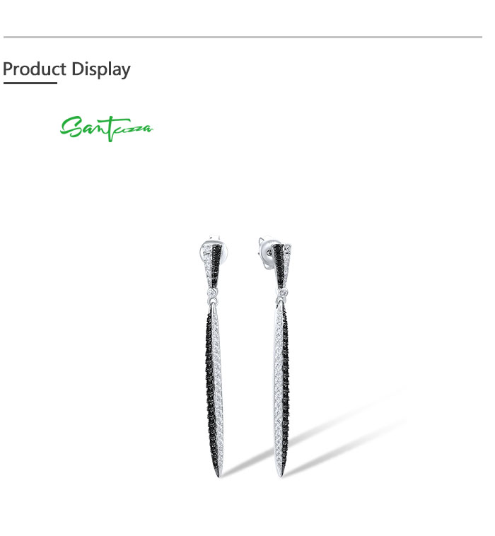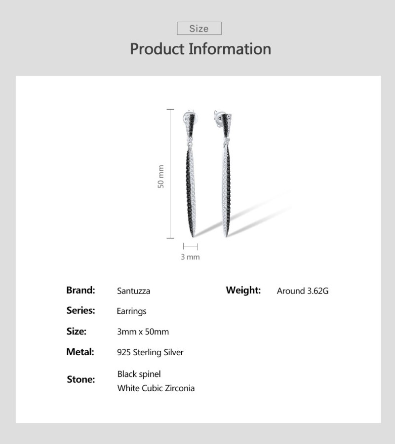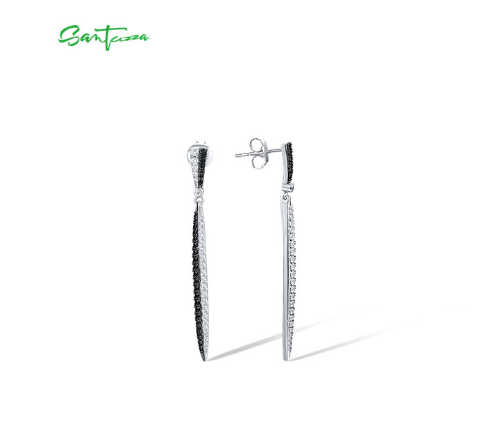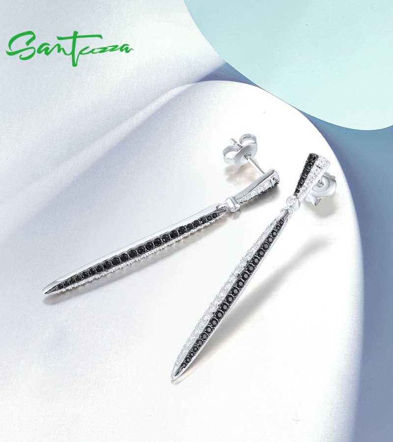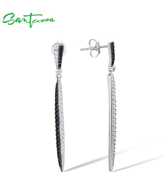 SANTUZZA 925 Sterling Silver Earrings White CZ Black Spinel Long Jewelry