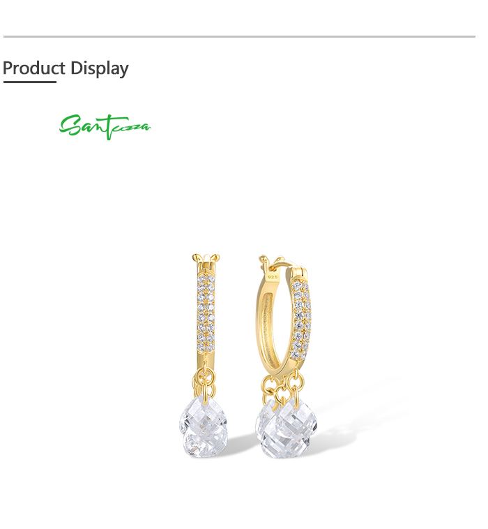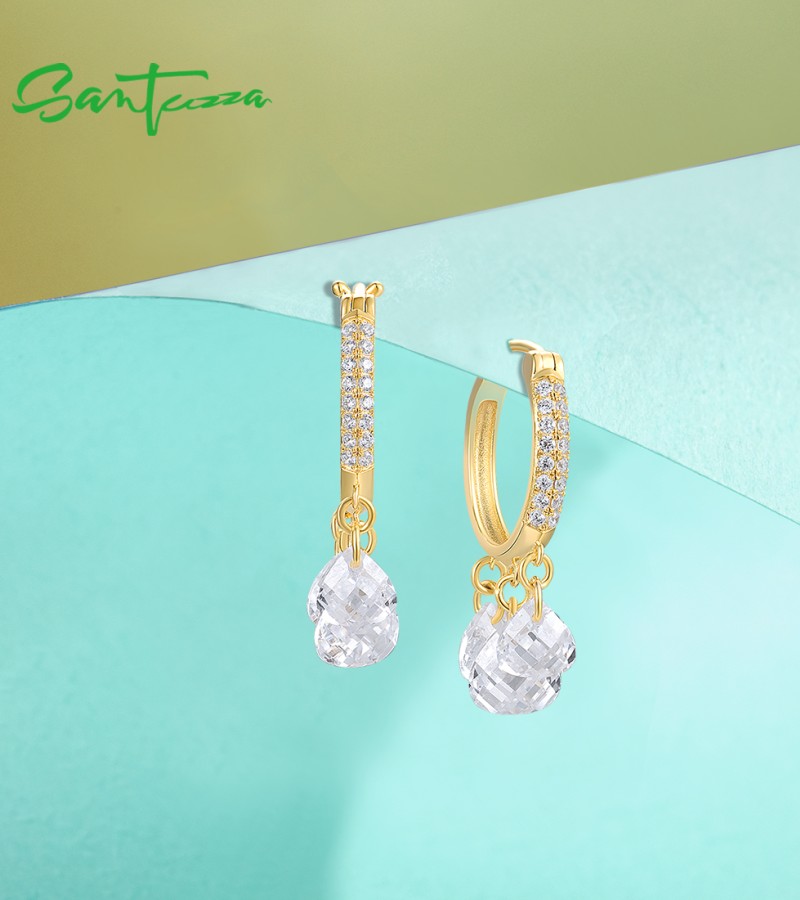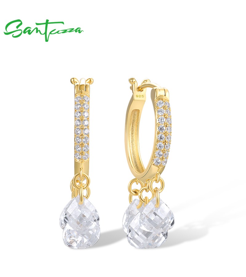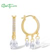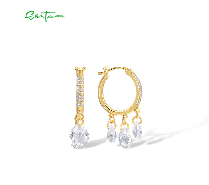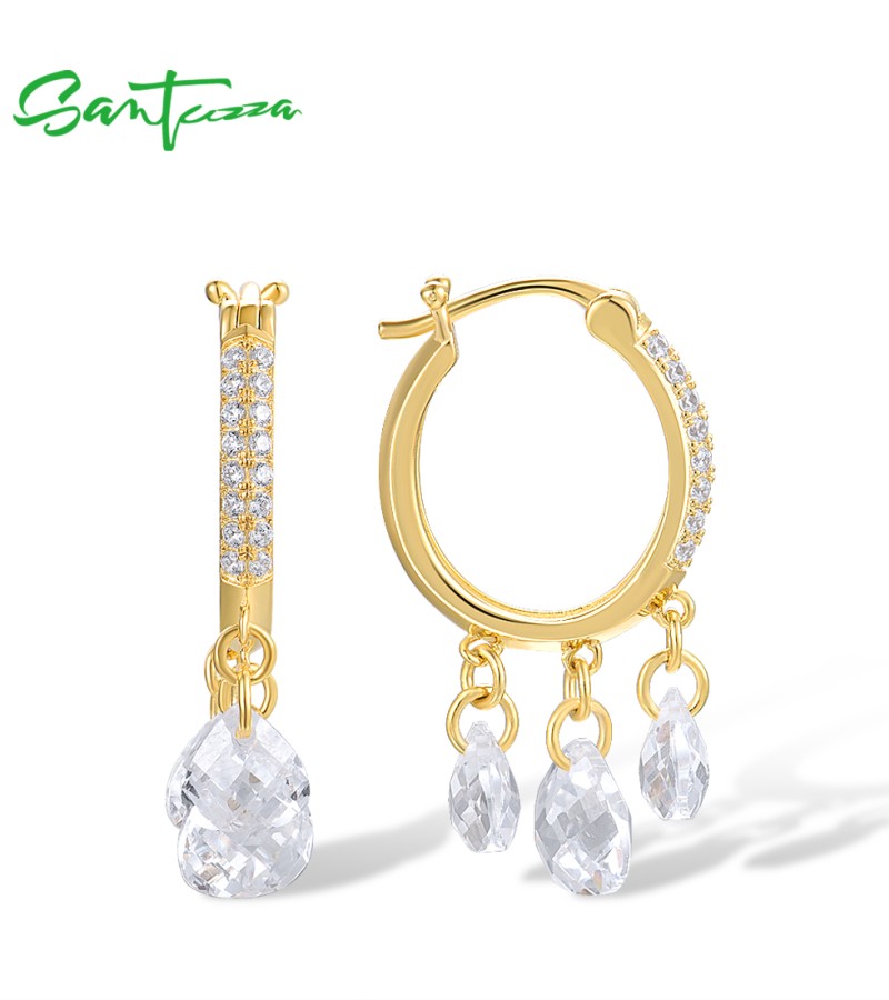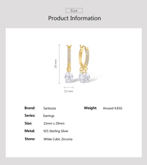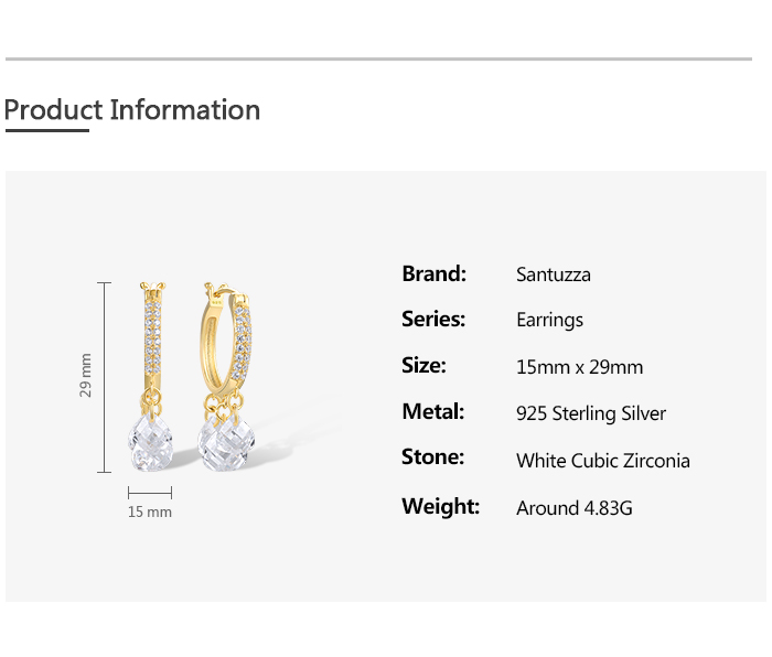 SANTUZZA 925 Sterling Silver Loop Earrings White CZ Jewelry