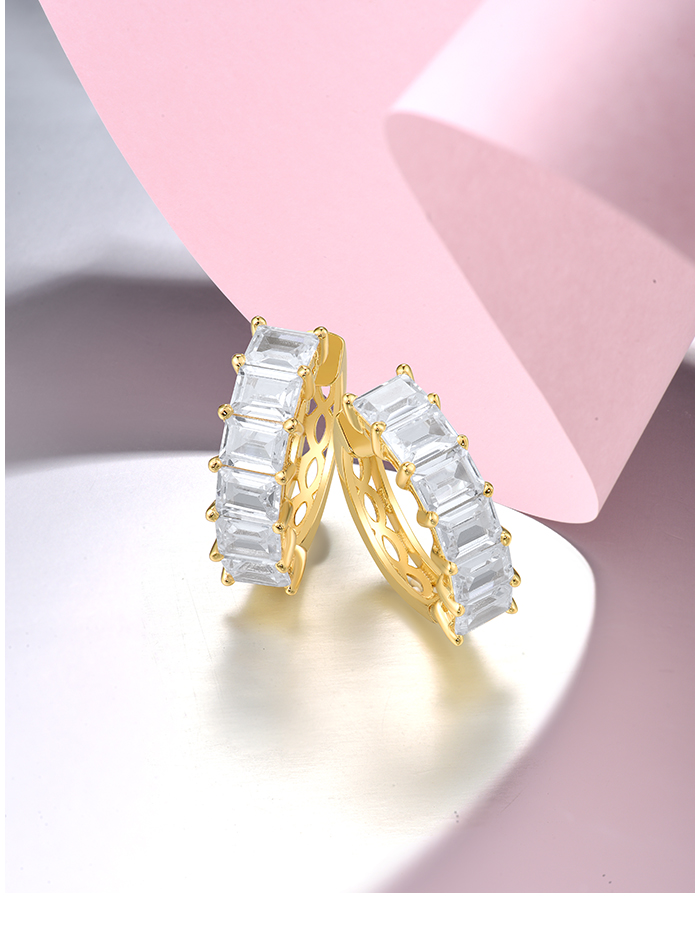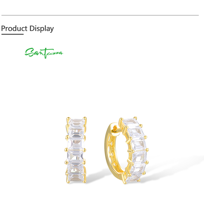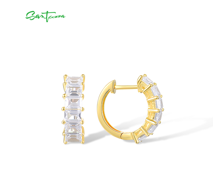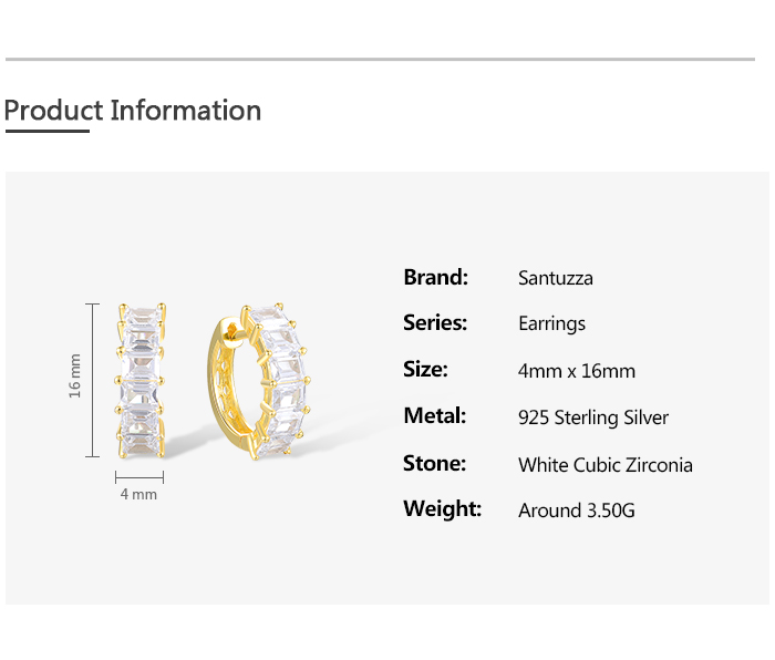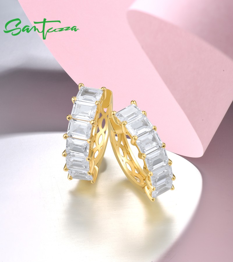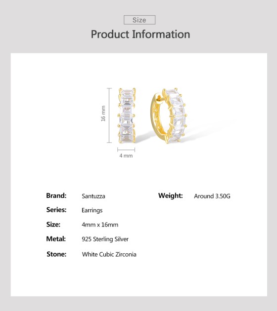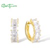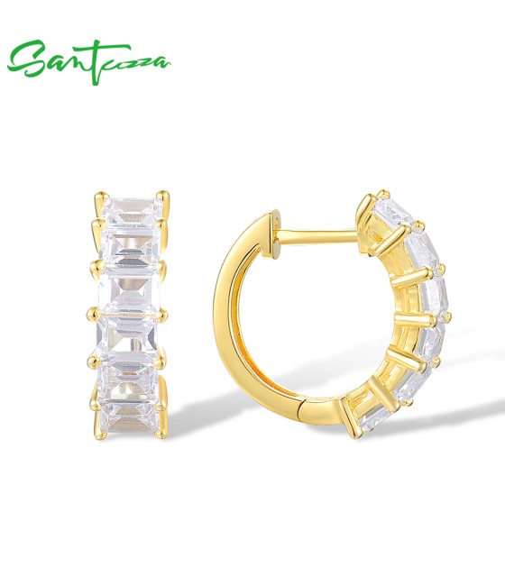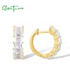 SANTUZZA 925 Sterling Silver Hoop Earrings White Cubic Zirconia Simple Style Jewelry