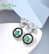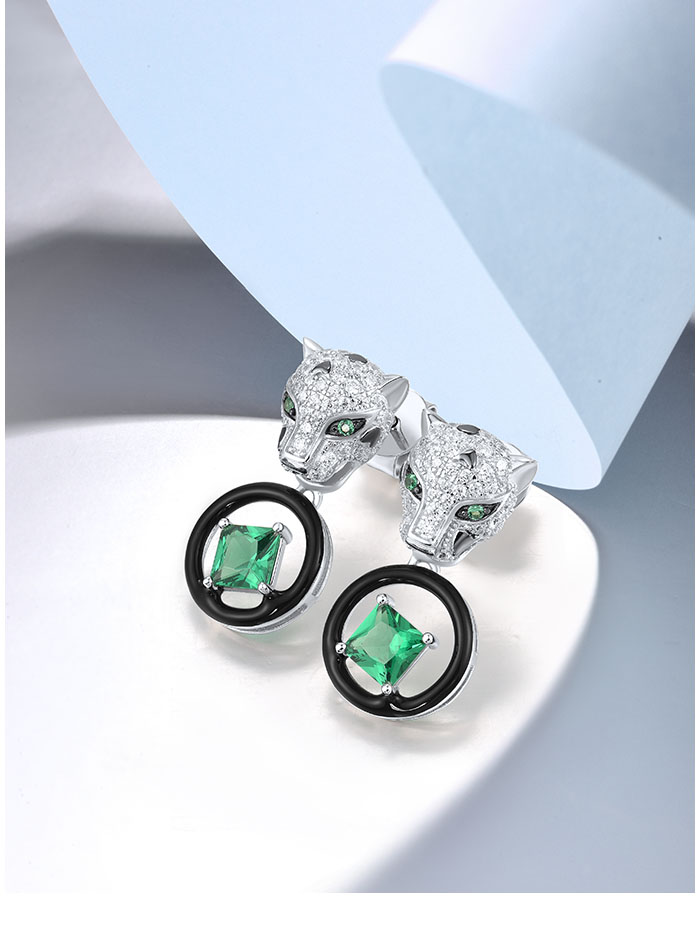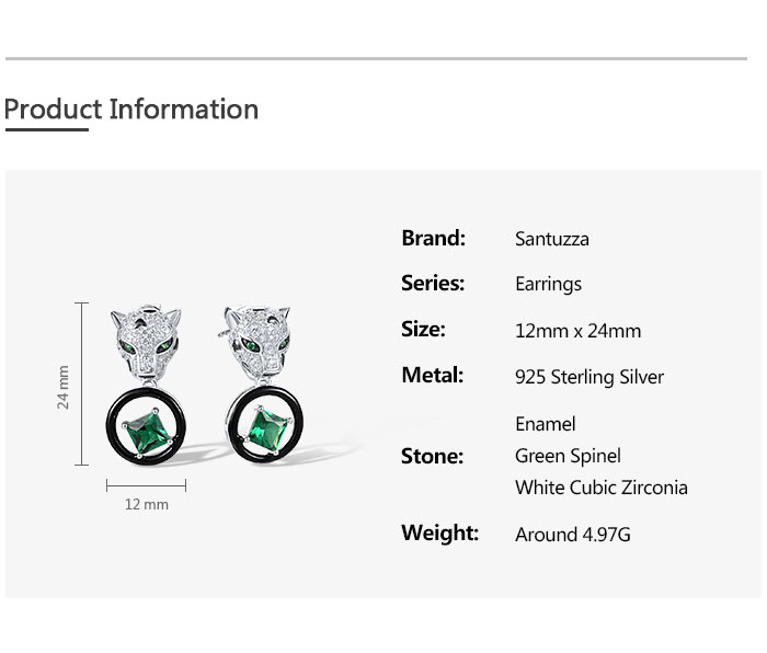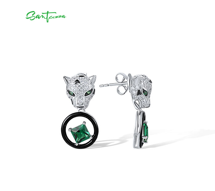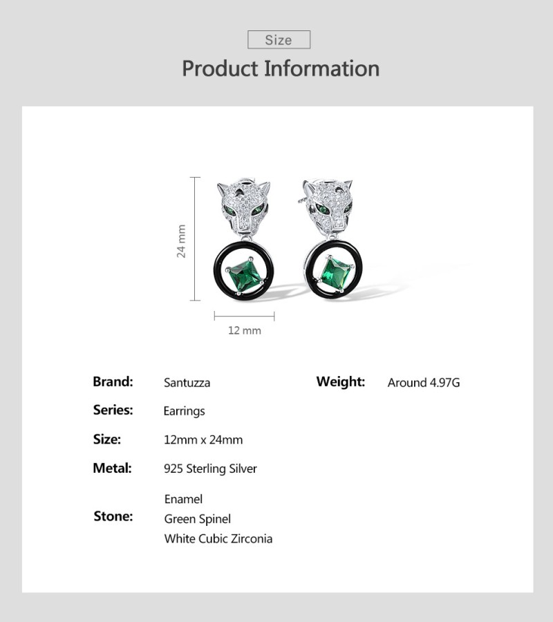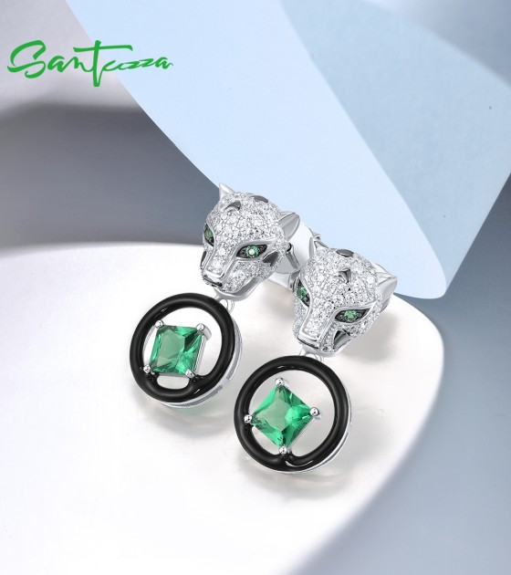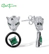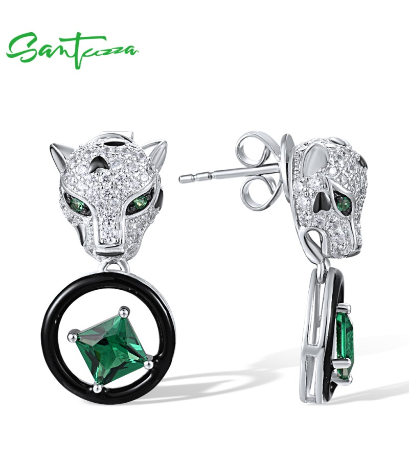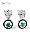 SANTUZZA 925 Sterling Silver Leopard Earrings Green Spinel White CZ Dangling Enamel Jewelry