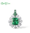 SANTUZZA 925 Sterling Silver Pendant Square Green Spinel White CZ Flower Jewelry