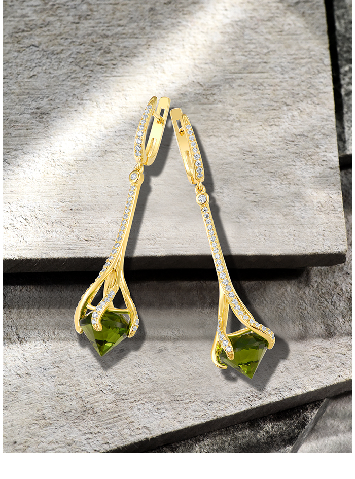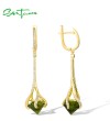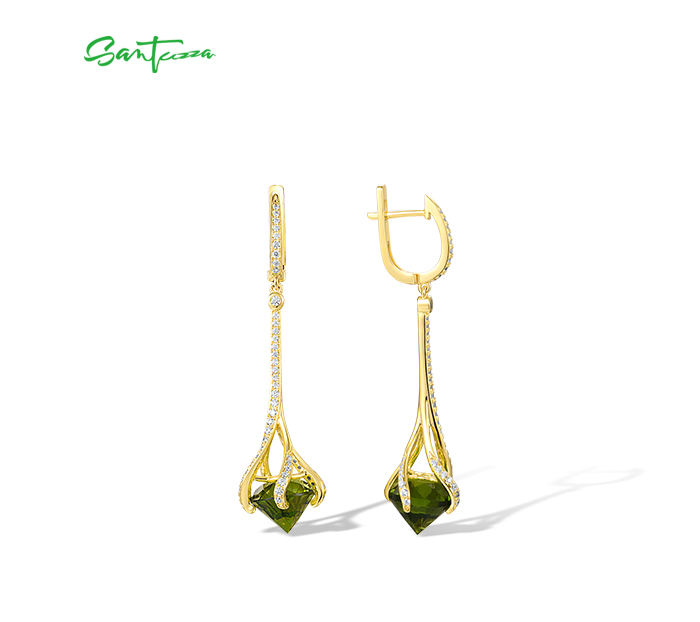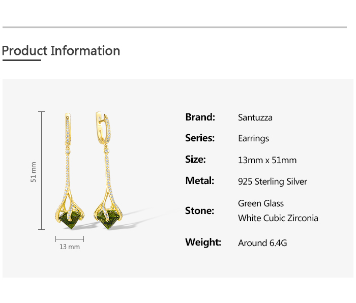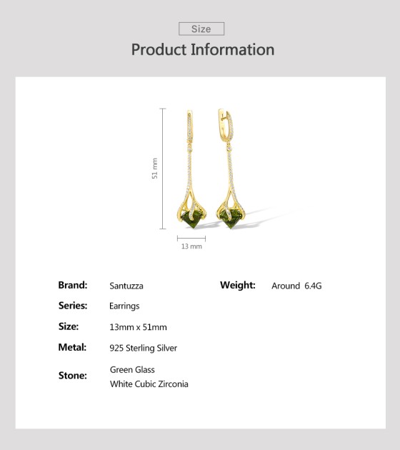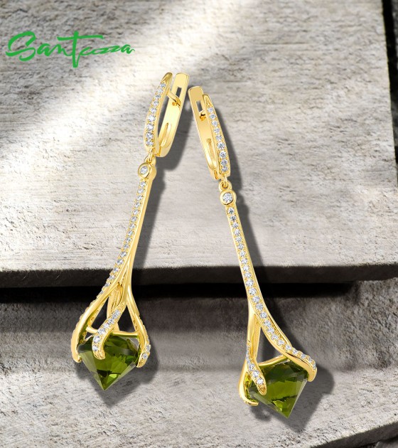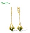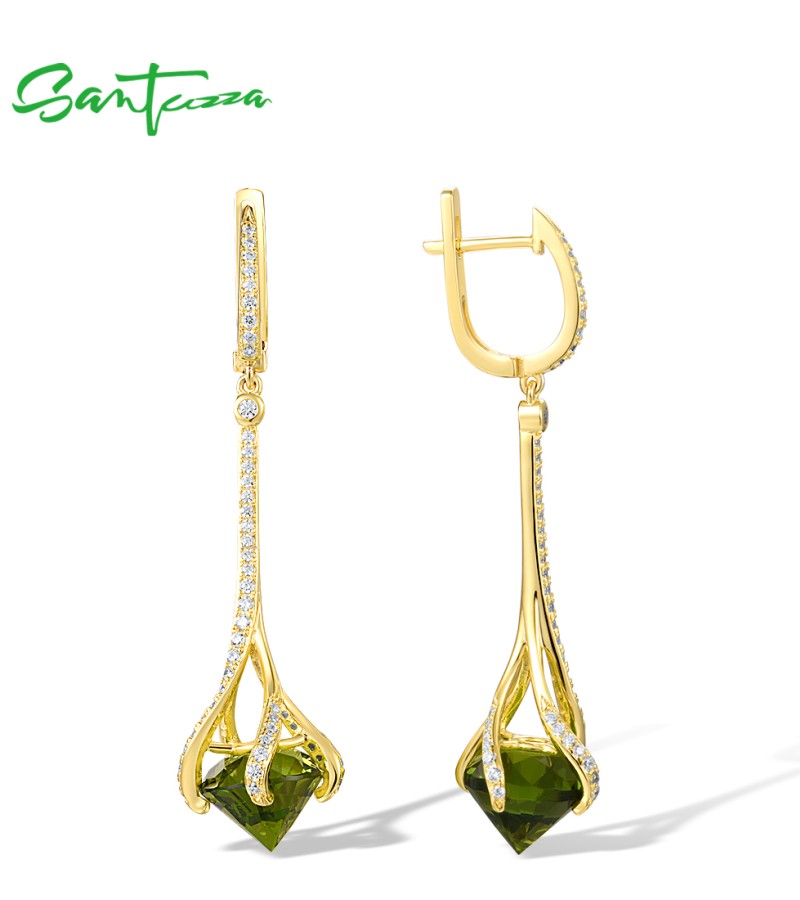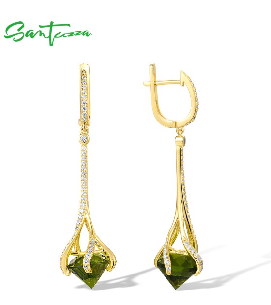 SANTUZZA 925 Sterling Silver Drop Earrings Green Stone White Cubic Zirconia Earrings Jewelry