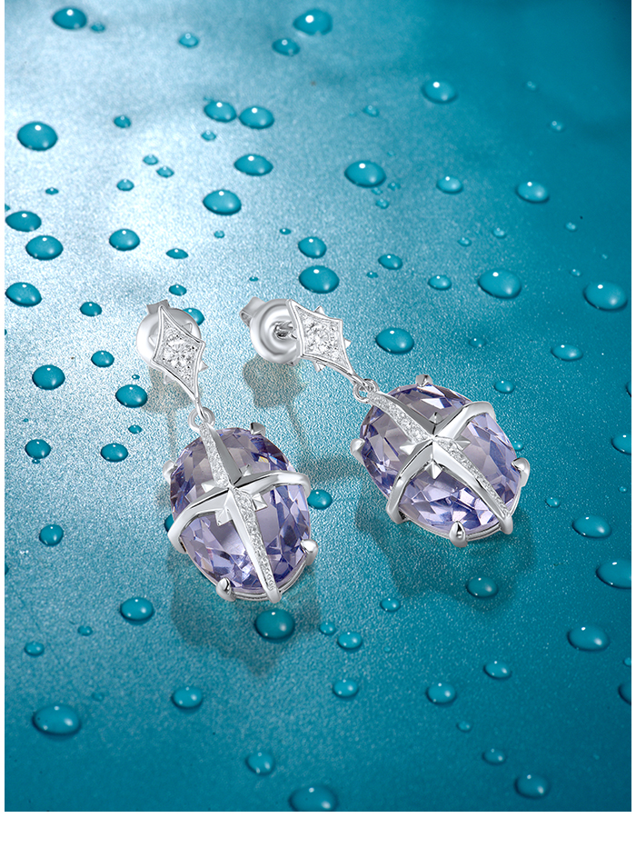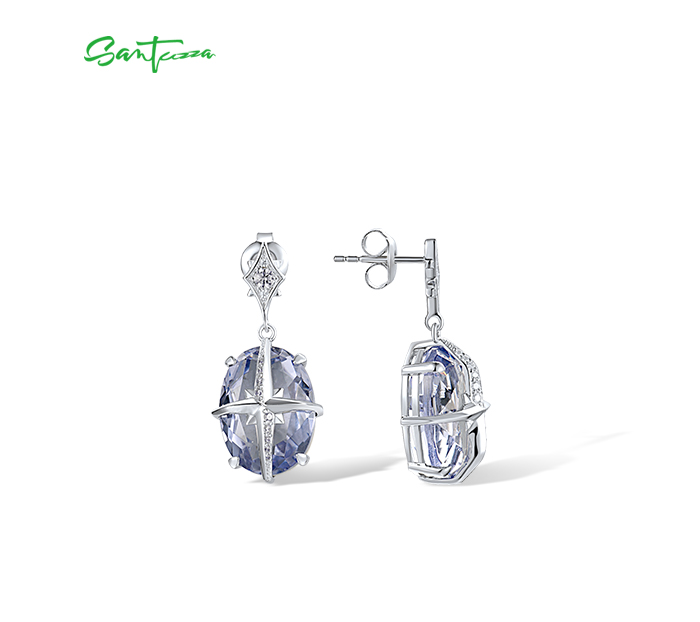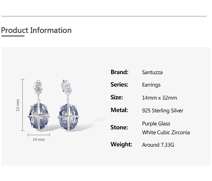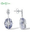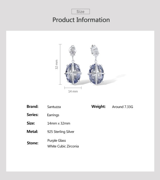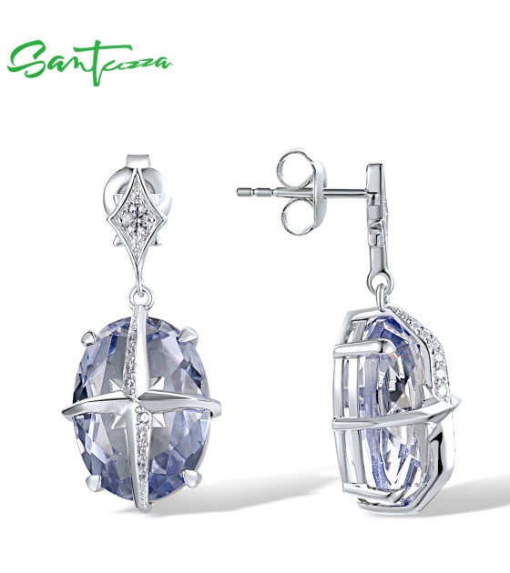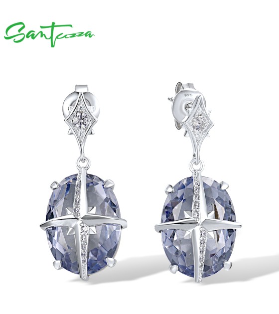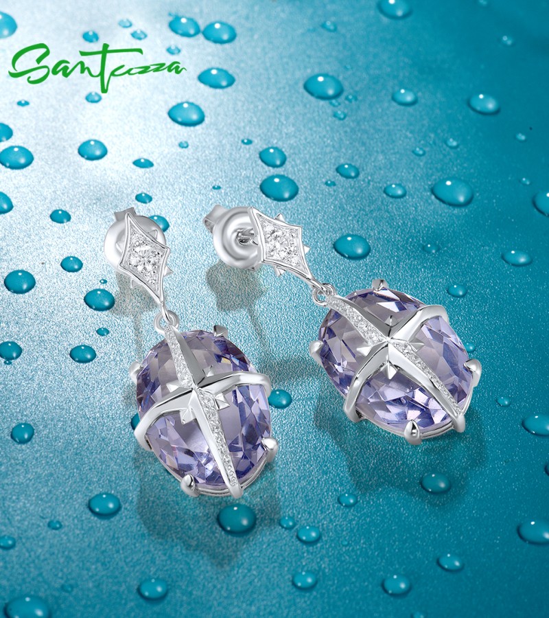 SANTUZZA 925 Sterling Silver Stud Earrings Purple Stone White CZ Jewelry
